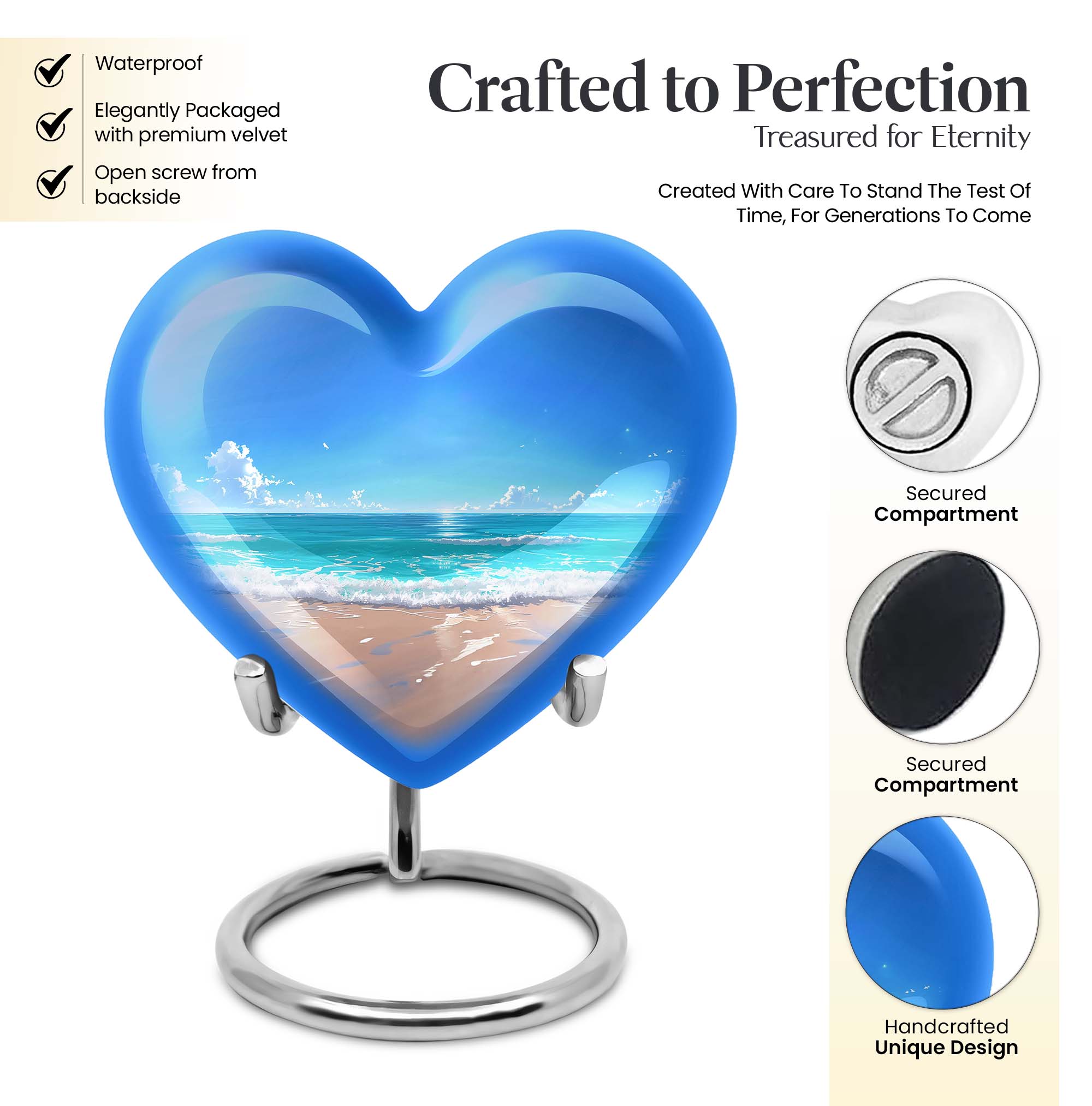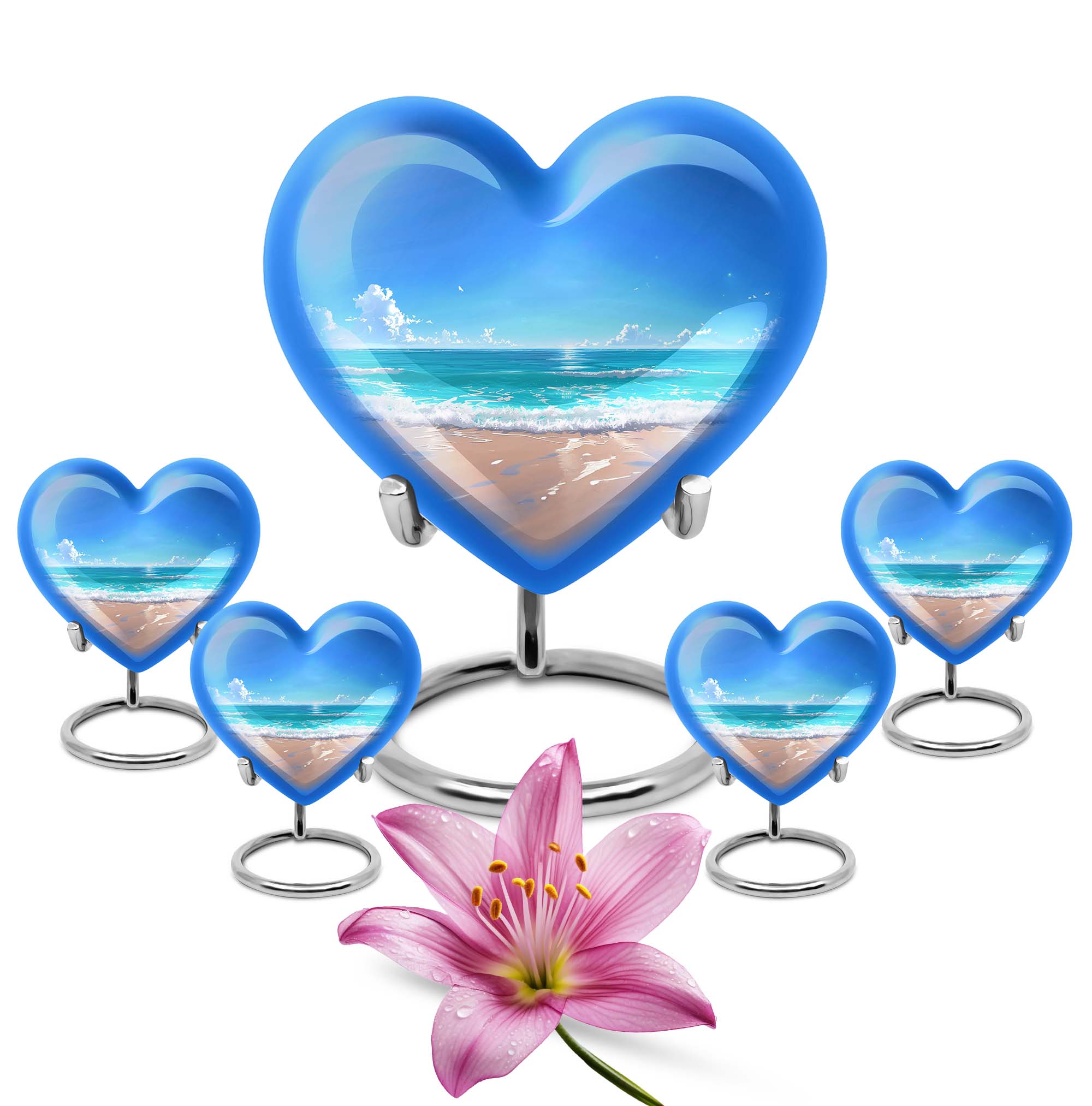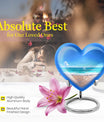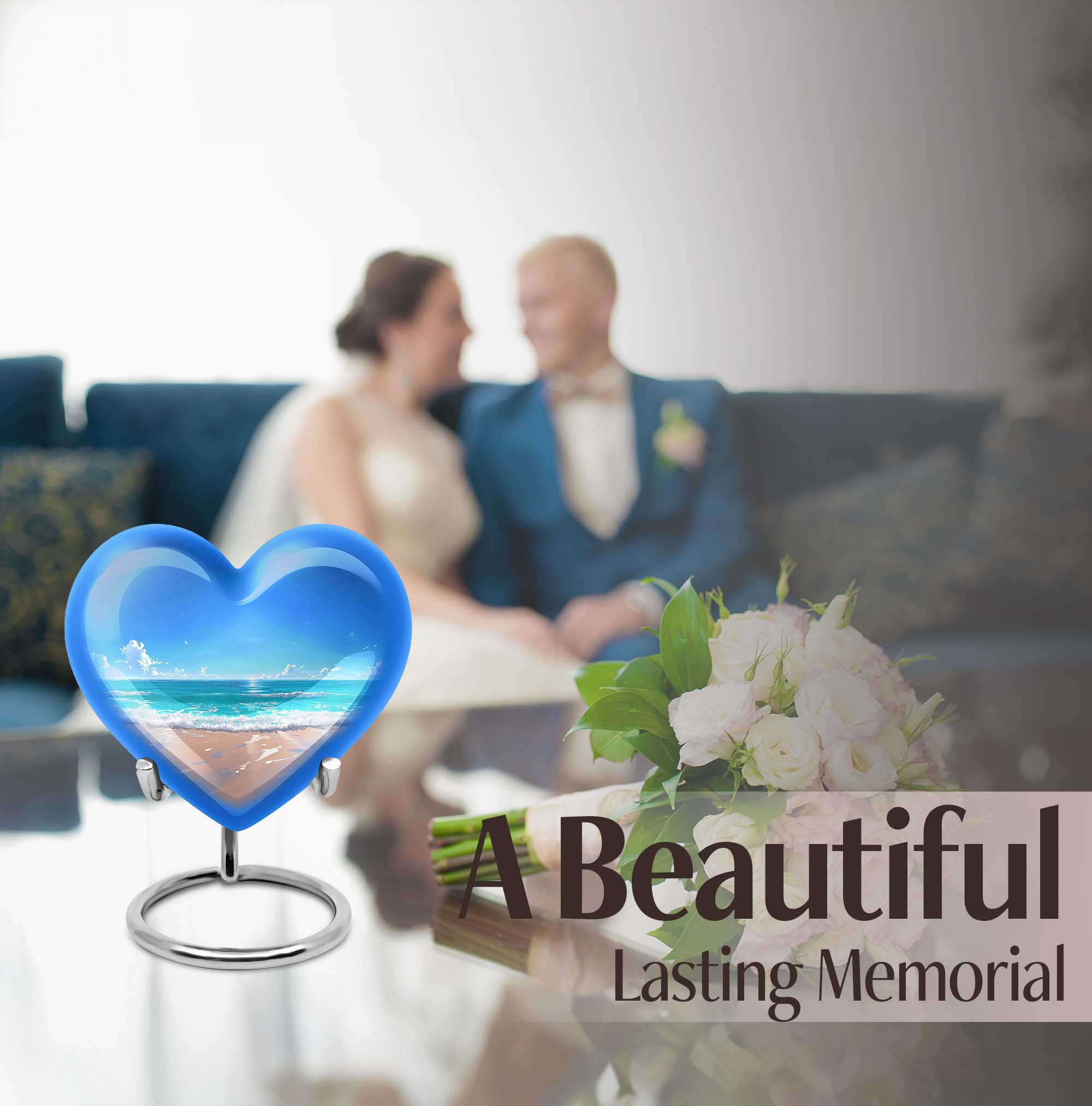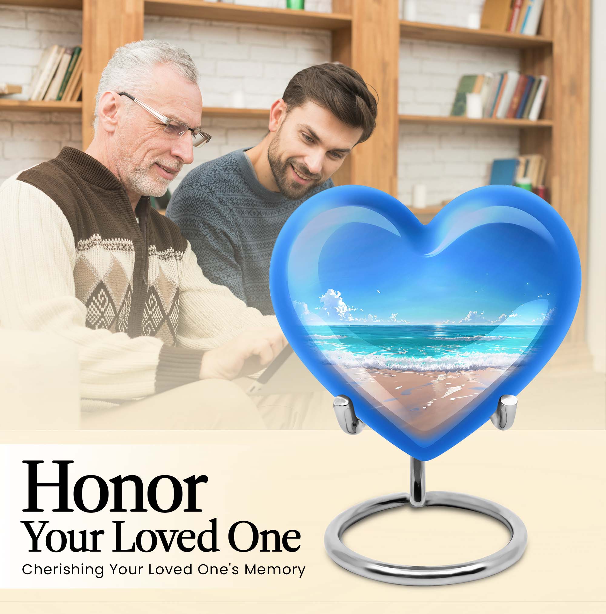 Honor your departed loved ones with our Beach Urn, the perfect burial urn for ashes adult sized. Crafted from durable aluminium, this large urn weighs 3.3 pounds and stands at 10 inches in height, offering a generous capacity of 200 cubic inches. Engineered with a Heart Urn design, it elegantly captures the essence of cherished memories and unending love. Adorned with a flowers theme, it extends a peaceful, serene touch when commemorating the life of your beloved. The urn features the ability to personalize with engraved names, making it truly one-of-a-kind. Also, it is accompanied by a velvet pouch for secure containment of ashes. Ideal for those seeking adult burial or cremation urns for dad, this urn amalgamates strength, elegance and profound respect for your departed. Please note, this is not a bulk cremation urn. Its exceptional details make it an ideal collector’s item and a remarkable tribute to a life well-lived.