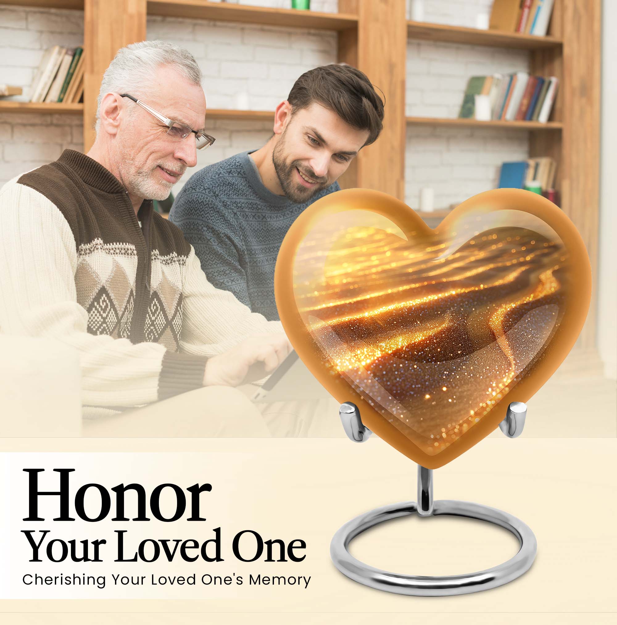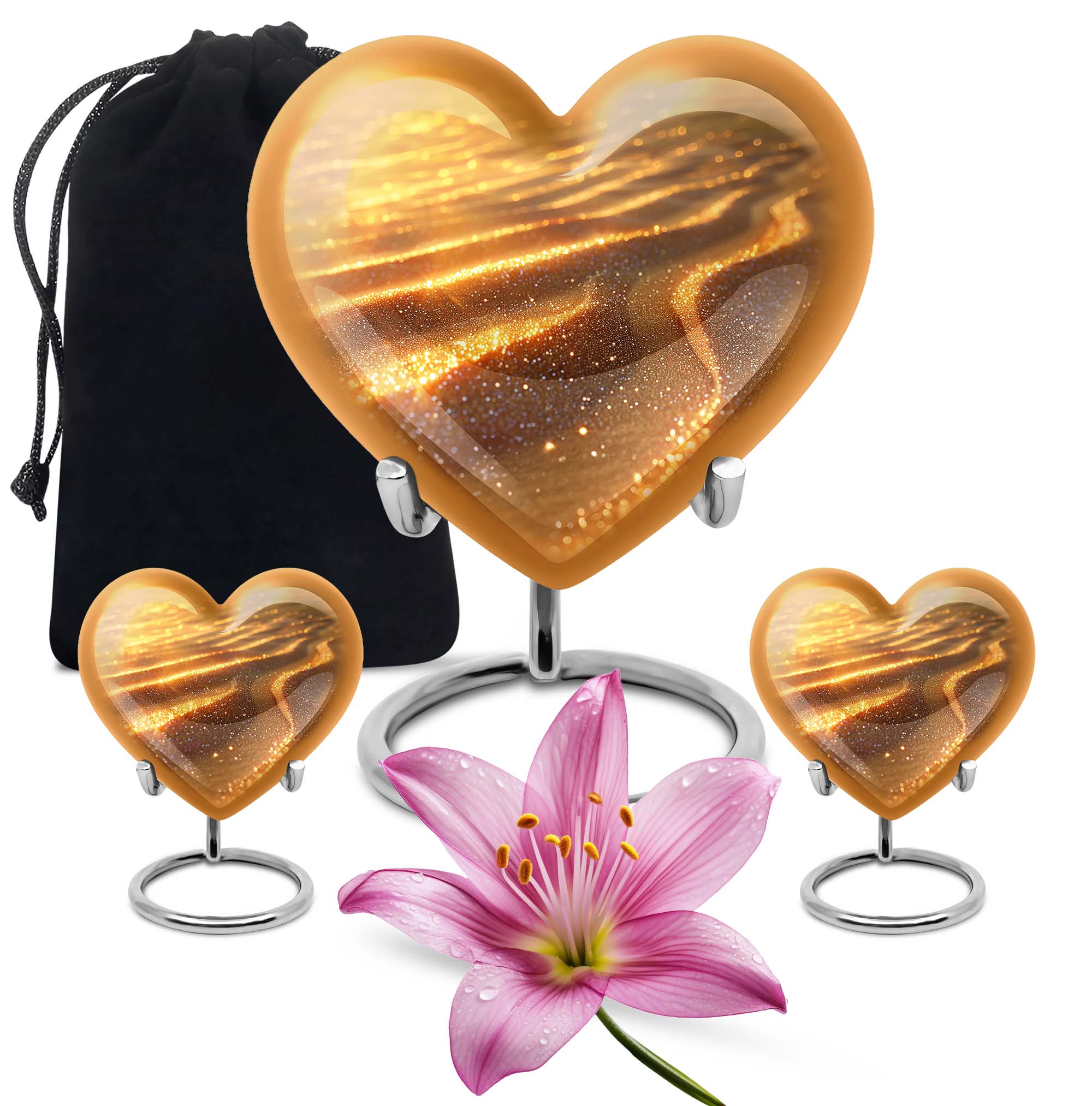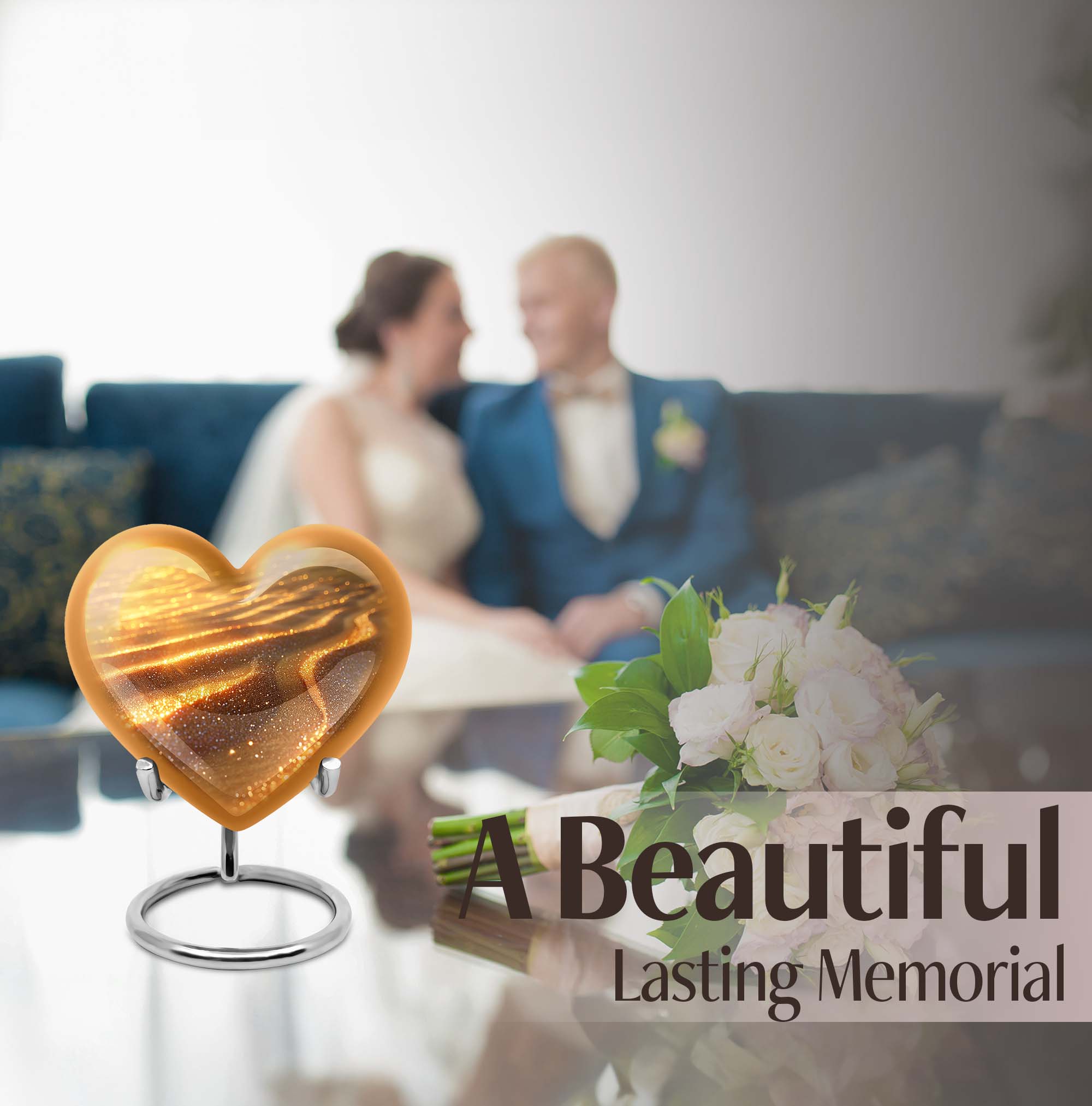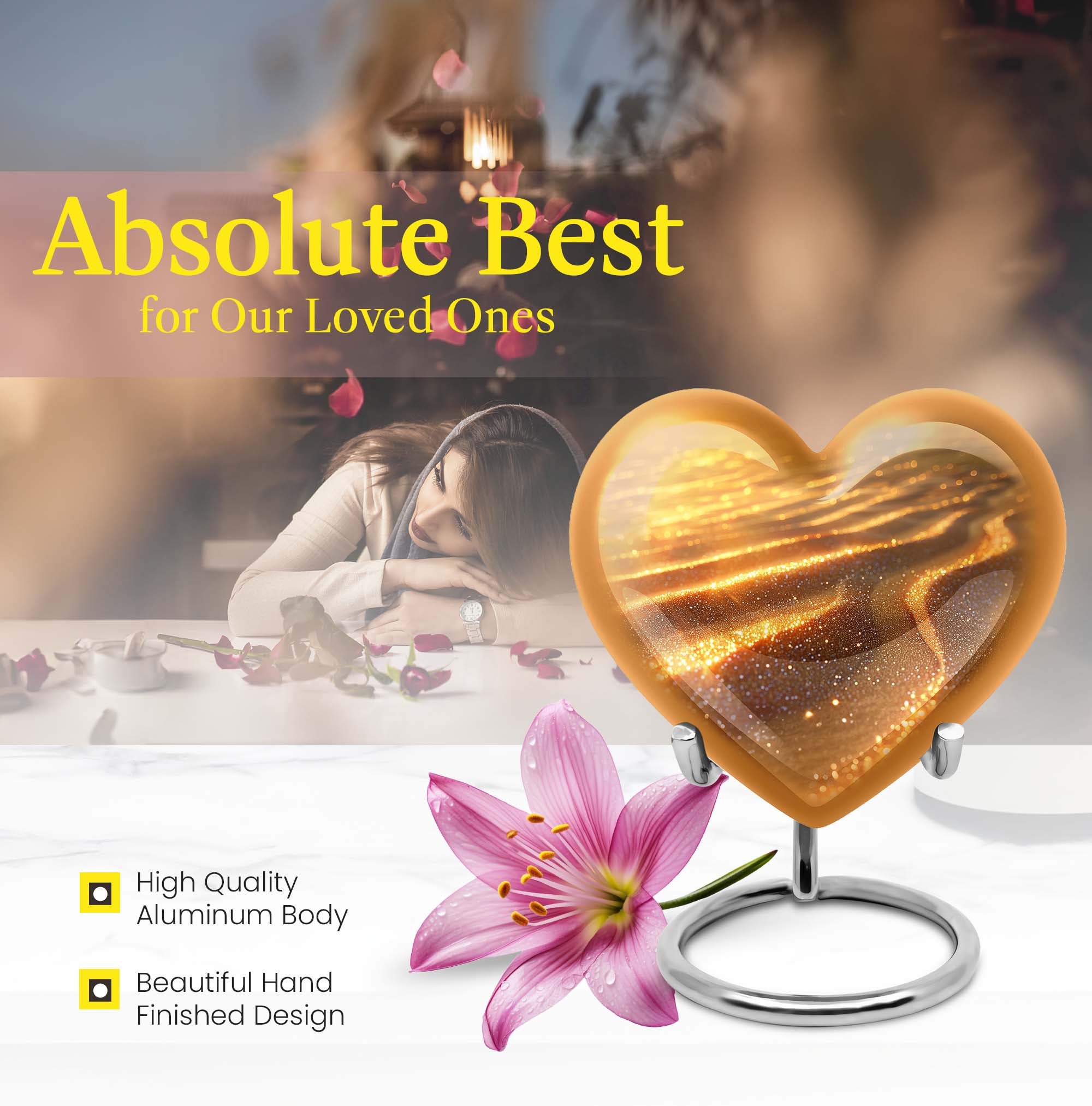Discover the peace of mind our Beach Urn offers. Designed for those seeking thoughtful memorial ceremony supplies, this distinctive monument is a fitting choice. Crafted from durable aluminium, this large urn balances functionality and aesthetics with unparalleled precision. Measuring 10 inches in height and weighing 3.3 pounds, it offers an impressive capacity of 200 cubic inches. Ideal for burial or as a keepsake, it accommodates the ashes of adult women and even accommodating two adults when used as a double urn. The urn features an enchanting flowers theme, bound to honour and preserve the memory of your loved ones in a unique way. Your purchase includes a soft velvet pouch for careful containment of ashes. Moreover, the urn can be personalized with engraved names, adding a bespoke touch to your memorial tribute. Period. Venturing into keywords, consider phrases such as 'memorial urns', 'burial cremation urns for adult women', and 'large double cremation urn for two adults' for queries concerning this product. This treasured heirloom stands as a heartwarming testament to a journey shared, a life well lived, and a soul never forgotten.