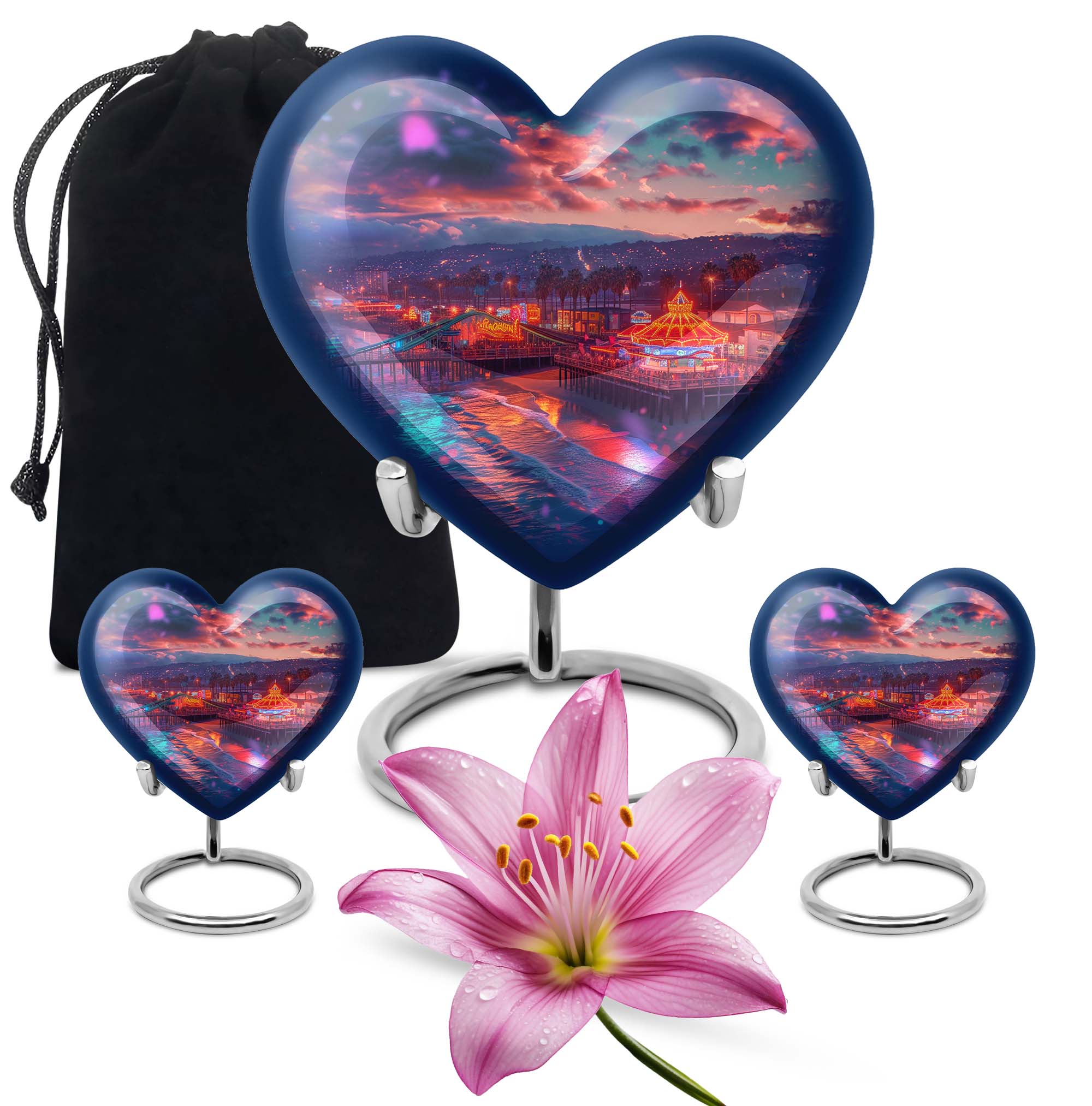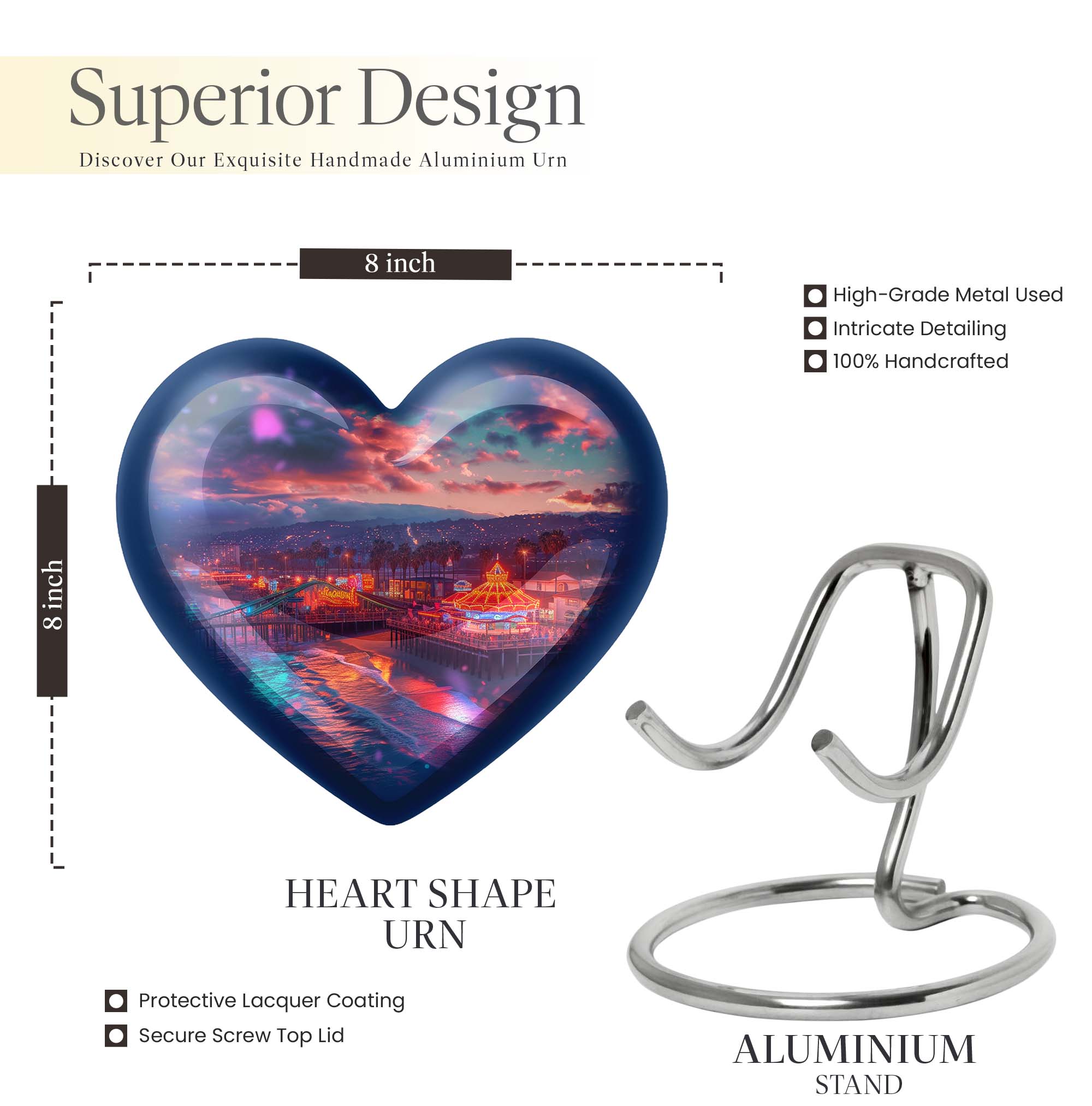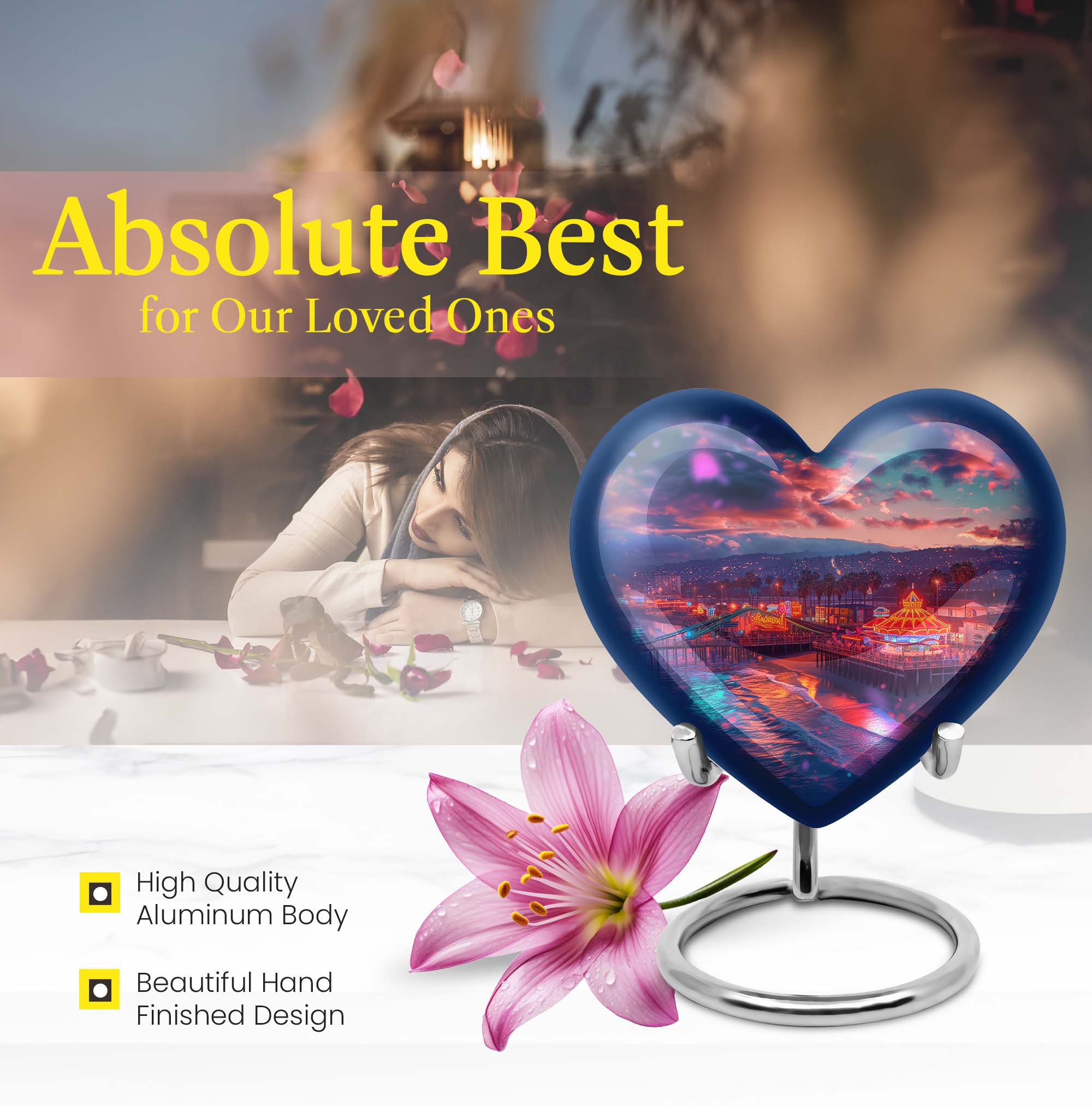 Experience an intimate sense of calm and renewed solace with our exquisite 10-inch Beach Urn, a cherished selection in our range of funeral decorative urns. Traditionally crafted from high-grade Aluminium, this large urn is impressive in its weight - 3.3 pounds, and dimensions - 10 inches in height. It boasts a heartfelt capacity of 200 cubic inches, perfectly encapsulating the spirit of your departed love. Personalize this cremation urn with engraved names, a compassionate nod to the uniqueness of each soul. Its theme celebrates the eternal cycle of life through a gentle array of flowers, beautifully arranged on the exterior of the Heart Urn. As part of the package, we offer a velvet pouch for containment of ashes, a protective and dignified home for those cherished remains. Our Memorial urns for human ashes adult female, urn human adult male and urns for cremation ashes mother, have all been designed with profound respect and delicacy, allowing you to honor your loved one with the dignity they deserve.