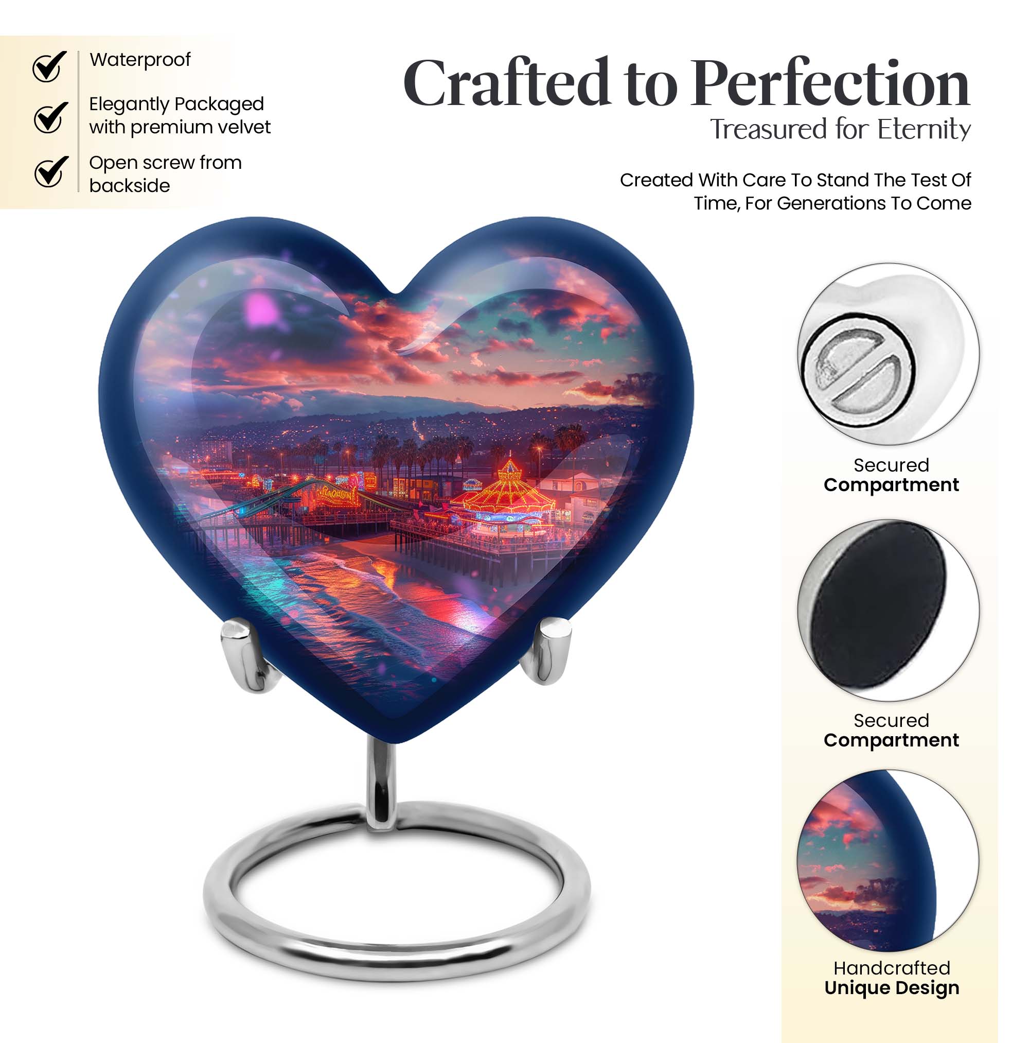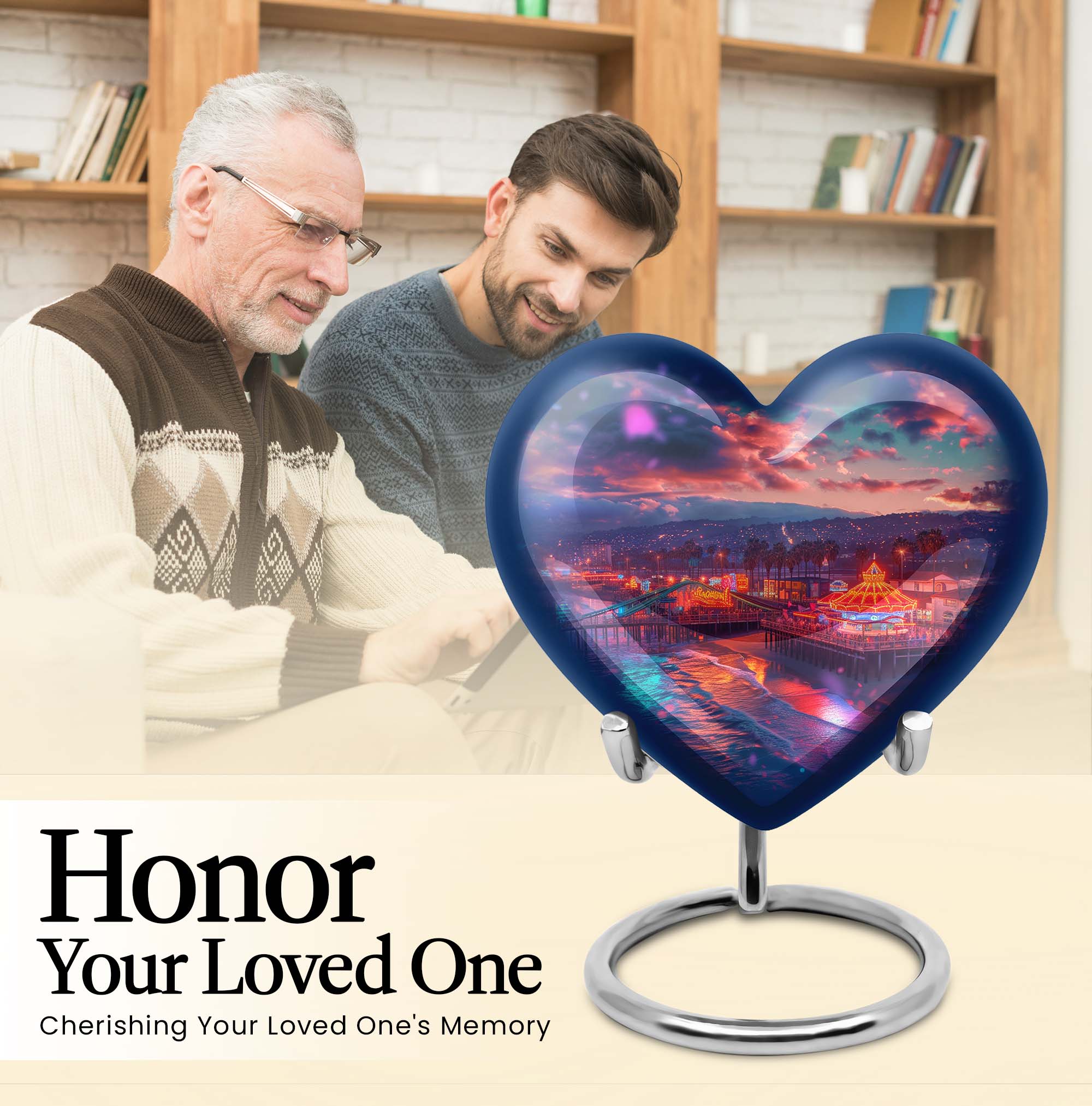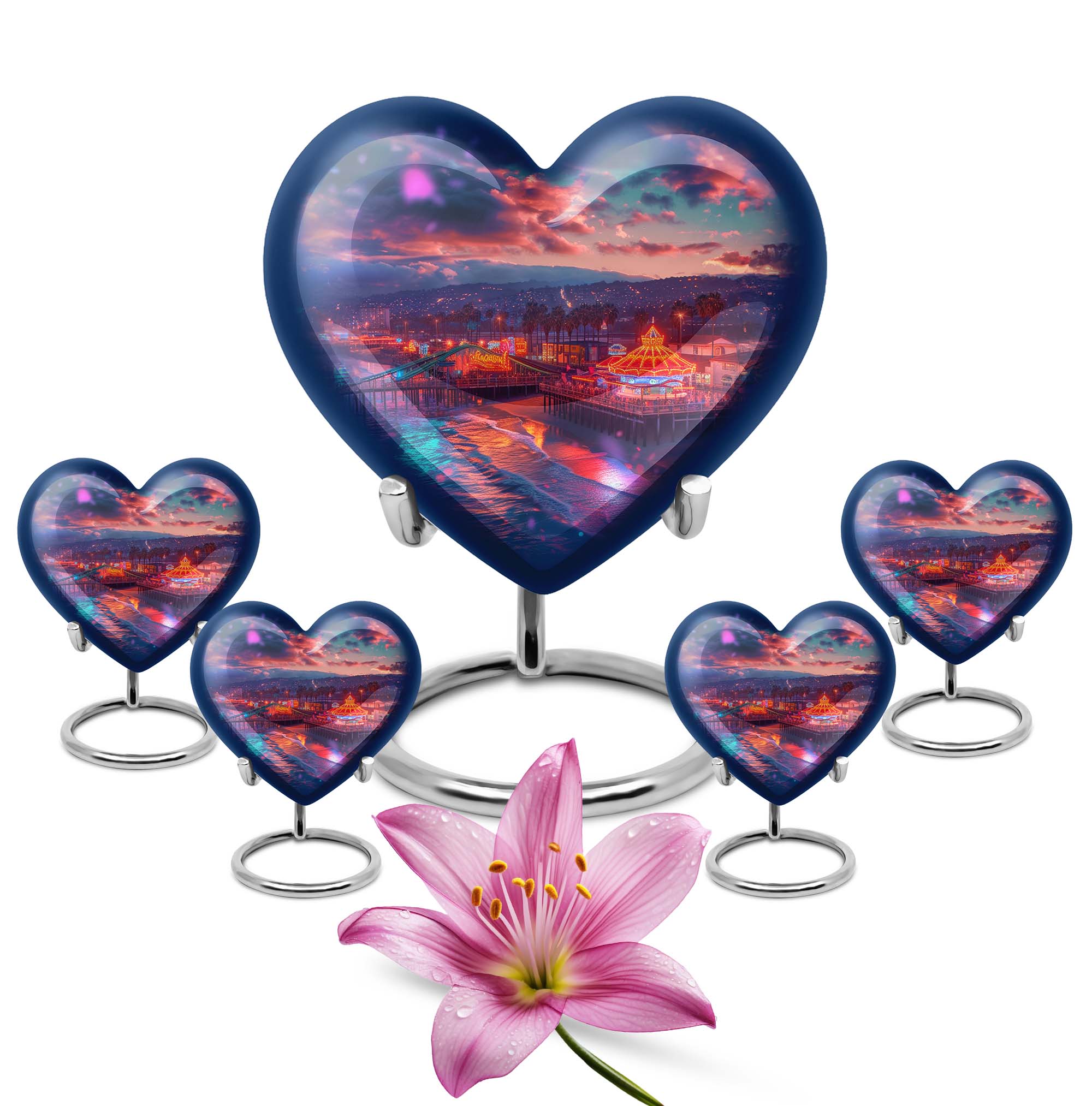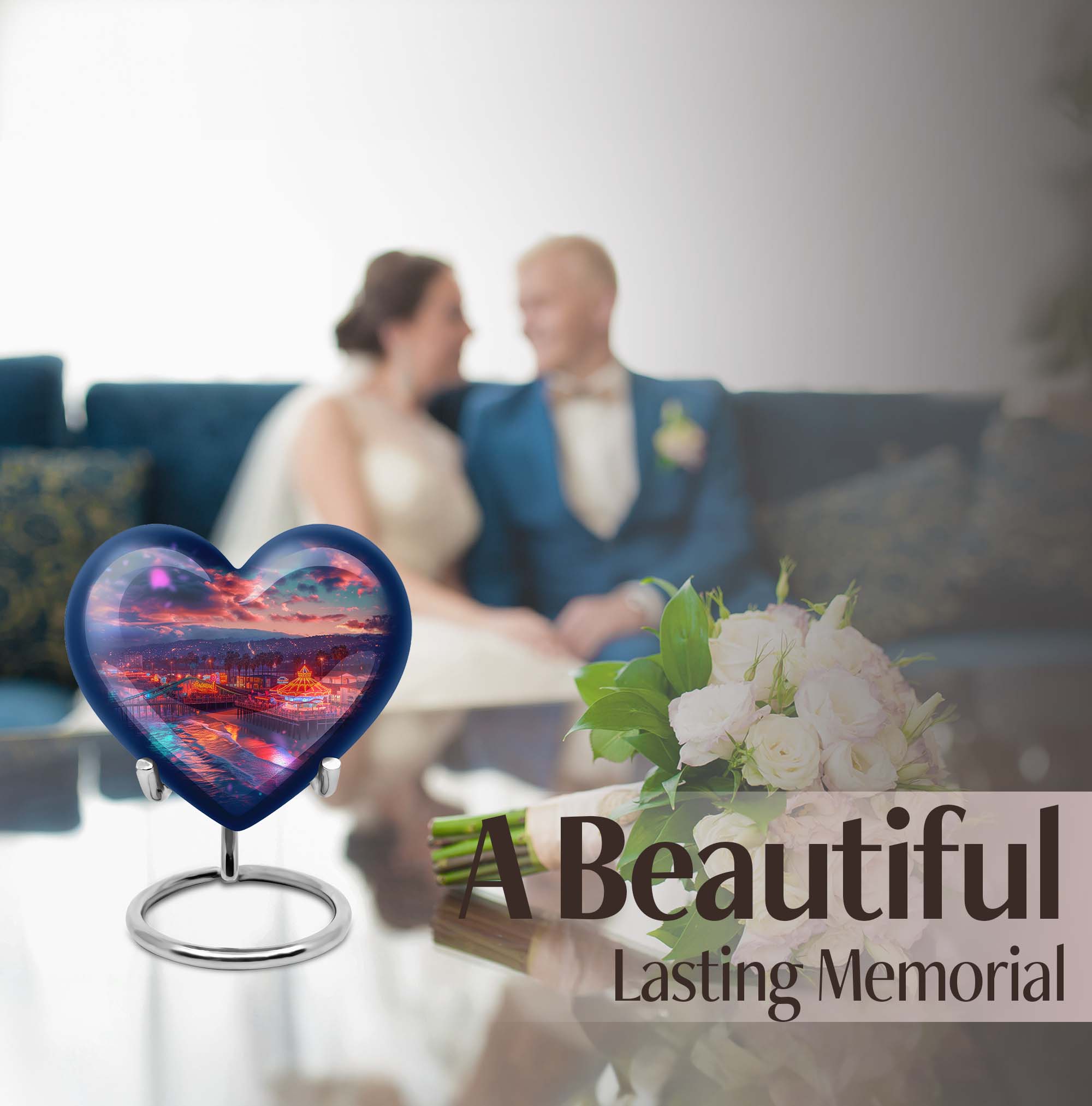 Experience an intimate sense of calm and renewed solace with our exquisite 10-inch Beach Urn, a cherished selection in our range of funeral decorative urns. Traditionally crafted from high-grade Aluminium, this large urn is impressive in its weight - 3.3 pounds, and dimensions - 10 inches in height. It boasts a heartfelt capacity of 200 cubic inches, perfectly encapsulating the spirit of your departed love. Personalize this cremation urn with engraved names, a compassionate nod to the uniqueness of each soul. Its theme celebrates the eternal cycle of life through a gentle array of flowers, beautifully arranged on the exterior of the Heart Urn. As part of the package, we offer a velvet pouch for containment of ashes, a protective and dignified home for those cherished remains. Our Memorial urns for human ashes adult female, urn human adult male and urns for cremation ashes mother, have all been designed with profound respect and delicacy, allowing you to honor your loved one with the dignity they deserve.