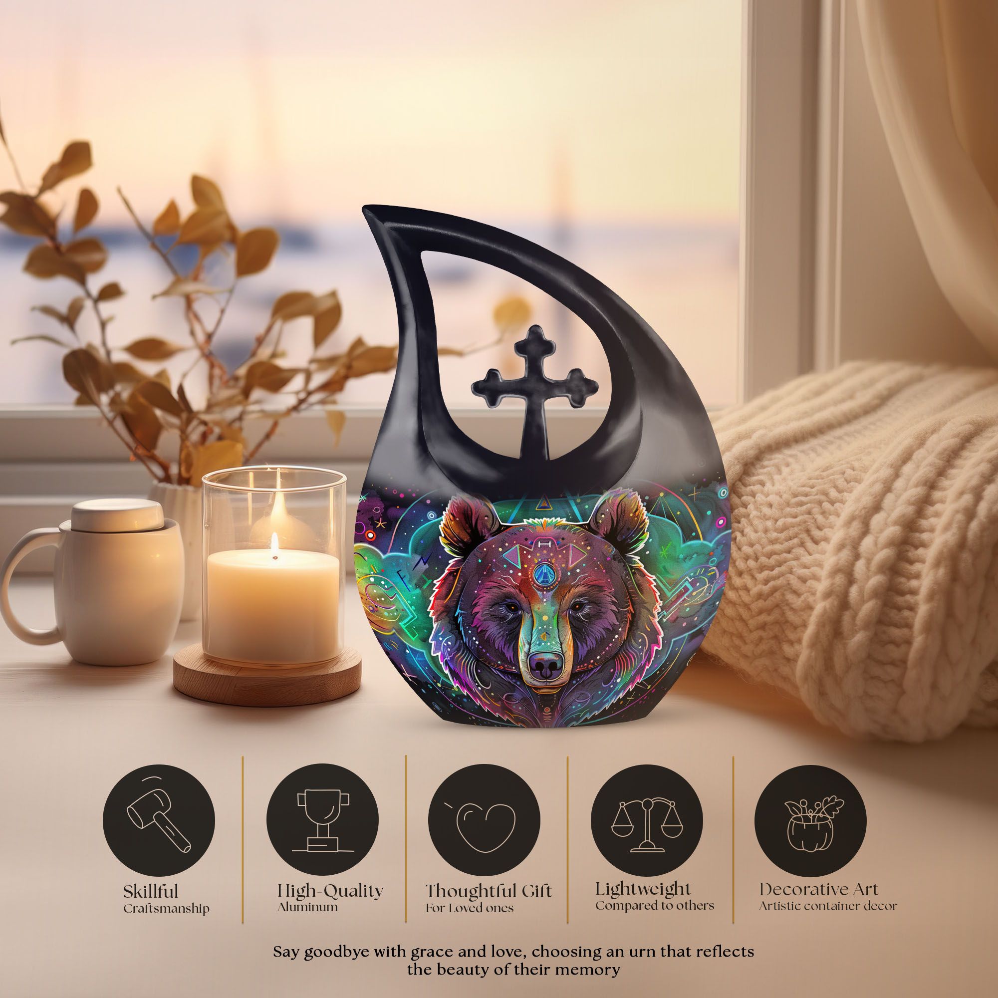 Crafted from durable aluminum, this large cremation urn showcases a beautifully detailed bear theme that symbolizes strength, guidance, and protection. Its smooth finish and premium craftsmanship make it a meaningful choice for those searching for urns for ashes large or a large human ashes urn. The secure screw-top lid ensures the ashes remain safe, while the generous capacity makes it suitable for urns for human ashes large adult needs.
