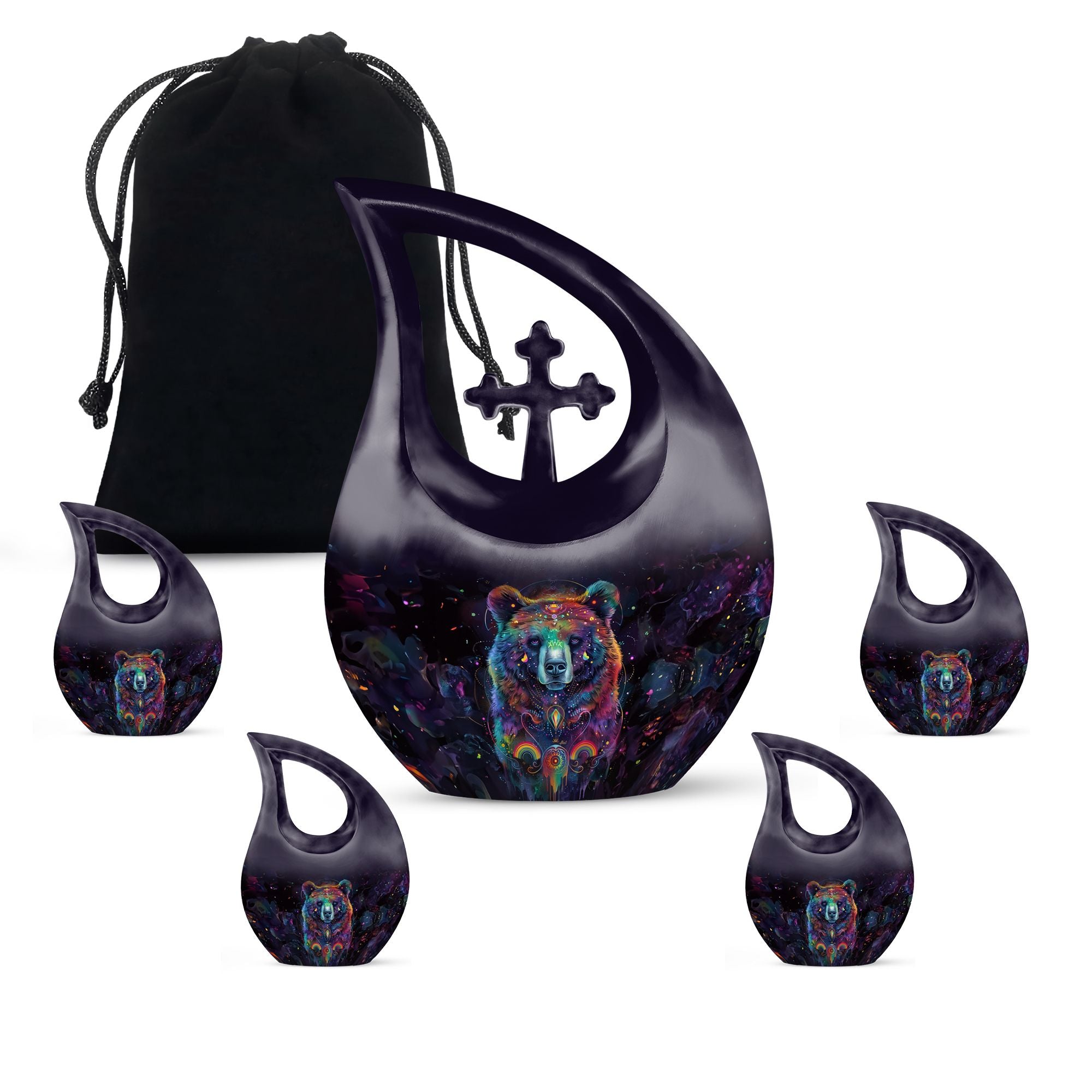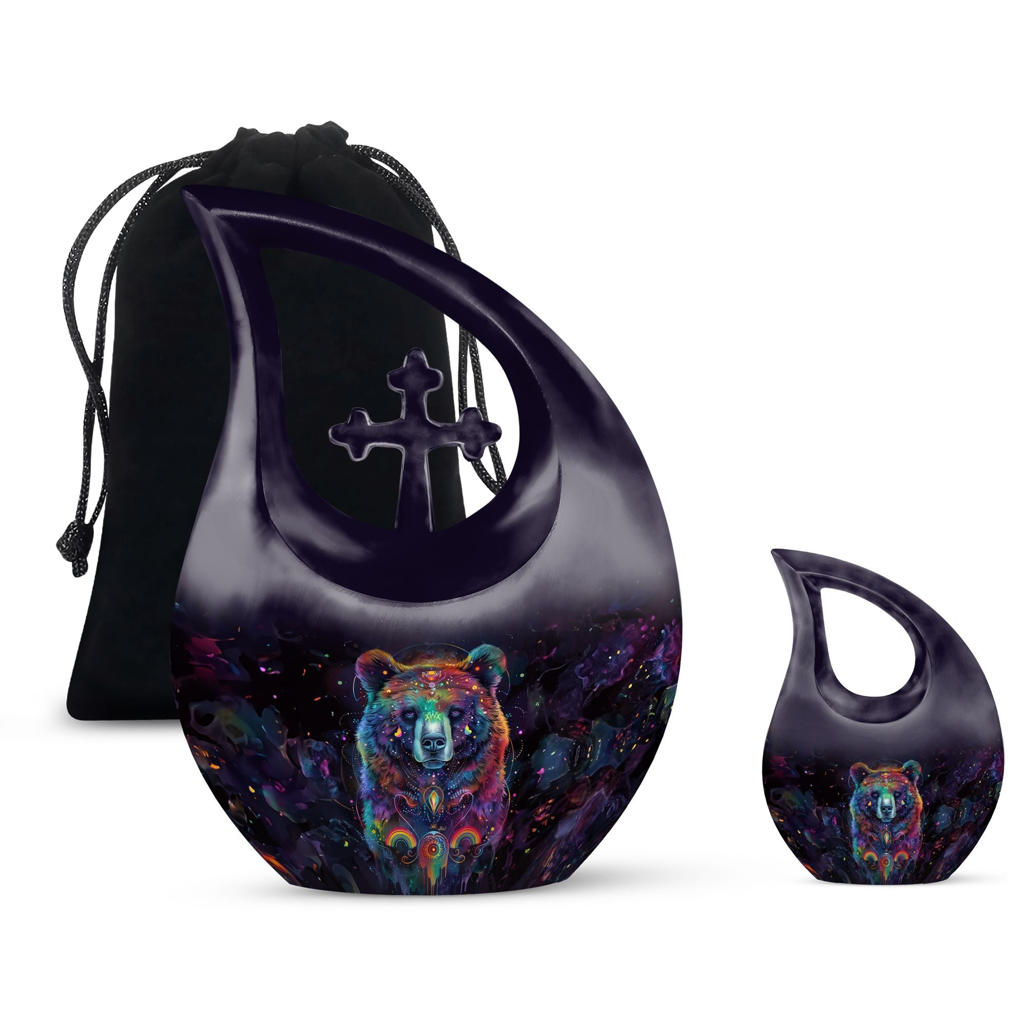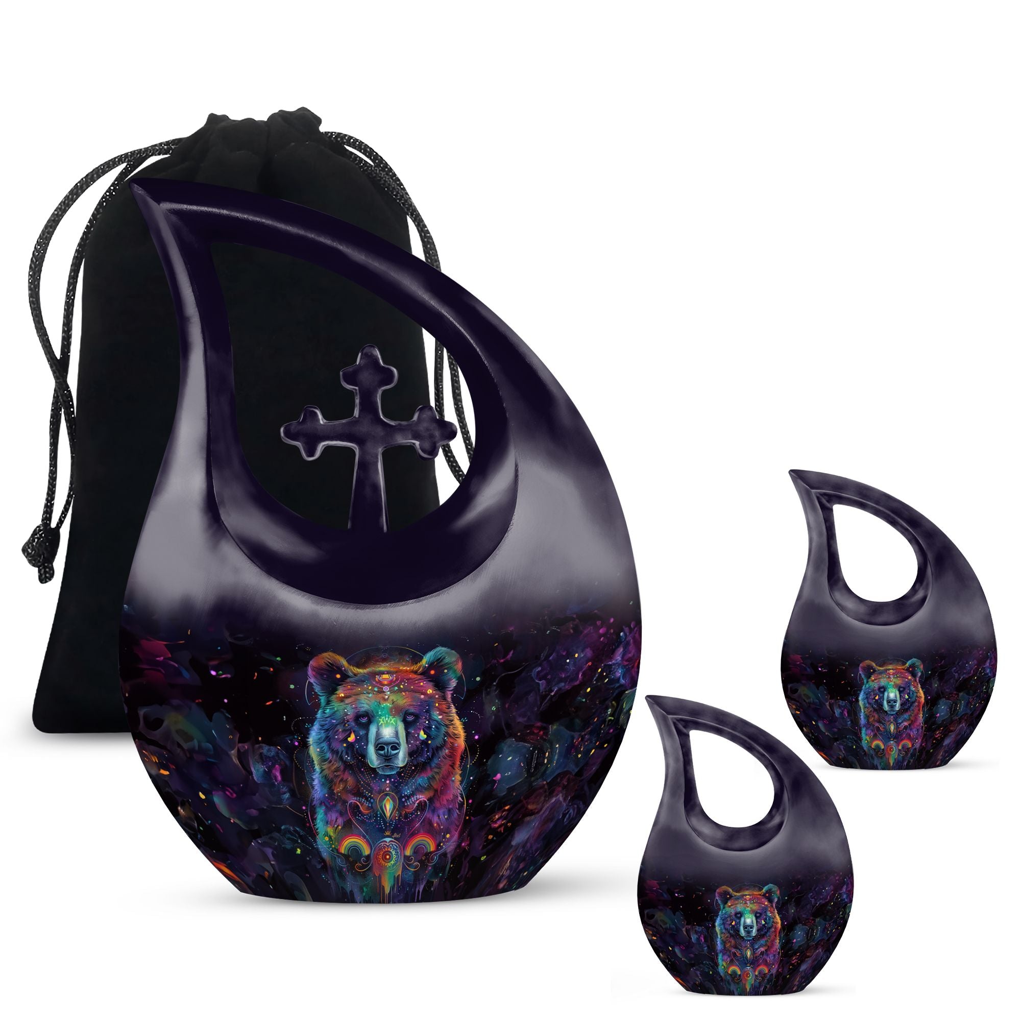 Experience a heartfelt tribute to a loved one with our Bear Urn, a precious final resting place that is ideal for Adult and Seniors. Crafted meticulously from sturdy aluminium, this 10-inch, 3.3-pound Custom Urn for Human Ashes honors the life and memories of your loved one. The discriminating Cross Drop theme adds a serene touch, a symbol of eternal life and divine love. With a capacity of 200 cubic inches, this Large Urn, taking up minimal space, serves as an elegant, gentle reminder of the shared moments. Further, enhance the personal significance with our customization service that allows you to engrave names on it. The urn arrives accompanied by a velvet pouch, providing a dignified containment for the ashes while also making transportation easier. Whether it’s Extra Large Cremation Urns or Medium Size Urns you're looking for, the unique charm of our Bear Urn is undeniable. Savor the beauty, durability, and sacred symbolism when you choose to commemorate your loved one with this splendid urn.