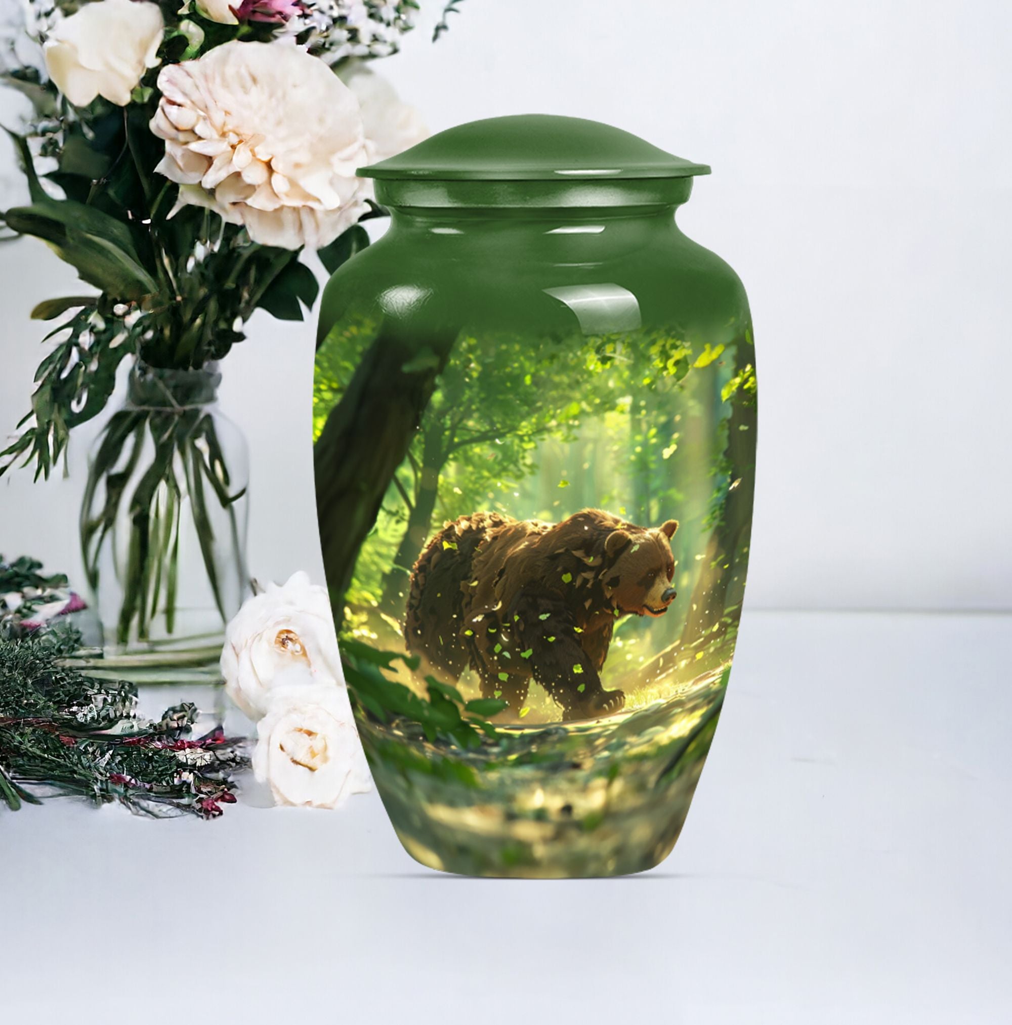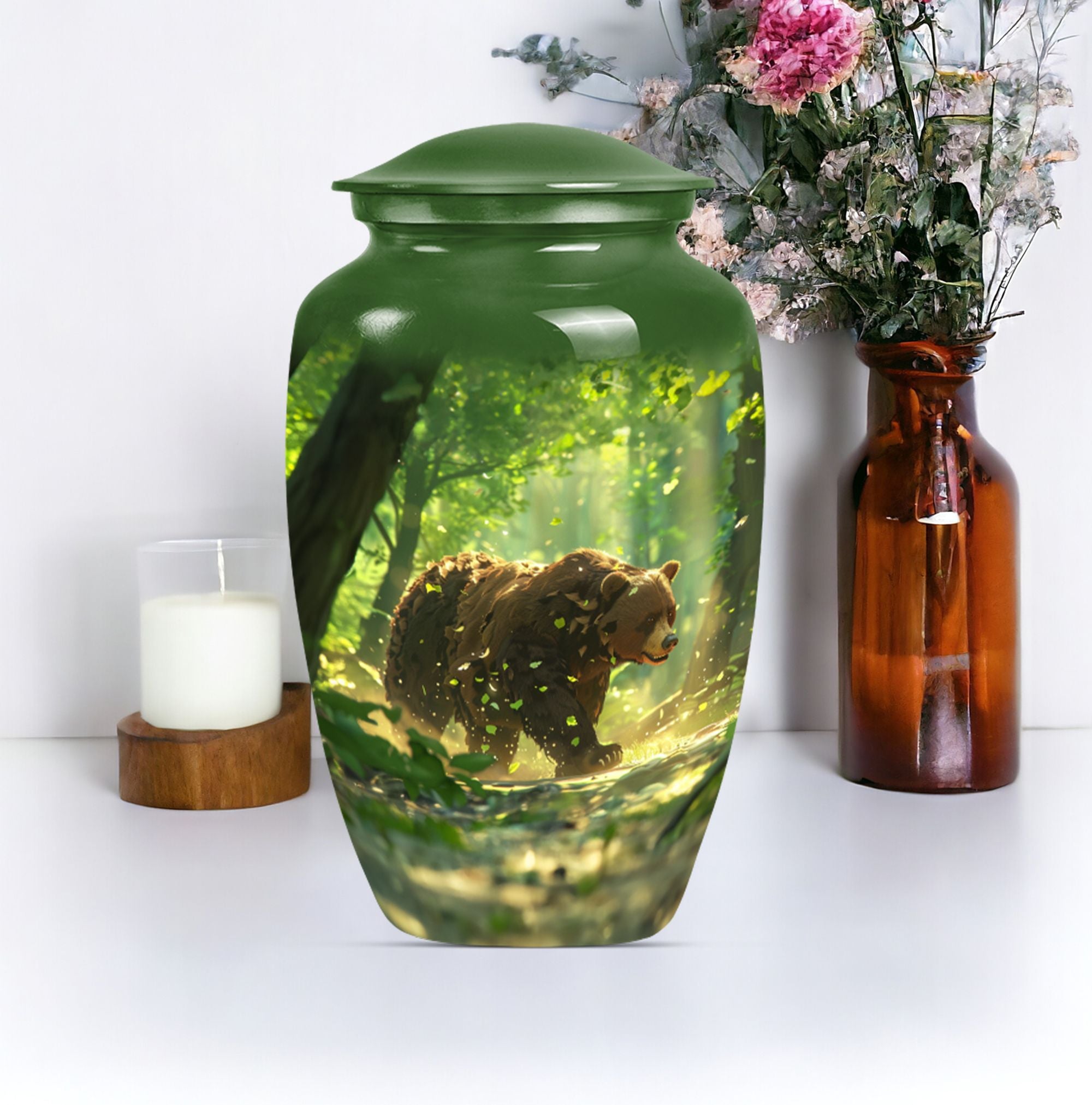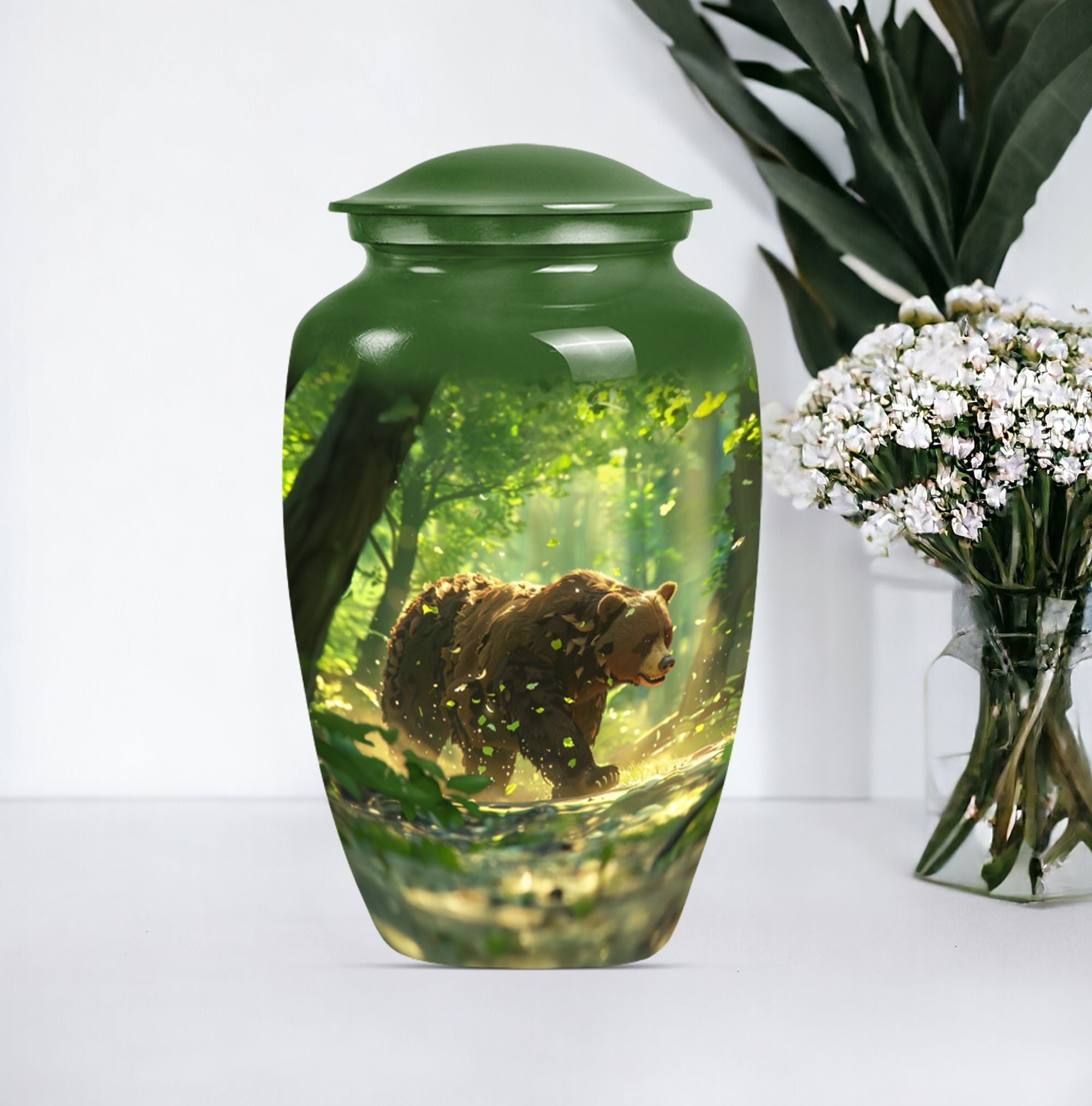 Celebrate the life of a cherished one with our exquisitely crafted bear urn. This cremation urn, carefully designed for adults and seniors, exhibits a deep-rooted spirituality and respect. It's a large urn with a capacity of 200 cubic inches, carefully constructed out of durable aluminium to last for ages. The exquisite butterfly theme adds a unique touch of serenity and love. Weighing at 3.3 pounds and 10 inches in height, the urn has an admirable presence. The package includes a luscious velvet pouch for containment of ashes, affirming the dignified journey to the after-life. Plus, we offer customization option to personalize this bear urn with engraved names, thereby creating a distinct and heartfelt tribute. This cremation urn makes a beautiful centerpiece, sparking loving remembrance every time you gaze upon it. The cremation urns for men and burial urns, such unique funeral cremation urns and shaped urn box; it's a touching tribute to the memory of loved ones.
