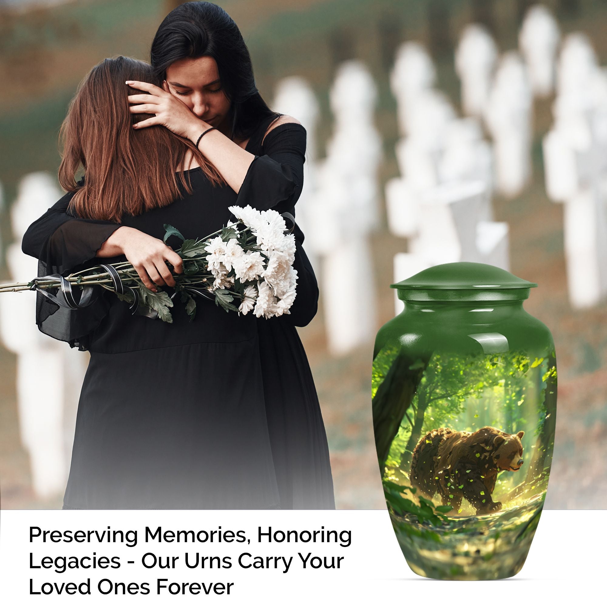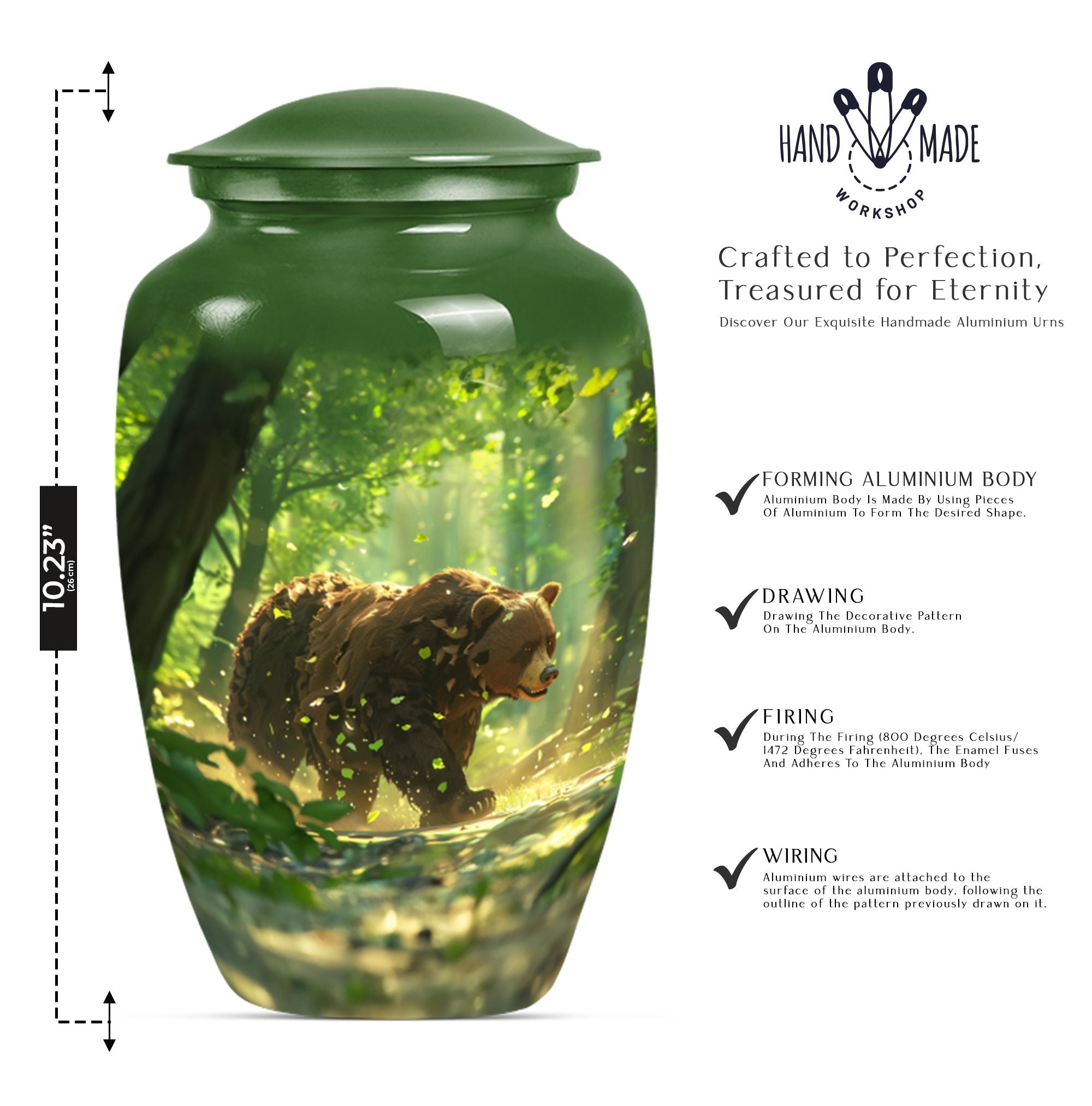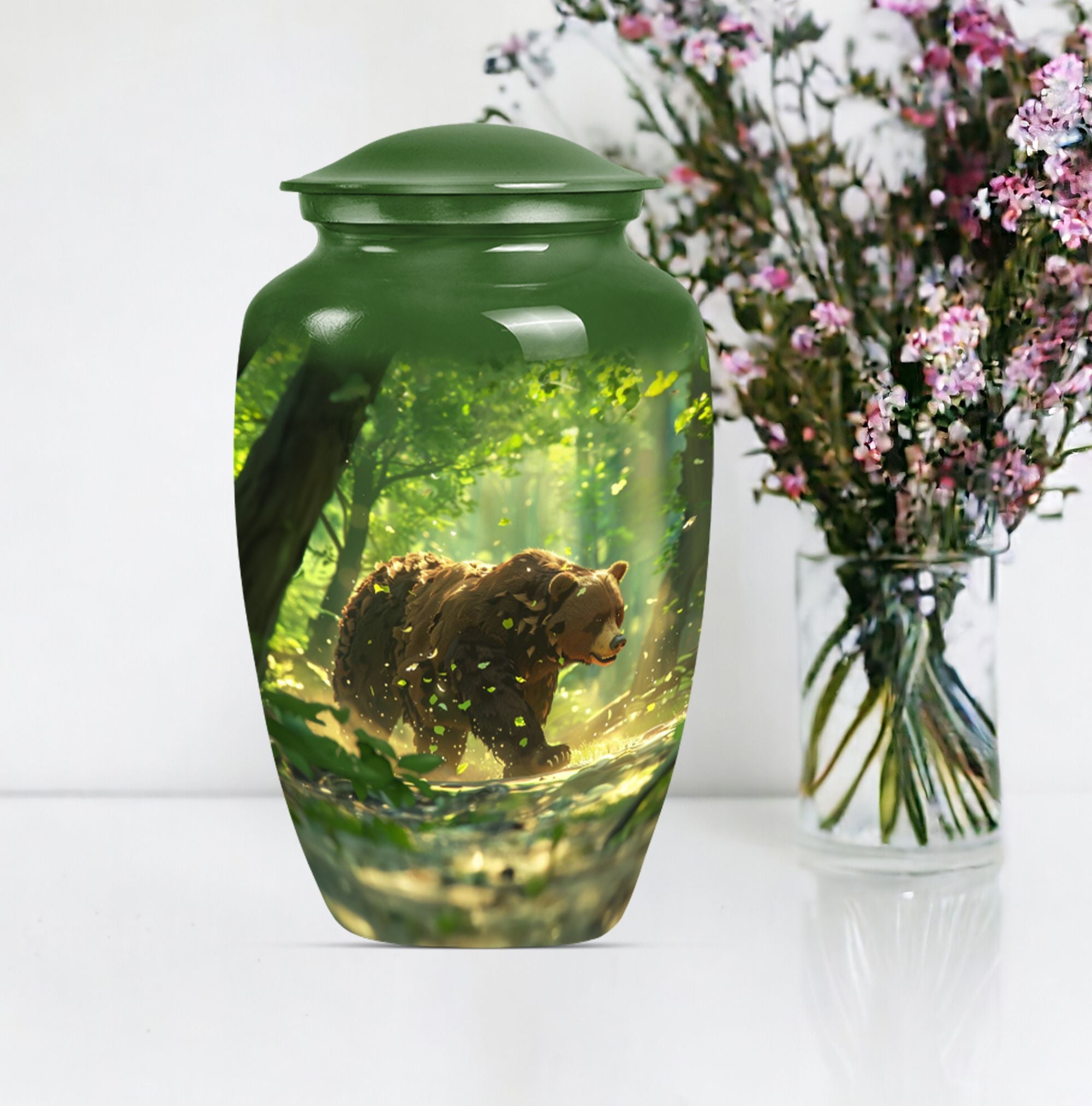 Celebrate the life of a cherished one with our exquisitely crafted bear urn. This cremation urn, carefully designed for adults and seniors, exhibits a deep-rooted spirituality and respect. It's a large urn with a capacity of 200 cubic inches, carefully constructed out of durable aluminium to last for ages. The exquisite butterfly theme adds a unique touch of serenity and love. Weighing at 3.3 pounds and 10 inches in height, the urn has an admirable presence. The package includes a luscious velvet pouch for containment of ashes, affirming the dignified journey to the after-life. Plus, we offer customization option to personalize this bear urn with engraved names, thereby creating a distinct and heartfelt tribute. This cremation urn makes a beautiful centerpiece, sparking loving remembrance every time you gaze upon it. The cremation urns for men and burial urns, such unique funeral cremation urns and shaped urn box; it's a touching tribute to the memory of loved ones.