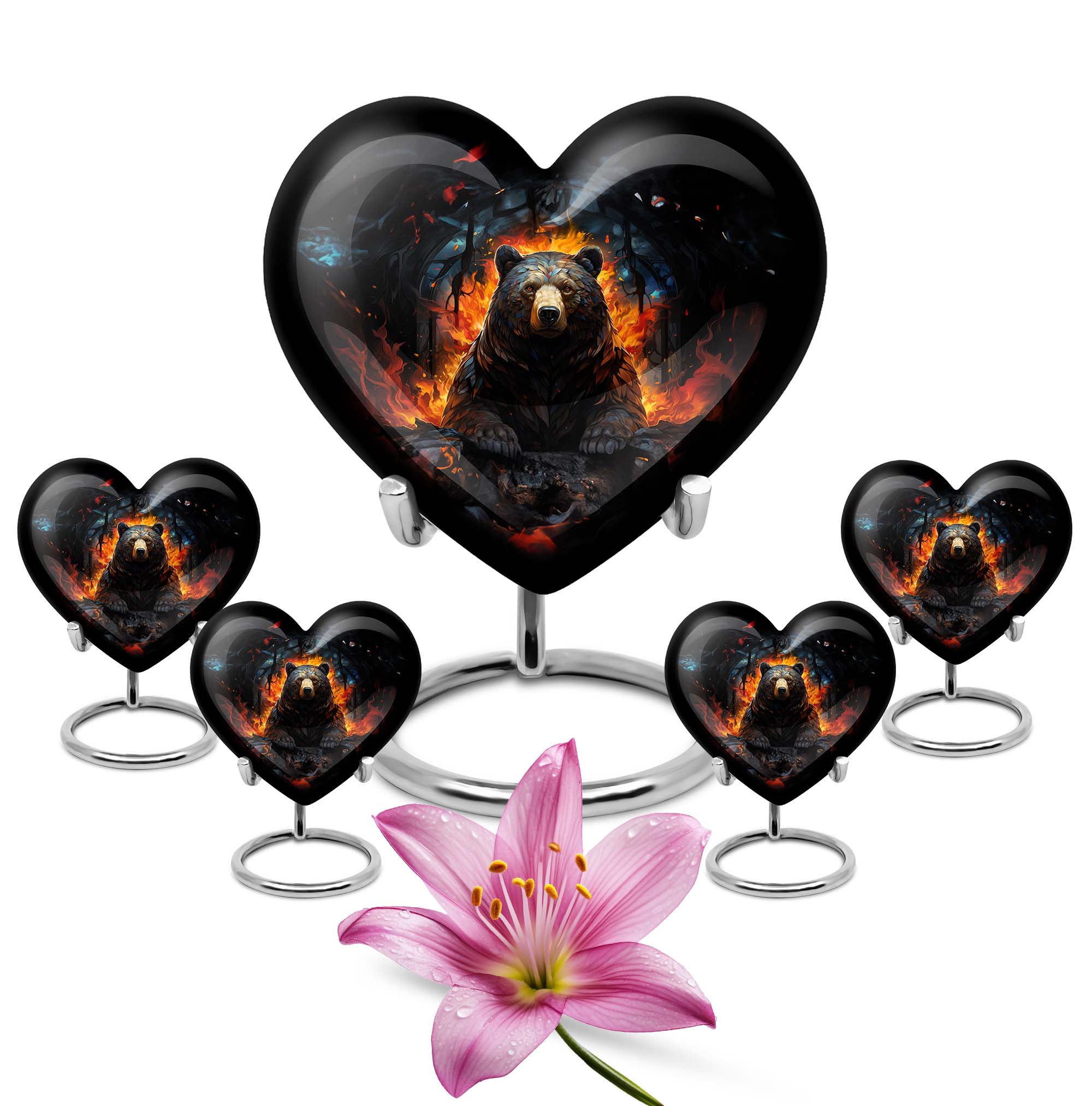 Manifest your ongoing love and respect with our abstract-themed bear urn, a touching addition to any memorial ceremony. Crafted of high-quality aluminum, this 10-inch burial urn has a generous capacity of 200 cubic inches, significant enough to respectfully contain adult ashes. The heart-shaped large urn champions the everlasting bond between the departed and those left behind. Weighing at 3.3 pounds, this substantial and sturdy cremation urn also offers the opportunity to personalize it with engraved names, adding more sentimental value to this memorial gift. To help you in safe containment of the sacred ashes, we include a soft velvet pouch. Expand your search phrases to find this product using terms such as 'cremation urn funeral urn adult ash' or 'metal urn for ashes adult male'. Embrace the eternal connection with this tasteful abstract-themed bear urn—a tribute to remember.
