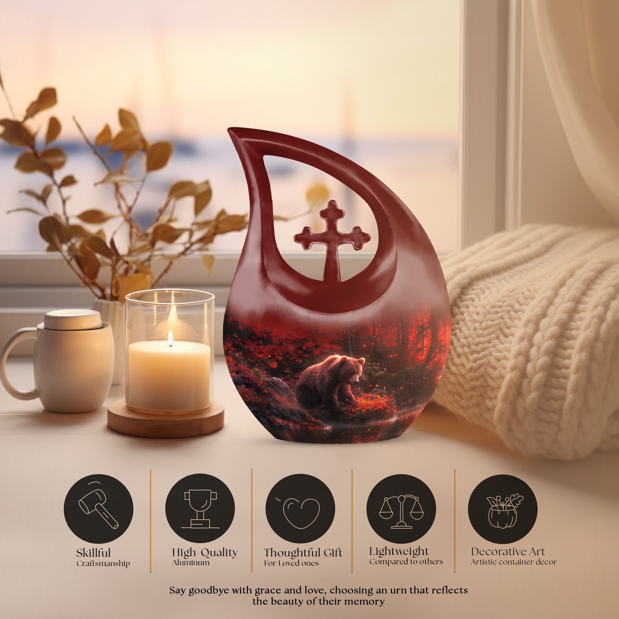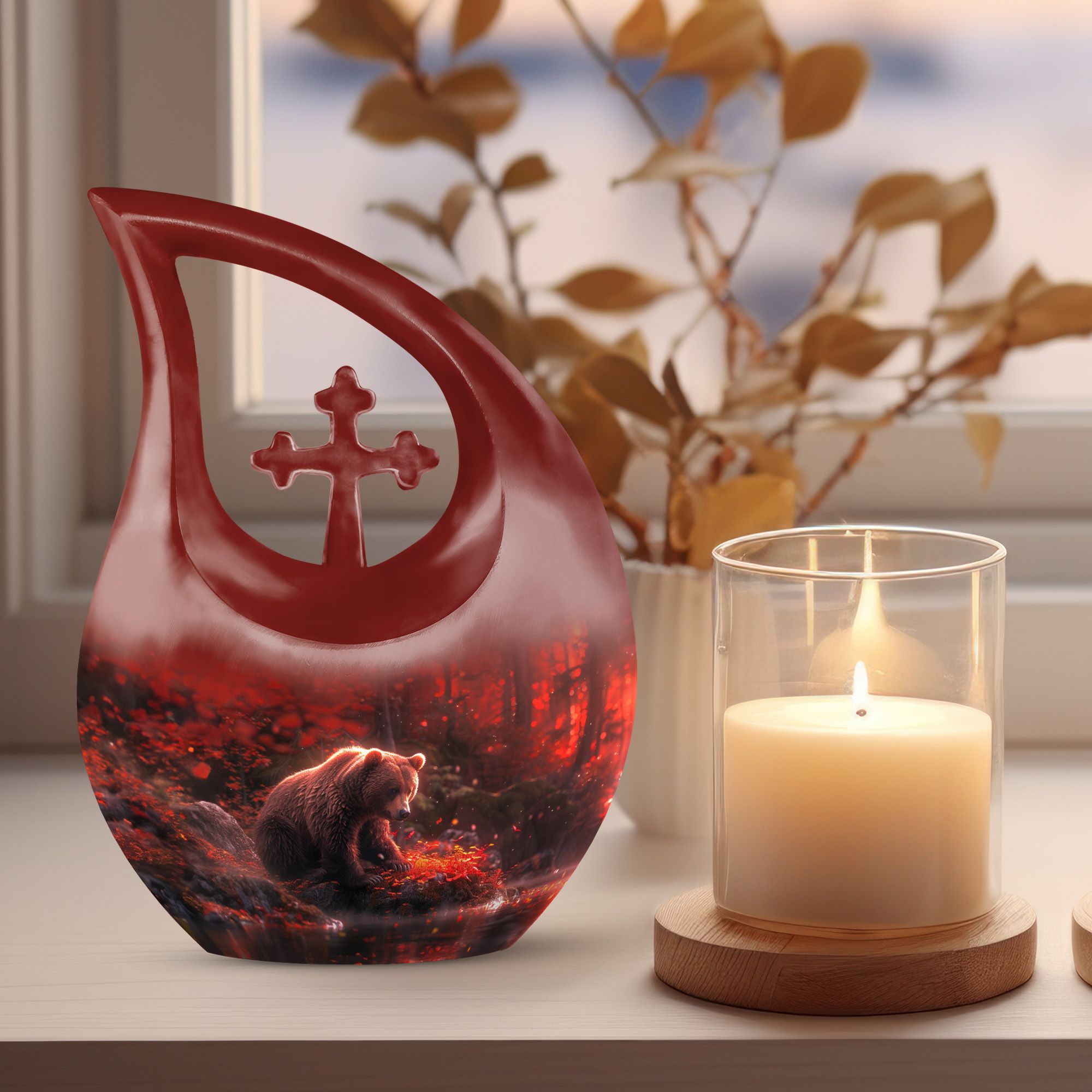 This large decorative urn features detailed bear artwork symbolizing strength, protection, and eternal love. Expertly crafted from durable aluminum, it serves as a cremation urn adult large option that blends beauty with reliability. The secure screw-top lid ensures ashes are safely preserved, while its elegant, natural design complements both modern and traditional memorial settings. Whether you need cremation urns large, a large funeral urn, or cremation urns for large human ashes adult, this piece provides both functionality and heartfelt expression. Families needing flexible memorial solutions can choose matching keepsake options, including keepsake set of 1, keepsake set of 4, or large with 4 keepsake combinations.