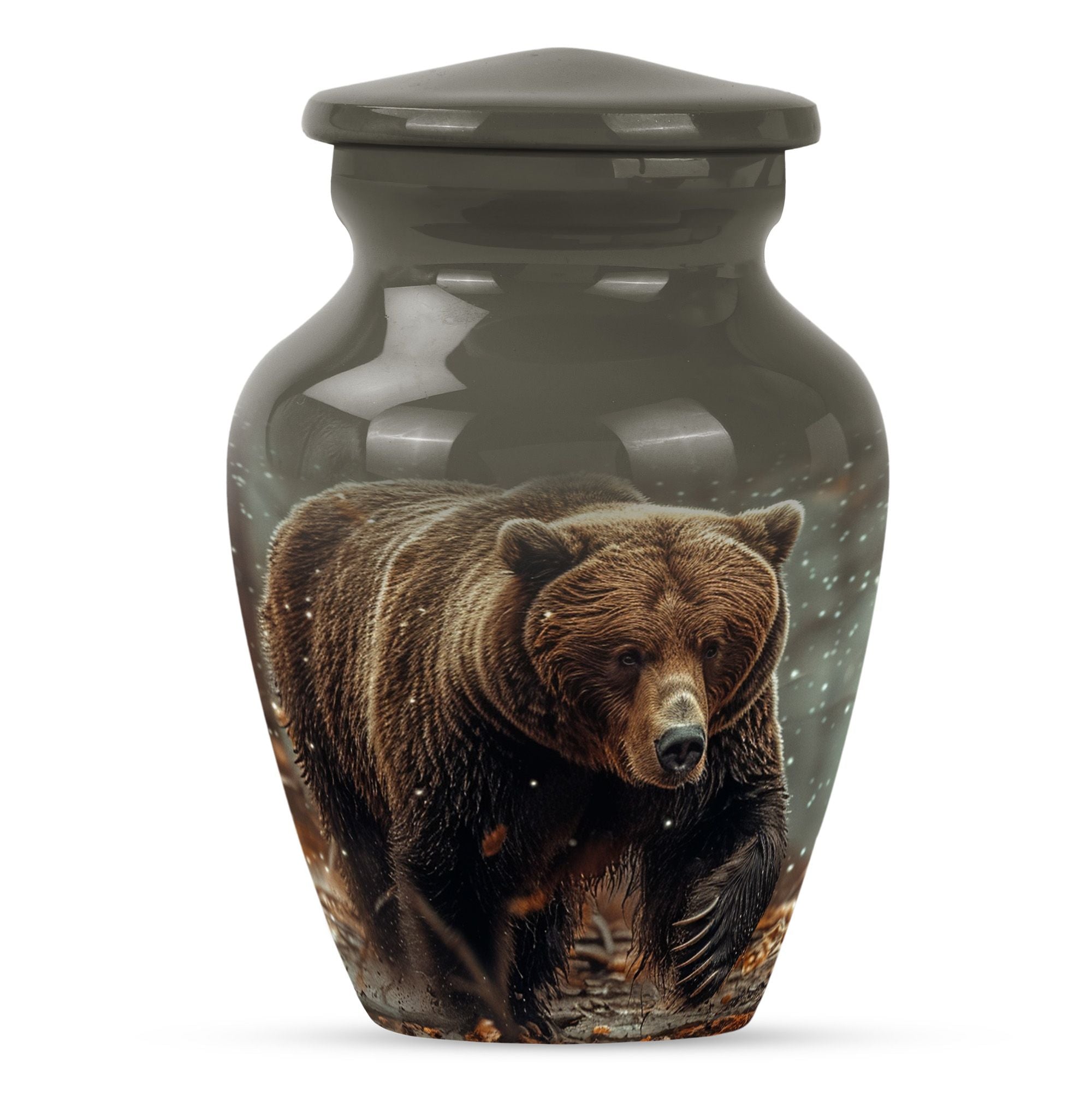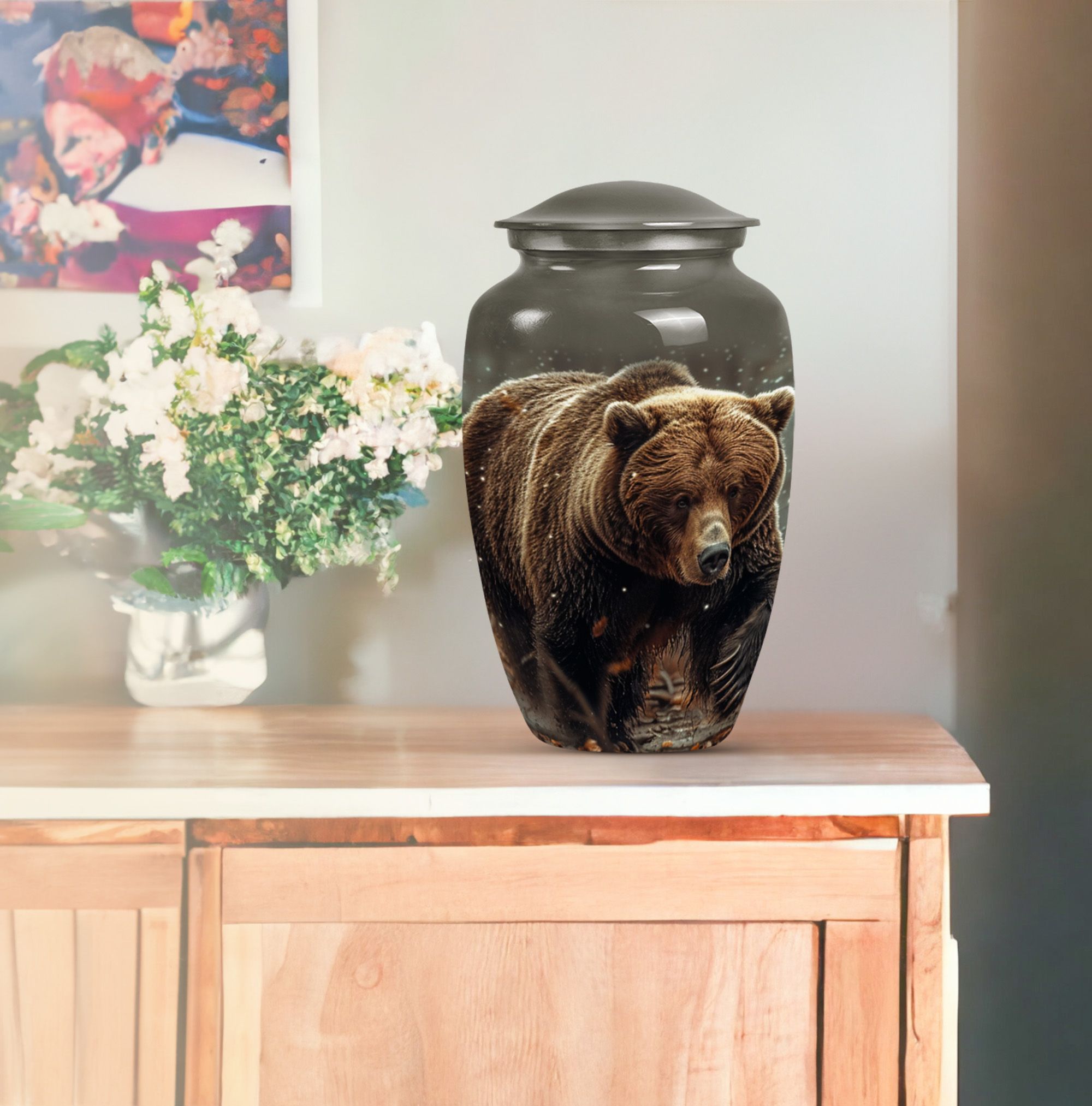 Unveil a cherishable treasure to honor your loved ones with our Purple Meadow, a 10-inch tall, large-sized Bear Urn. Crafted of high-quality aluminium, this funeral urn for human ashes adult combines durability and exquisite aesthetics. With a holding capacity of 200 cubic inches, it comfortably accommodates human ashes, making it an ideal commemoration piece. Our Bear Urn is no ordinary urn; it combines the unparalleled Classic Urn layout with the enchanting Purple Meadow theme. Its weight of 3.3 pounds adds to its sturdy structure. The urn is carefully packed within a velvet pouch ensuring secure containment. Further, a unique feature that adds a personal touch is its customization. Our urn lets you personalize with engraved names, connecting you deeper with the departed soul. It serves a dual purpose – as a significant memorial urn for burial in ground and also as a large metal urn to hold ashes. Offering solace in your grieving moments, this cremation urn is more than just an urn; it's a sacred vessel of memories and love.
