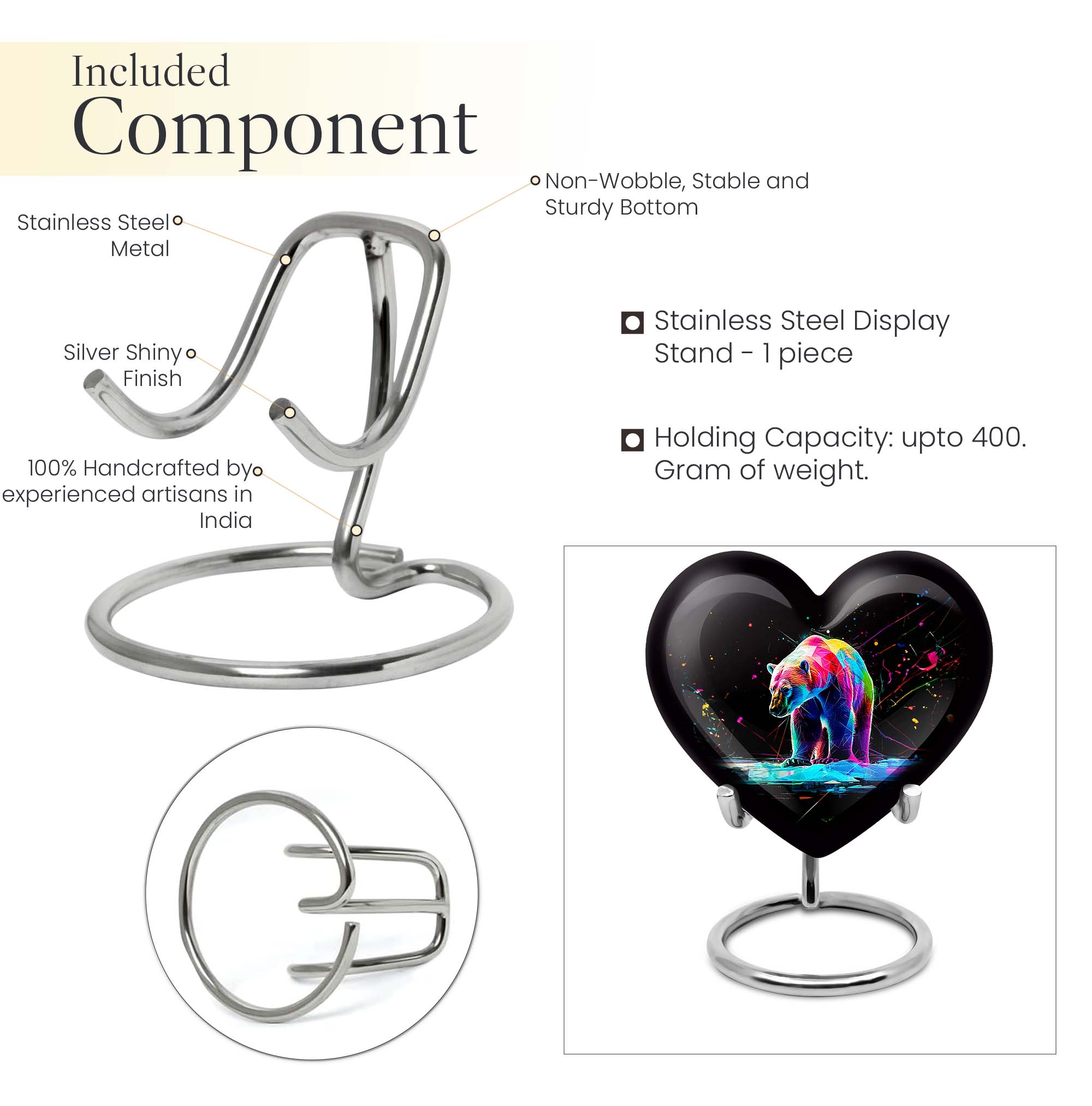 Discover the bear Urn, a meticulously crafted aluminium cremation urn for ashes - specifically designed for those seeking a fresh and meaningful way to honor the life of a loved one. This 10-inch Heart Urn - a standout in memorial ceremony supplies - is a large urn that accommodates up to 200 cubic inches of remains. Its substantial weight of 3.3 pounds infuses it with a comforting sturdiness. The urn's dignified theme is further accentuated by the option to personalize with engraved names, making it an enduring sanctuary for the memories held precious. In addition, every item comes with a velvet pouch for respectful containment of remains, offering a thoughtful touch. Looking beyond traditional burial urns, this multipurpose urn's shape and photo frame opens up more room for sentiment. Whether you're seeking cremation urns for adult ashes or a versatile ceremonial centerpiece, this heart-shaped urn serves the purpose with grace and reverence.