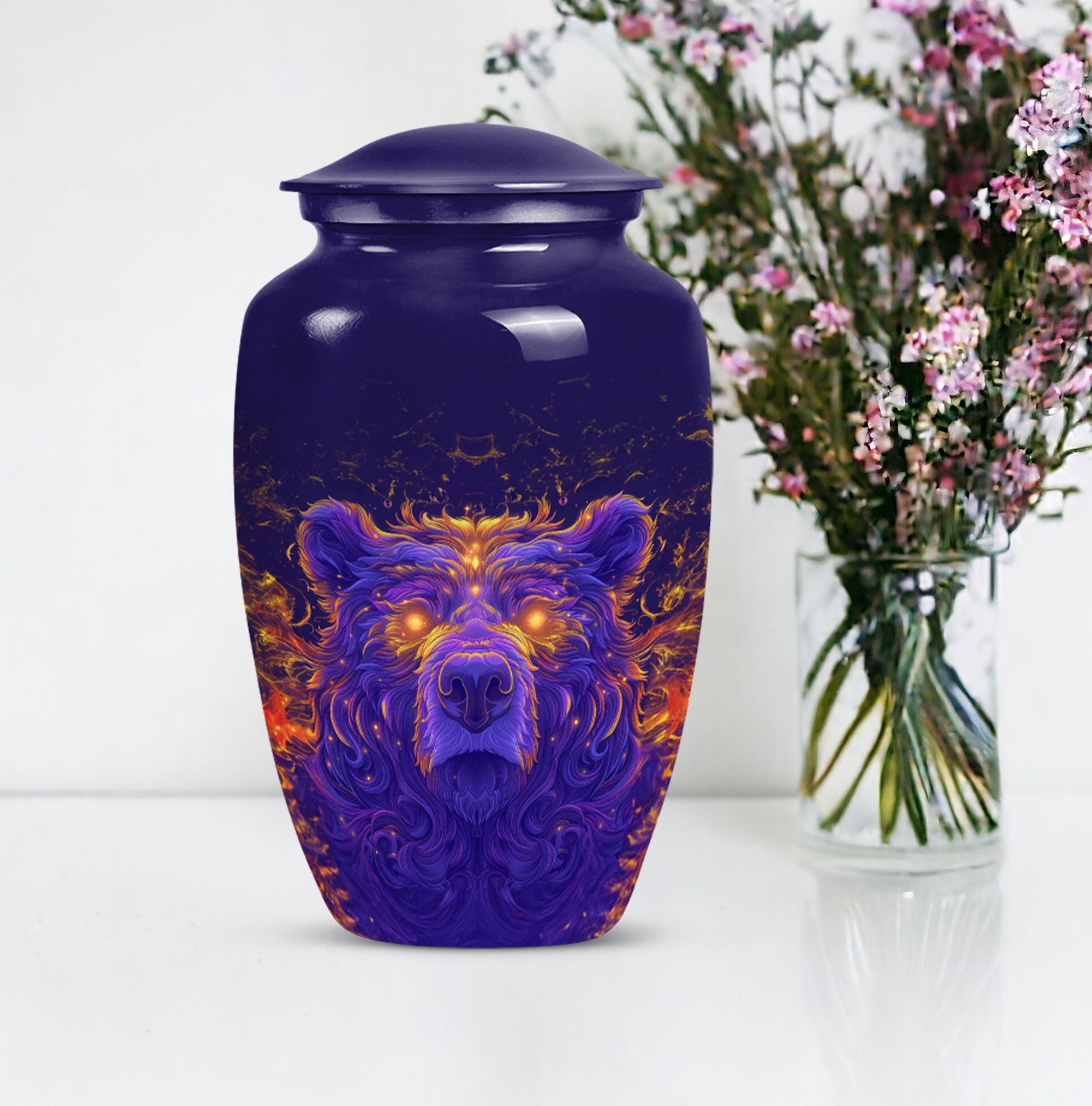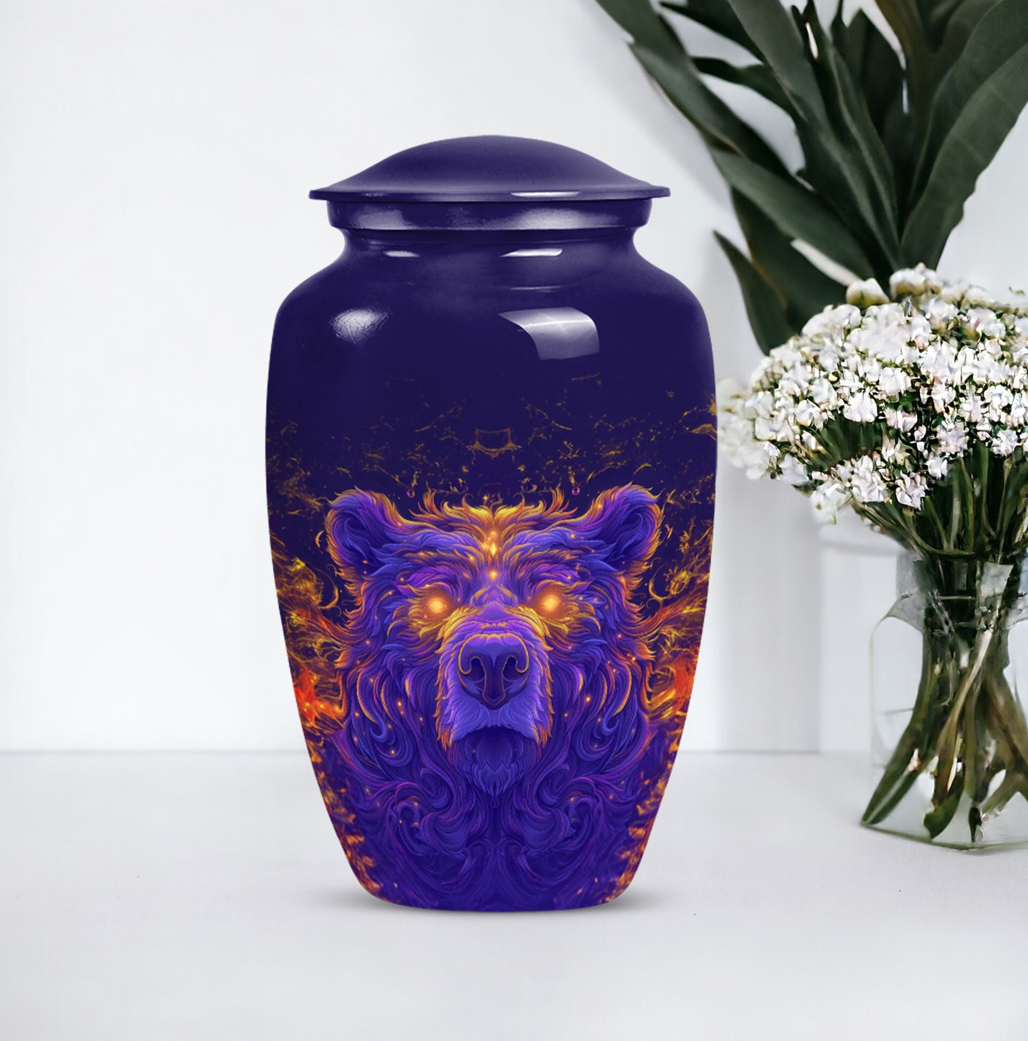 Discover a dignified and unique way to commemorate your beloved with our bear urn. Crafted with excellent precision, this 10-inch cremation urn for men is made meticulously from high-quality aluminium, ensuring superior durability. As a touching tribute to your departed, it provides a capacity of 200 cubic inches, accommodating the ashes comfortably. Its abstract theme and the classic urn styling adds an element of refinement to this necessity. The package comes with a velvet pouch, providing a protective containment for the ashes. Though it weighs 3.3 pounds, its design ensures it can discreetly fit into any corner of your home. This large urn for adult male ashes can be personalized with engraved names to make it more emotionally significant. This cremation urn for two adults is not just a burial urn, but an exquisite piece with an endearing appeal. Ideal for keeping memories alive, it truly resonates with the phrase - 'Remembered with love'.