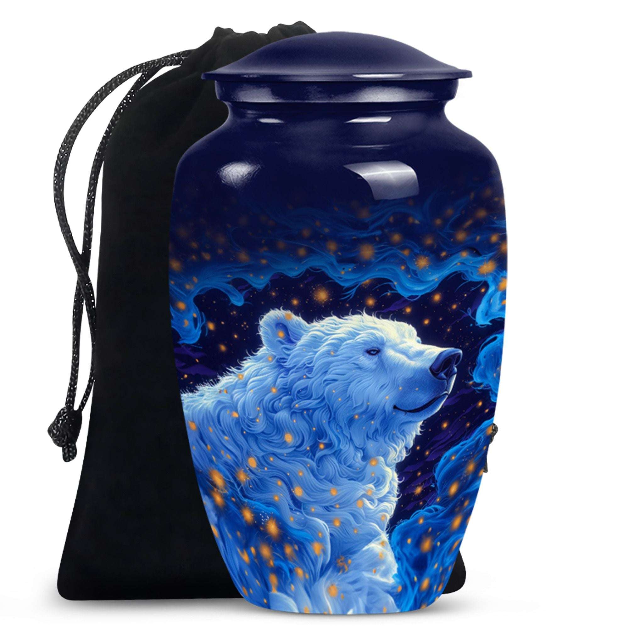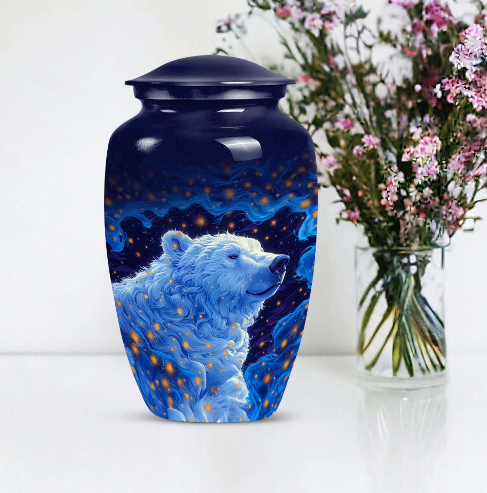 Our 'Classic Urn' is a thoughtful tribute to your departed loved ones. Made from premium aluminium, this cremation urn is designed with an abstract theme, offering a unique way to remember someone special. Measuring a respectful 10 inches in height and weighing 3.3 pounds, it has a capacity of 200 cubic inches—ample space for the precious remains of mom. Additionally, this large urn can also be personalized with engraved names, giving a touch of intimacy and familial connection. The package contains a plush velvet pouch, ensuring that the ashes stay safely enclosed. Primary keywords to note are 'bear Urn' and 'memorial urns for mom.' Complex keywords such as 'Cremation personalized urns for human ashes adult', 'ash adult urn human ash adult', 'burial cremation urn', 'cremation urns medium size' are also associated. This size '10 Inch' urn promises a beautiful and lasting tribute to your dearly departed.