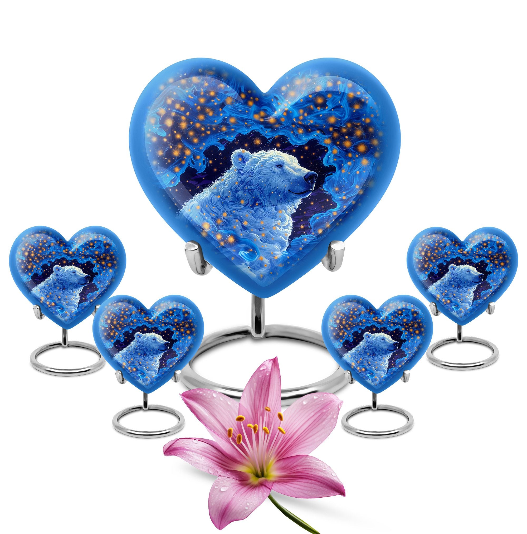 Find solace in this meticulously crafted Heart Urn, a unique tribute made from high-quality aluminium, designed to safeguard the memory of your departed loved one. This 10-inch, large memorial urn for adults is not just an urn but a graceful piece of art that echoes the abstract theme. With a significant capacity of 200 cubic inches, it easily contains the remnants, ensuring your peace. This cremation urn weighs a solid 3.3 pounds adding to its sturdy build and durability. The package also includes a plush velvet pouch that provides a discreet containment for the ashes. The personal touch of engraved names on the urn adds a whole new dimension of sentimentality. Often referred to as a 'bear urn,' or 'memorial urns for mom,' this urn is an achingly beautiful keepsake to honor their lives. Its personalisation aspect makes it stand amongst cremation personalized urns for human ashes adult, burial cremation urn, and cremation urns of medium size.