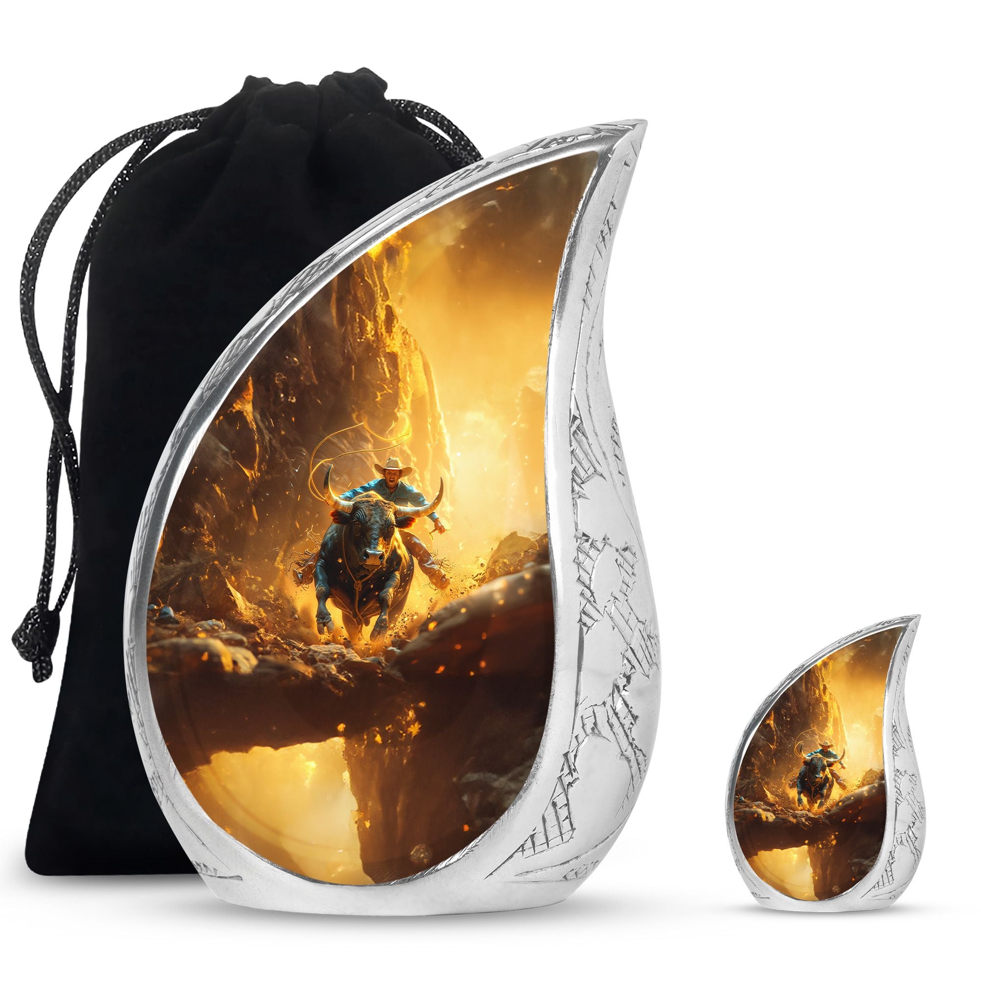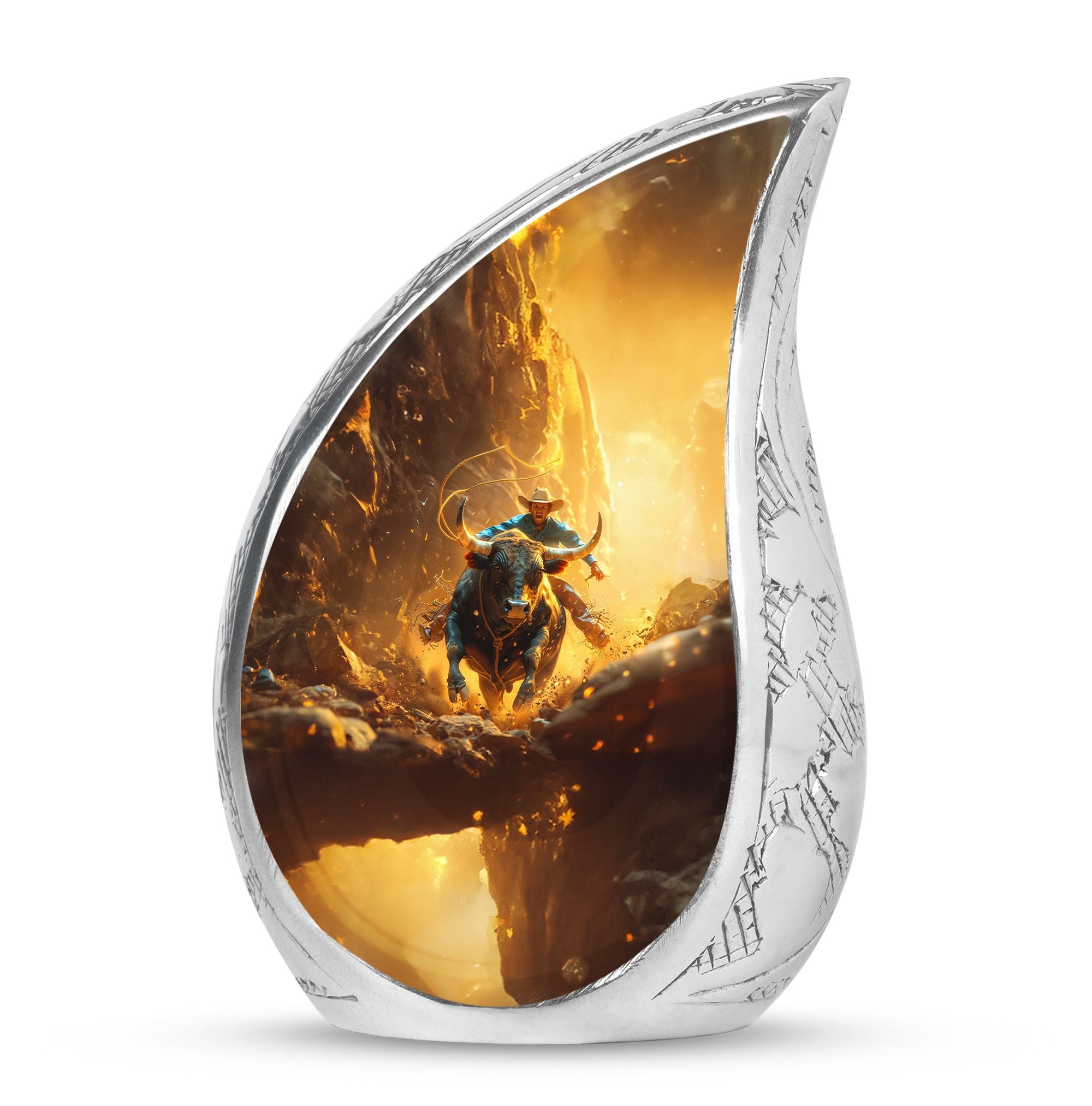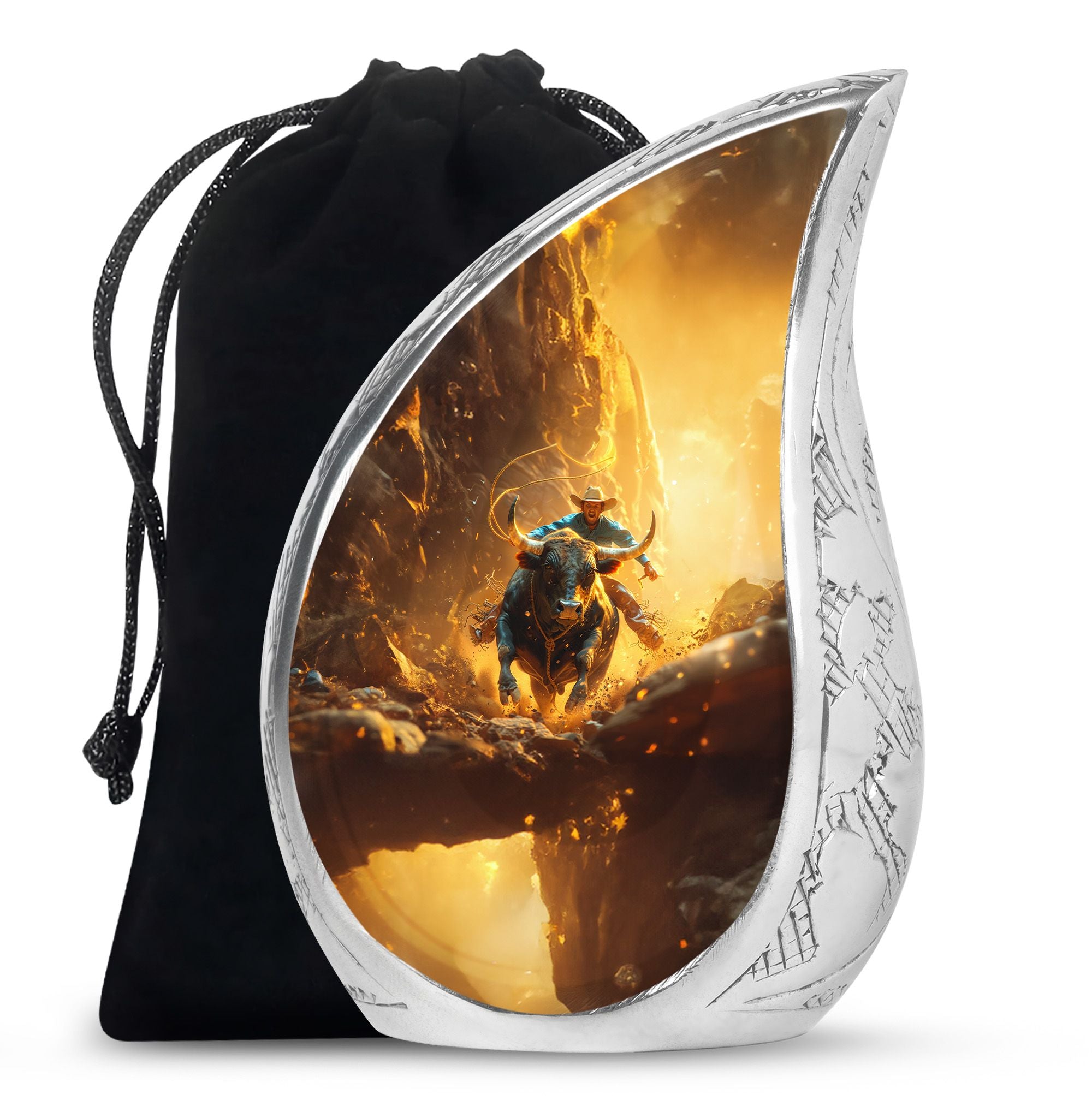 The Cowboy Urn for Adult Male Memorial Urns – Bull Rider Cremation Urn for Ashes is a powerful tribute to strength, adventure, and a life lived with courage. Designed with a bold bull rider motif, this urn reflects the fearless spirit of the cowboy, making it a meaningful choice for those who embraced freedom, resilience, and the open range.