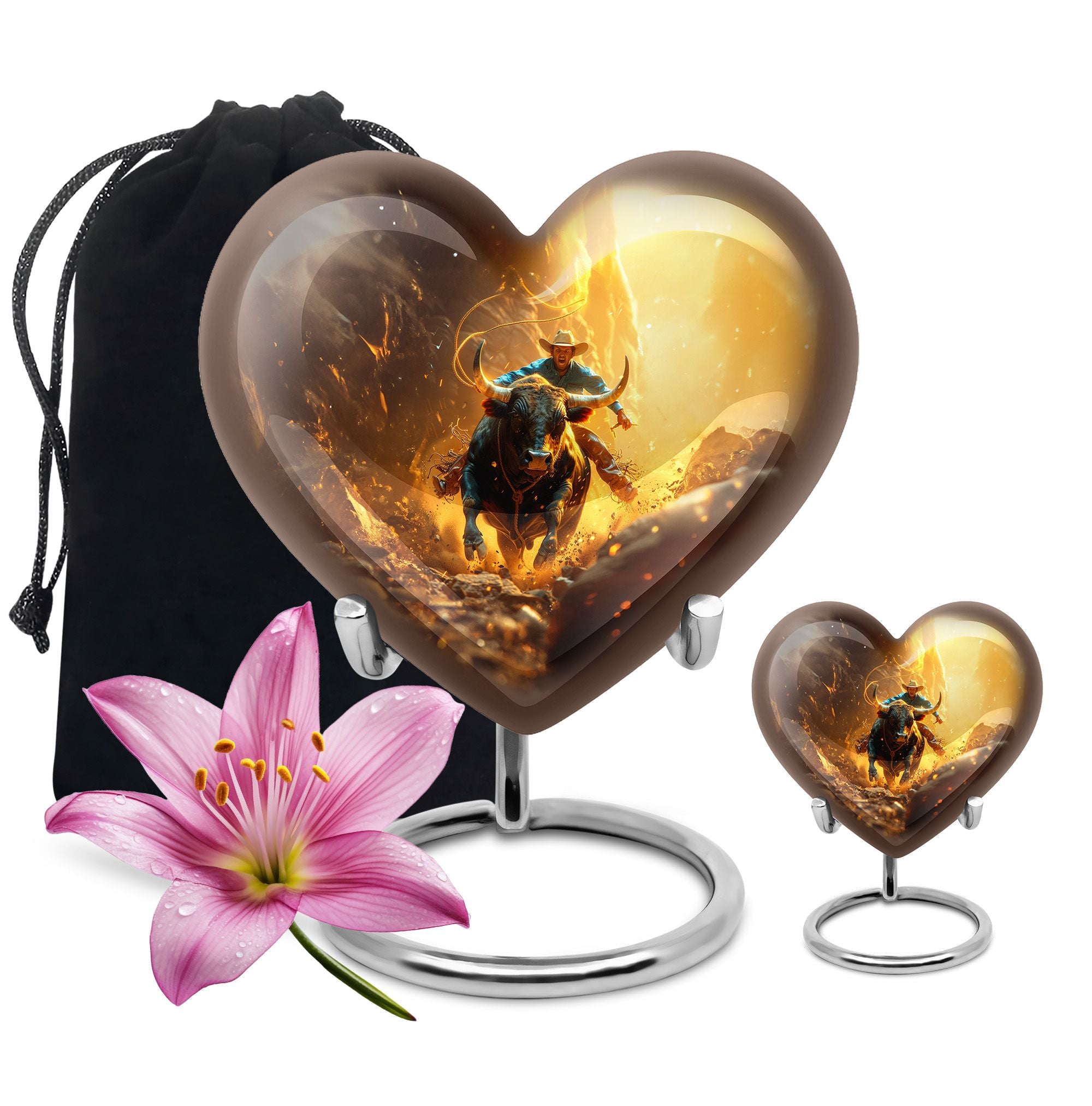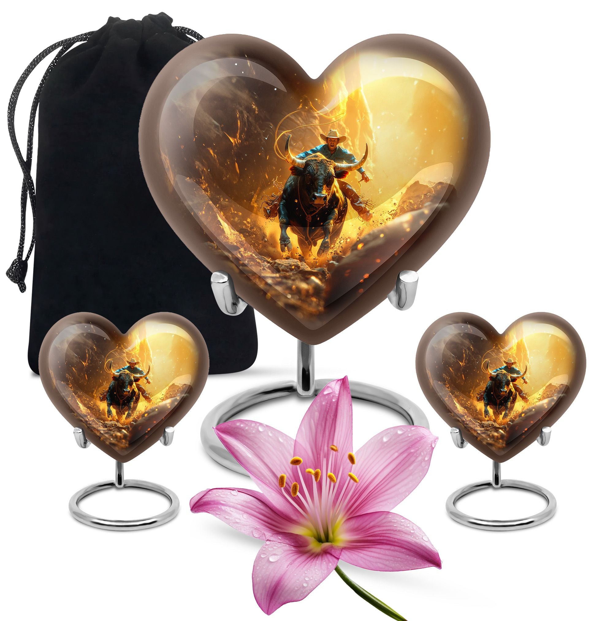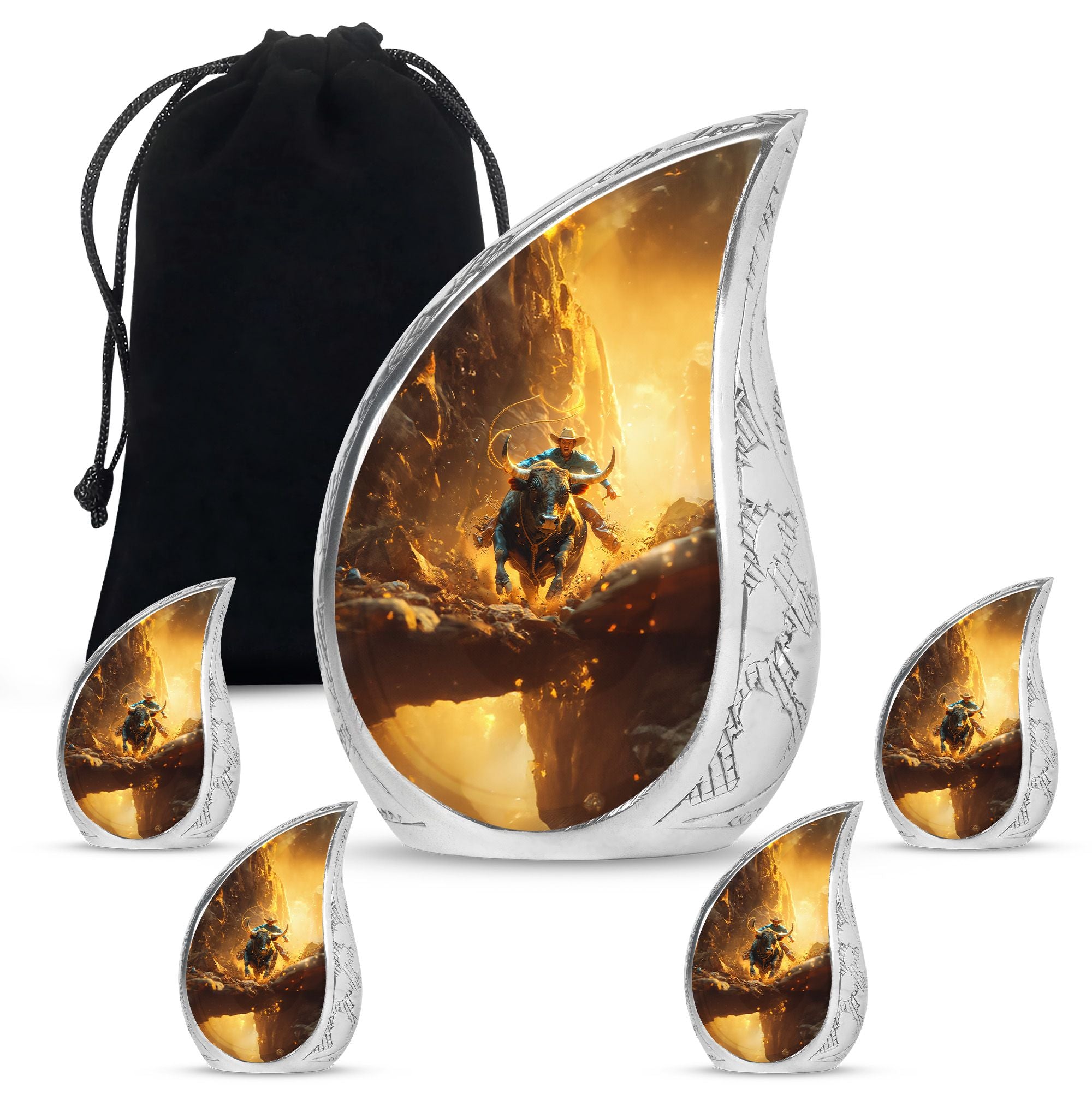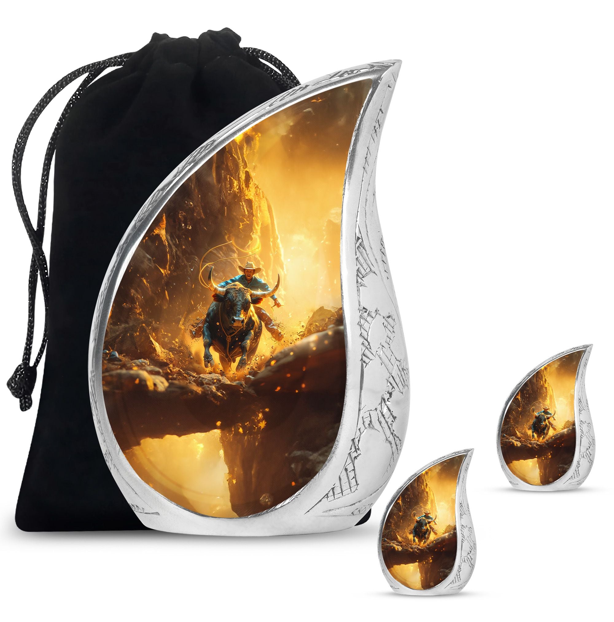 The Cowboy Urn for Adult Male Memorial Urns – Bull Rider Cremation Urn for Ashes is a powerful tribute to strength, adventure, and a life lived with courage. Designed with a bold bull rider motif, this urn reflects the fearless spirit of the cowboy, making it a meaningful choice for those who embraced freedom, resilience, and the open range.