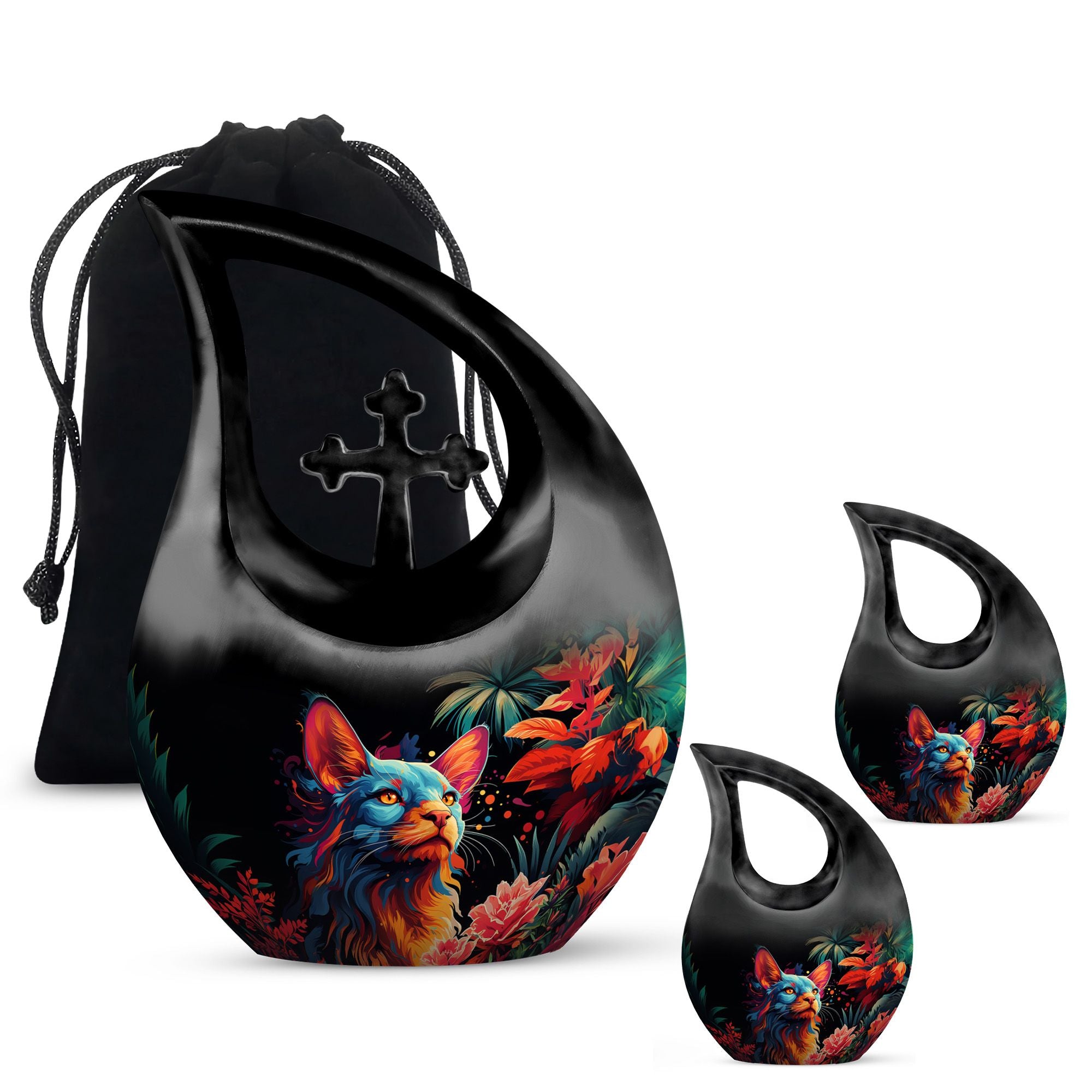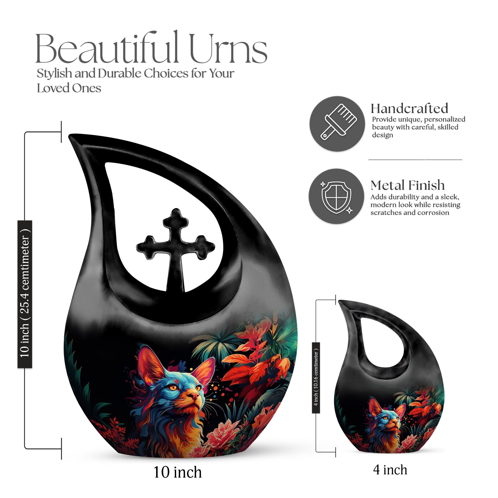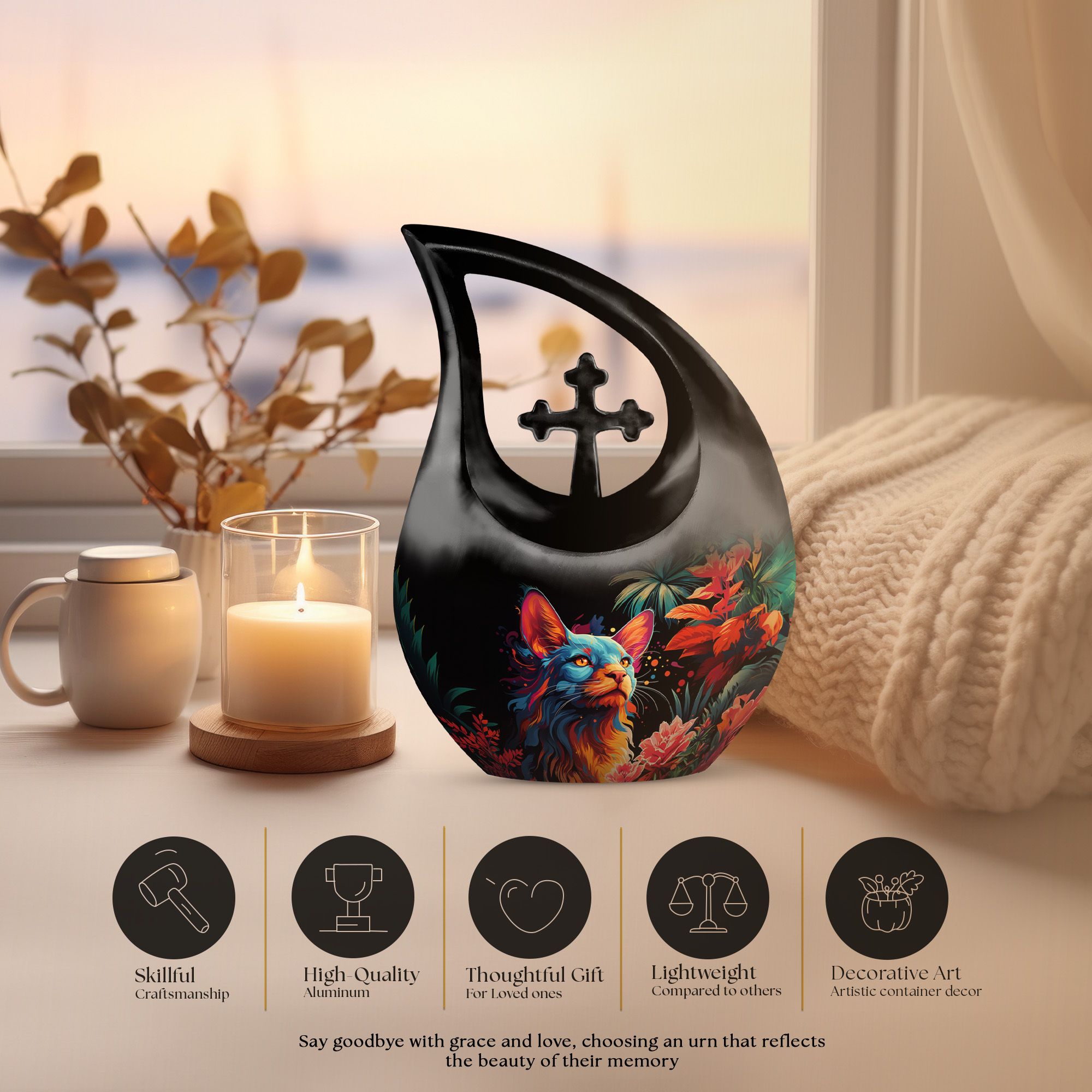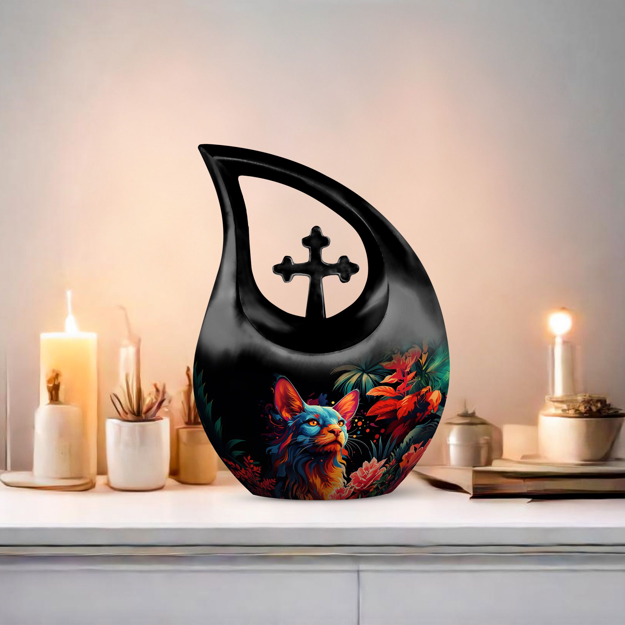 Honor the joyful spirit of your furry friend with this Colorful Artistic Cat Cremation Urn, a touching way to cherish their memory forever. Designed for pet lovers who seek comfort in beauty, this piece offers a heartwarming balance of art and remembrance. Whether displayed at home or in a memorial space, this pet urn for ashes symbolizes love, companionship, and everlasting connection.