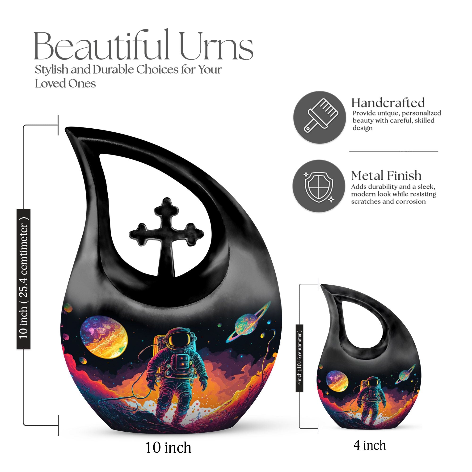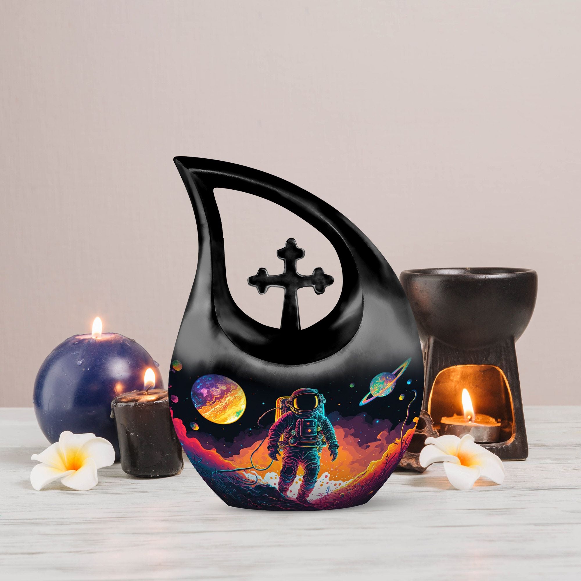 Honor a loved one whose spirit shined brightly with our Colorful Astronaut Cremation Urn for Human Ashes. Thoughtfully designed to capture both warmth and wonder, this urn offers a heartfelt tribute for Mom, Dad, or any loved one who inspired those around them. Its radiant celestial colors and astronaut motif reflect the beauty of eternal love — a meaningful choice among large urns for human ashes adult female and large urn for ashes adult male memorials.