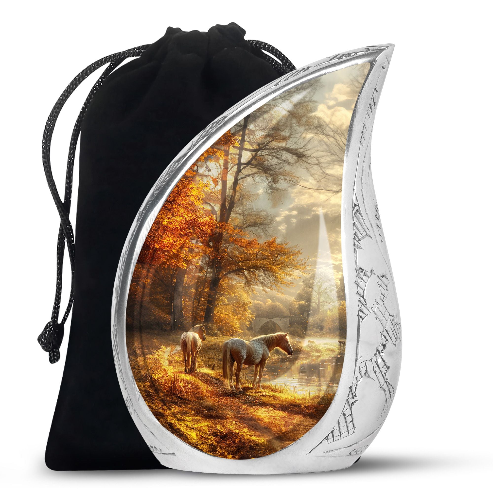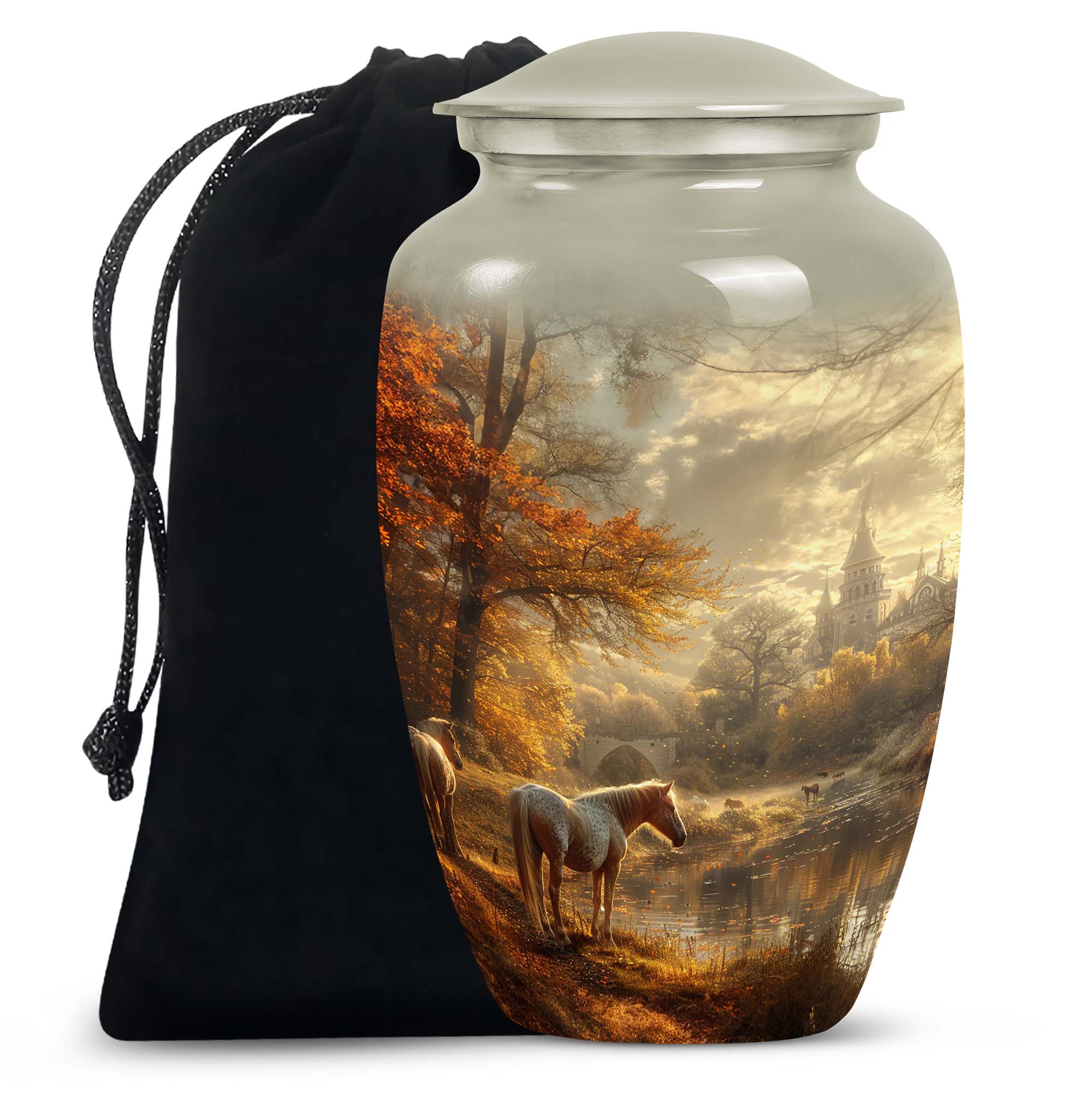 Cherish the memory of your loved ones with the Horse Meadow Cremation Urn for Human Ashes, a touching tribute designed to celebrate lives filled with love, courage, and serenity. Inspired by the peaceful beauty of horses in a meadow, this urn evokes comfort and remembrance, making it a meaningful choice for families seeking a large urn for ashes adult male or a large urn for ashes for women.