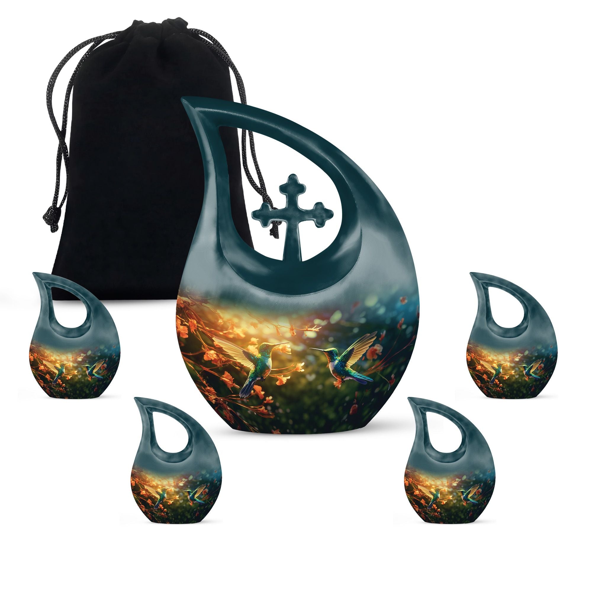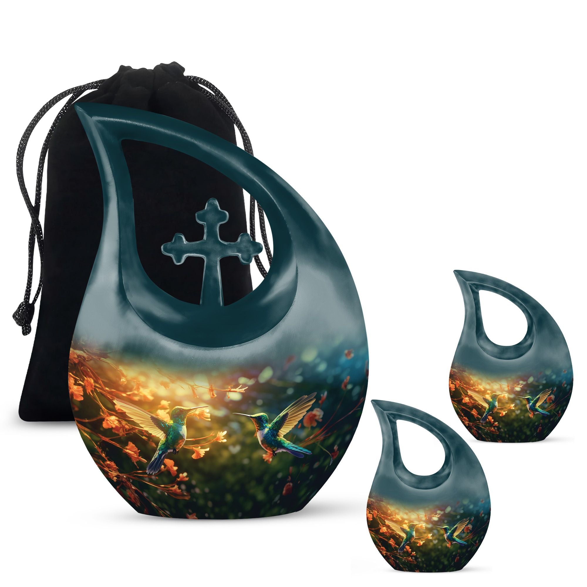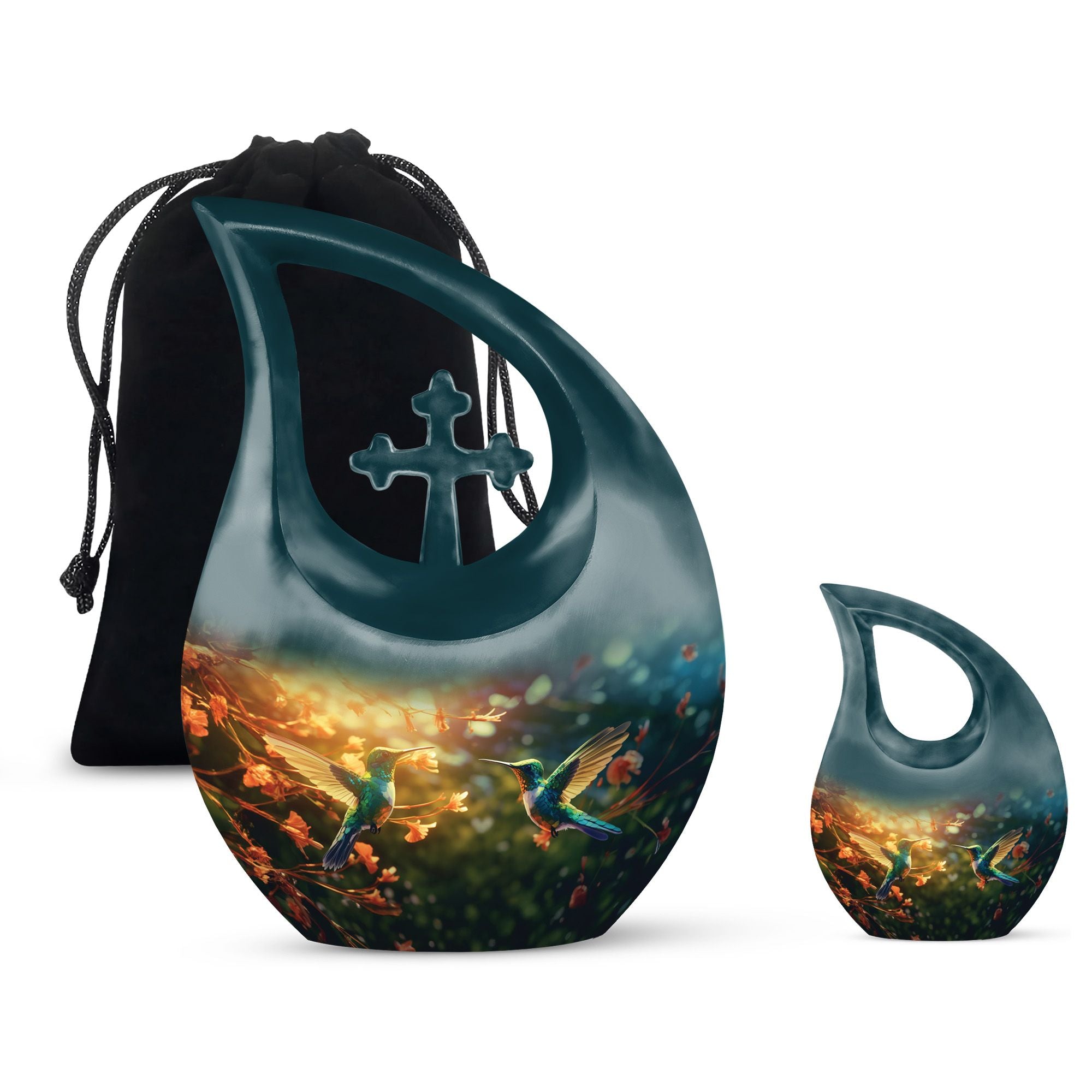 Celebrate a cherished life with the Teal Hummingbird Funeral Urn, a heartfelt memorial piece designed to honor the spirit of your loved one. This small urn for human ashes keepsake is a graceful symbol of love and tranquility, capturing the gentle essence of the hummingbird — a timeless reminder of life’s beauty and continuity. Perfect for families seeking small keepsake urns for ashes that reflect serenity and affection.