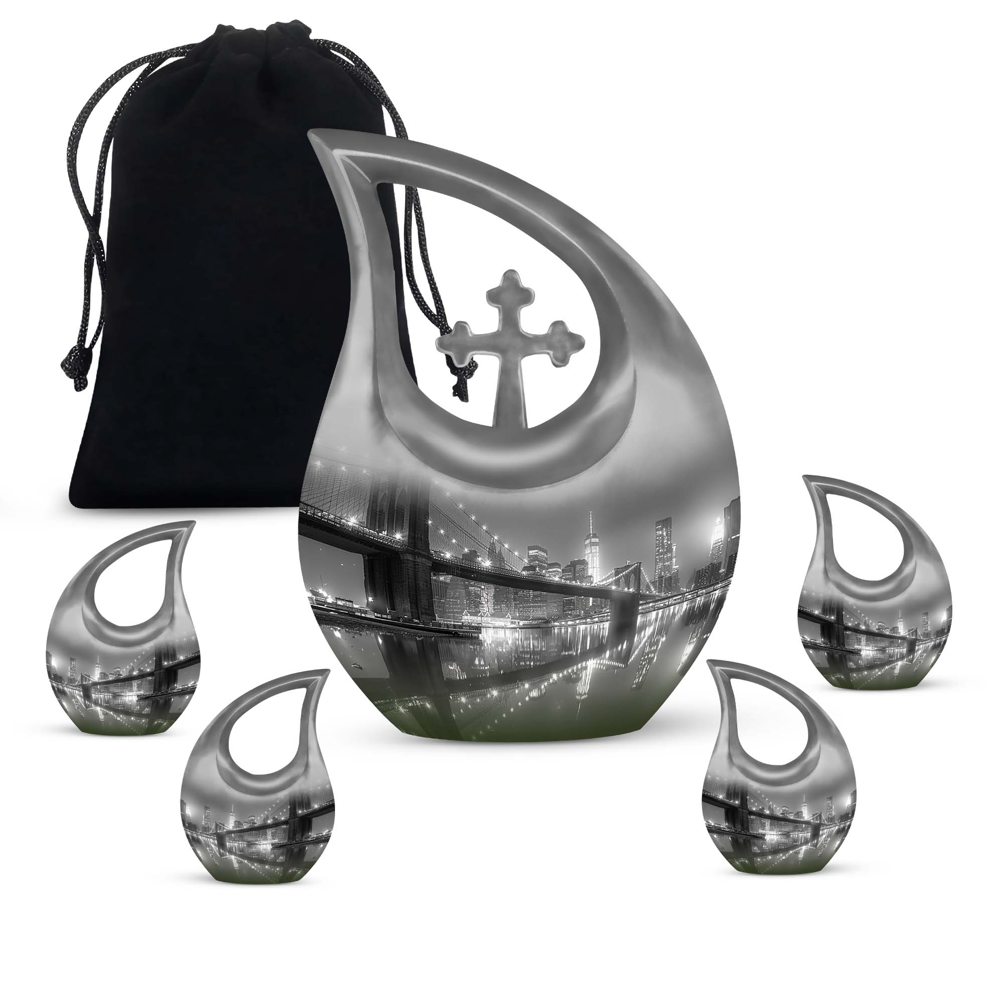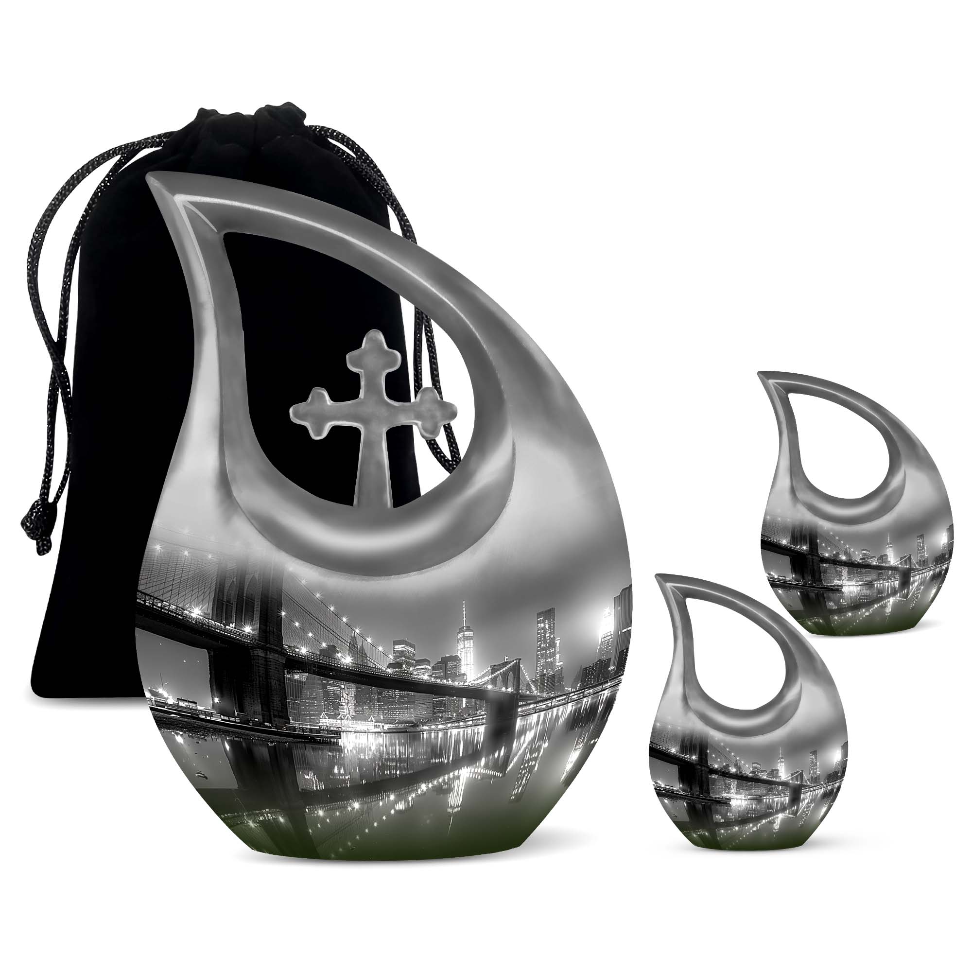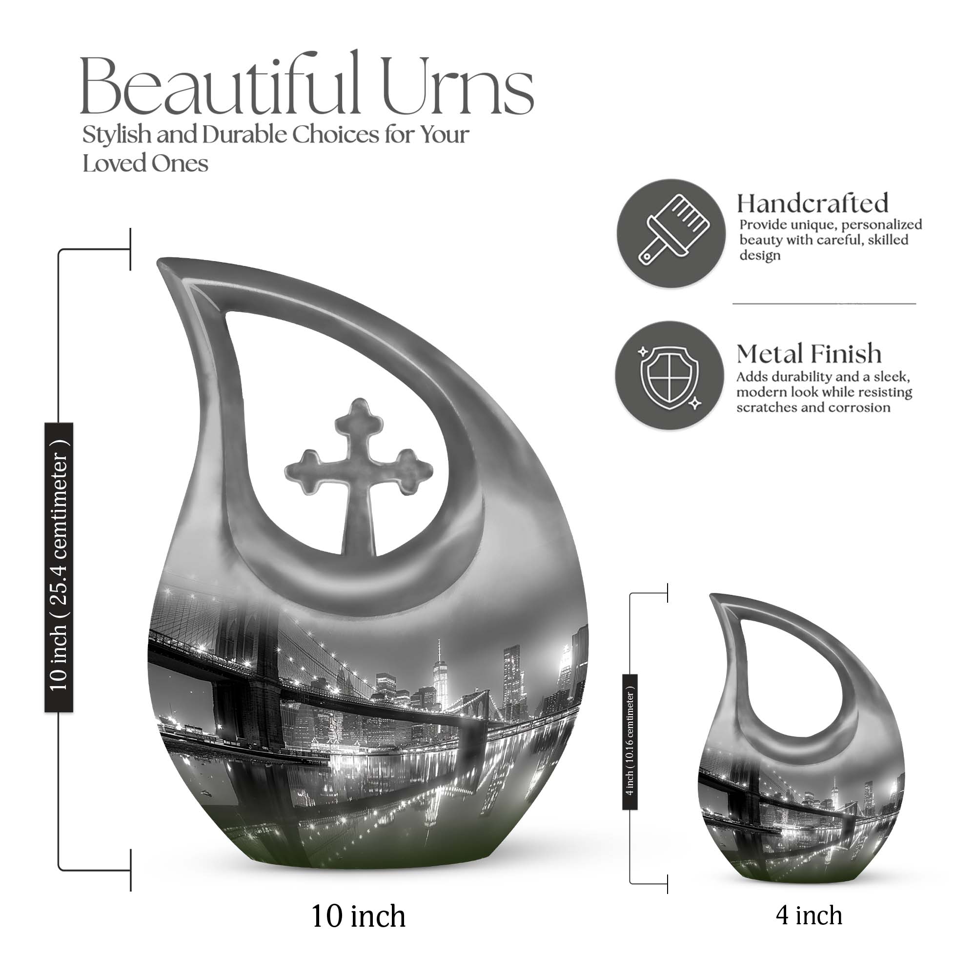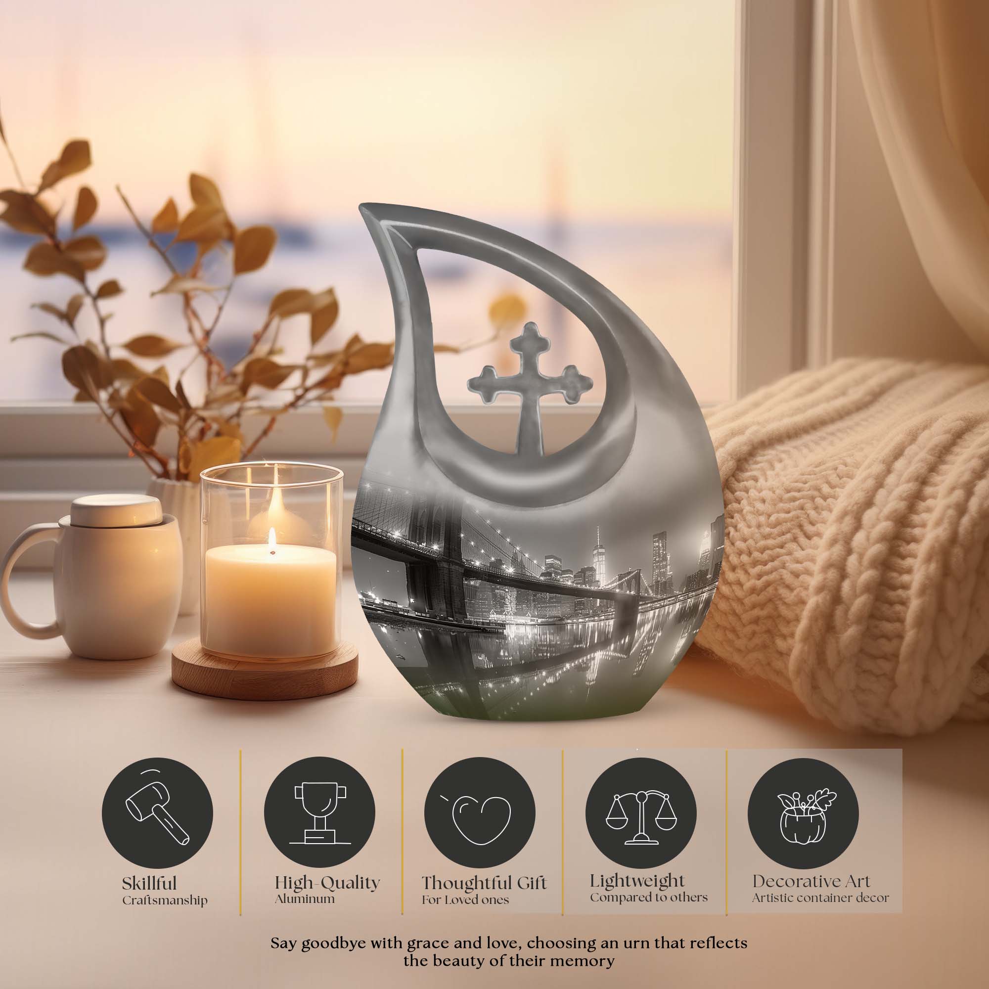Expertly crafted from durable aluminum, this large urn for adult ashes showcases premium artistry and long-lasting elegance. The serene Brooklyn Bridge design symbolizes unity and everlasting bonds, offering a meaningful tribute for families seeking human urns for ashes adult large or a large adult urn that blends beauty with resilience. Its smooth finish and timeless aesthetic make it a standout choice for both home memorials and ceremonial displays.