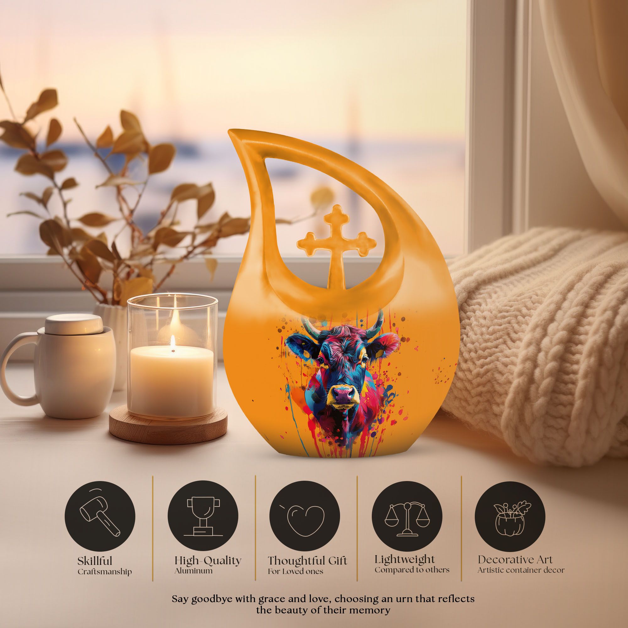 The Colorful Bull Urn is a striking tribute designed to honor the life and spirit of your loved one. Whether chosen as urns for adult female mom or ash urns for humans male, this piece radiates strength, love, and remembrance. Crafted to preserve precious memories, it symbolizes vitality and courage—making it a heartfelt choice for families seeking beauty and meaning in their memorial.