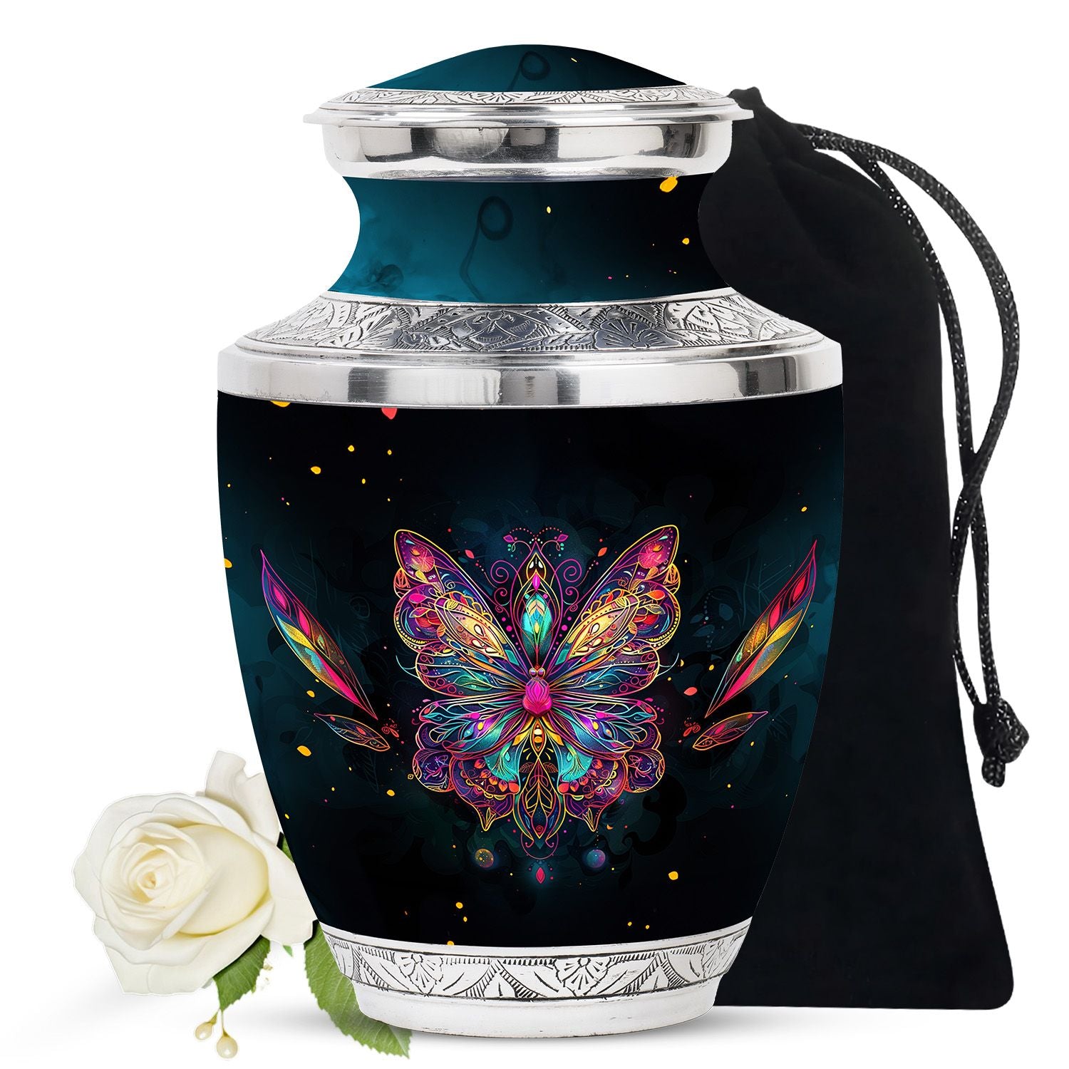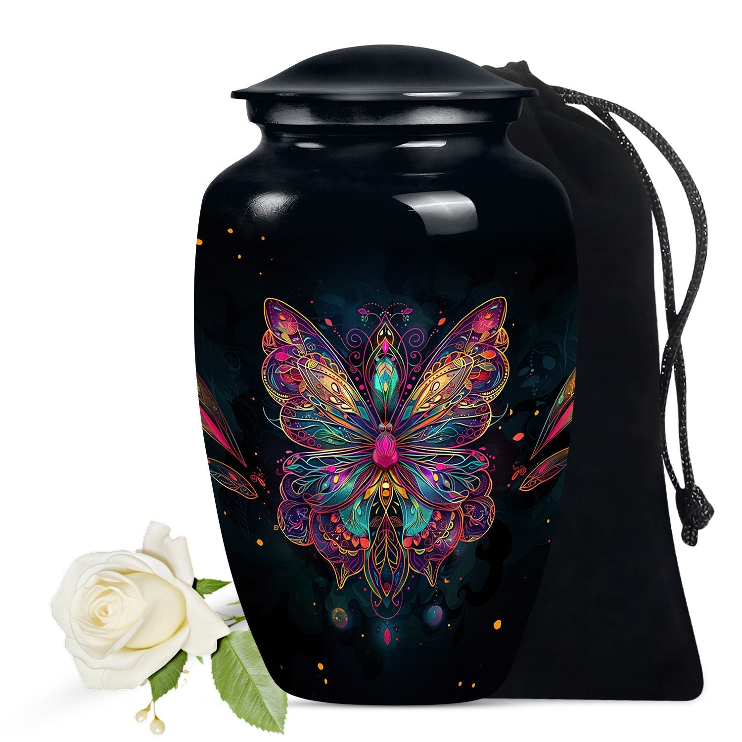 The butterfly motif adds a deeply symbolic touch—representing hope, renewal, and the eternal bond of love. This funeral ashes urn serves not only as a secure vessel but also as a heartfelt tribute to the life and legacy of someone cherished.