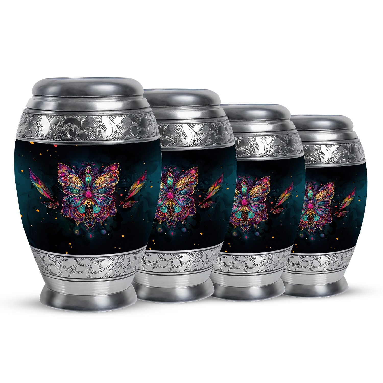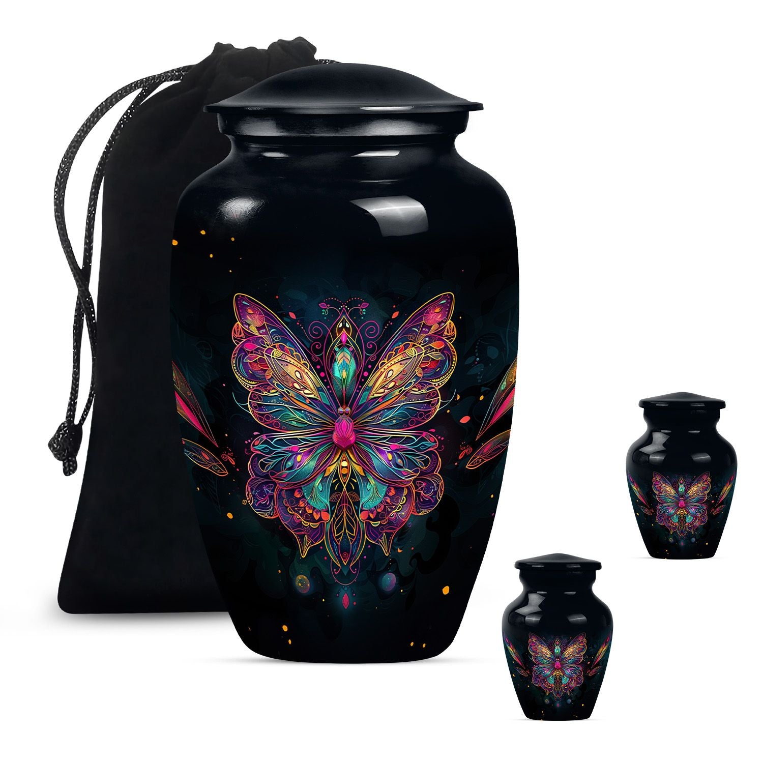 Crafted from high-quality aluminum, this urn combines strength with elegance. The delicate butterfly illustration, paired with its smooth finish, creates a timeless memorial suitable for home display, burial, or cremation service. Its secure screw-top lid ensures ashes remain protected, making it a trusted option for families in need of funeral urn ashes storage, small funeral urns, or urns for burial in ground. It is versatile enough to serve as funeral urns for human ashes small or as a full-size urn for loved ones.