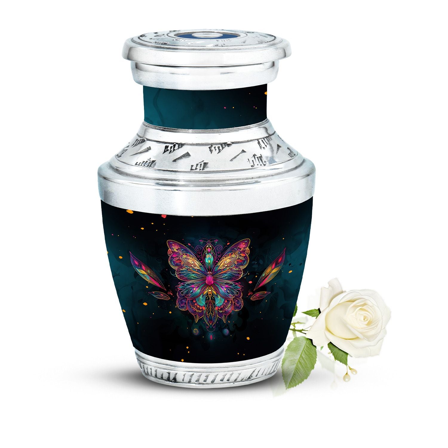 Crafted from durable aluminum, this urn showcases delicate butterfly artwork in an artistic design. Its craftsmanship and secure screw-top lid make it a reliable and beautiful choice for families seeking funeral urns for human ashes or urns for adult male memorials. With its timeless look, it serves as both a decorative memorial urn and a practical resting place. Families looking for urns for human ashes male or funeral urns for adult ashes will find it versatile and symbolic.