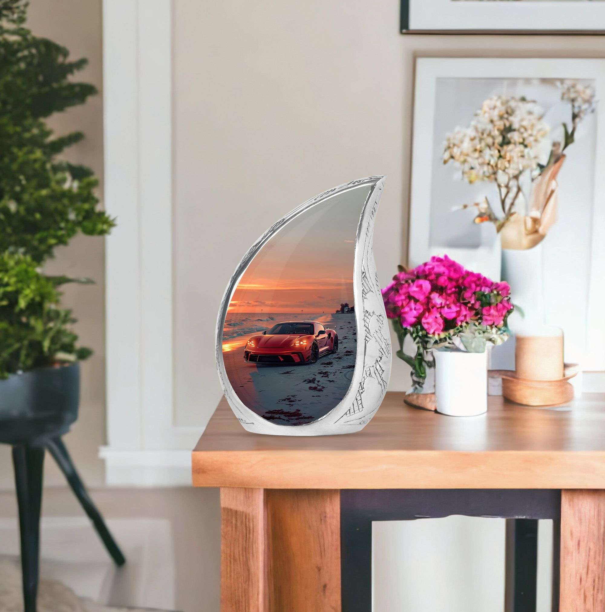 Celebrate the memory of a loved one with this sleek black Sports Car cremation urn, thoughtfully designed for adult ashes. Perfect as cremation urns for human ashes adult small, it offers a meaningful and dignified way to preserve and honor cherished memories.