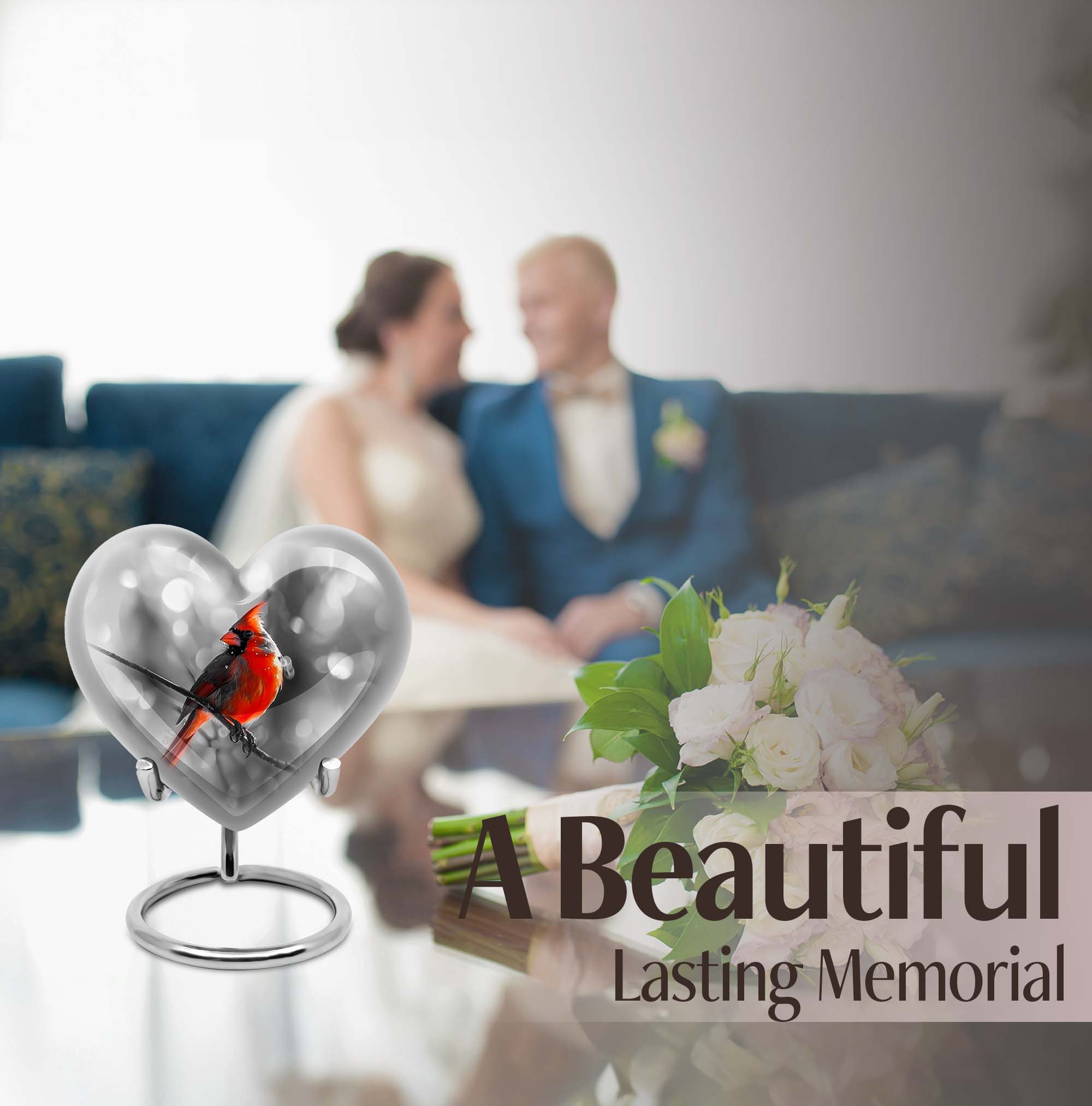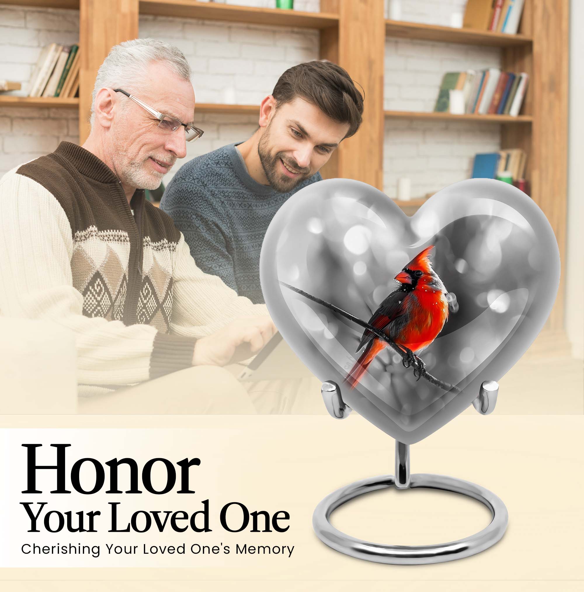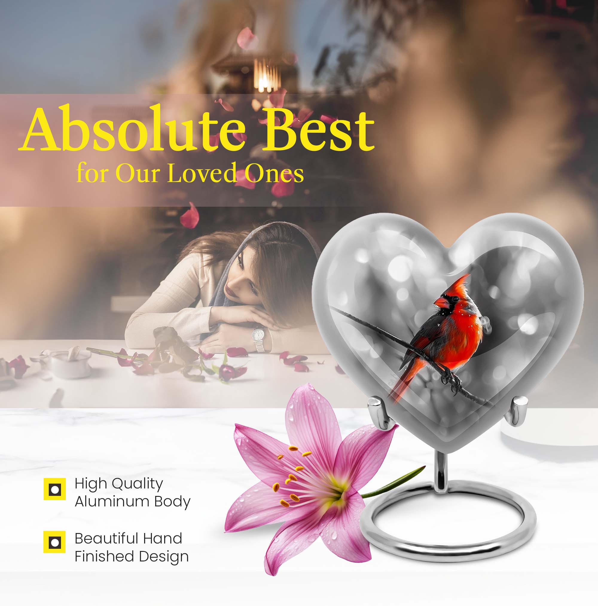 Introduce a touching tribute to your loved ones with our 10 Inch Cardinal bird Urn; a perfect blend of elegance and durability. This exclusive, large urn is more than just a resting place for ashes, with its meticulous Wolf howling theme, it reflects an everlastingly vivid memory. Crafted exquisitely from premium aluminum material, this cremation medium urn weighs a sturdy 3.3 pounds and stands 10 inches tall. A high capacity of 200 cubic inches ensures sufficient room for preserving the last physical traces. This memorial urn goes beyond the generic, offering a personal touch with the option for custom engravings of names. Protected and nestled in a rich velvet pouch, the urn guarantees an ideal containment for ashes. Upgrade your memorial ceremony supplies with this artistically impressive urn, ideal for burial or adult ashes. Capture the essence of departed loved ones with our specially tailored selection of exquisite large urns for adult human ashes and companion cremation urns.