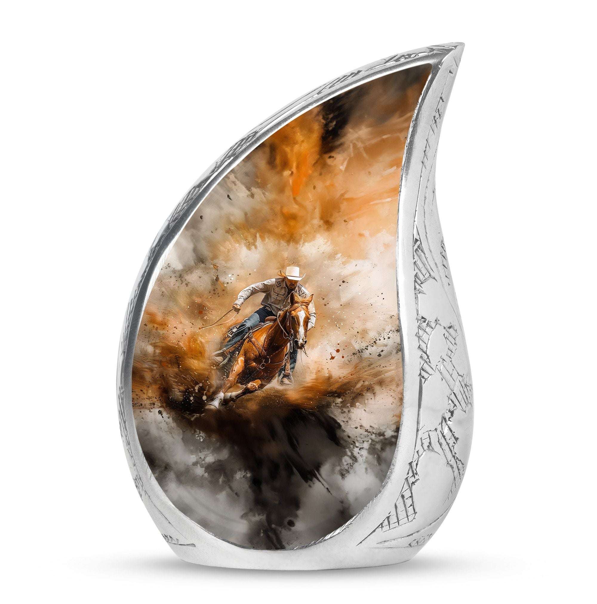 The Cowboy keepsake urn represents courage and everlasting love. More than a vessel, it is a touching reminder that while loved ones may be gone, their spirit remains forever close.