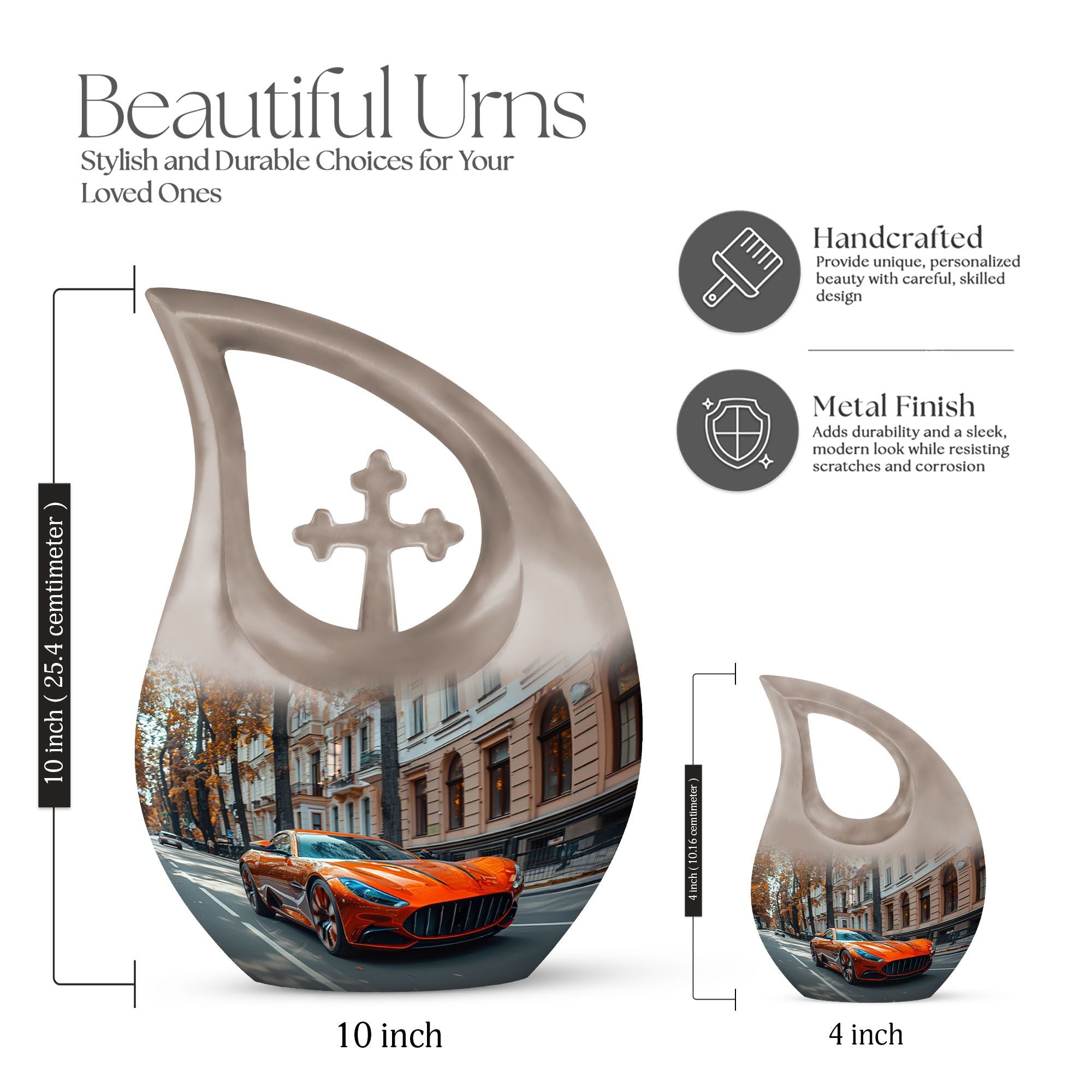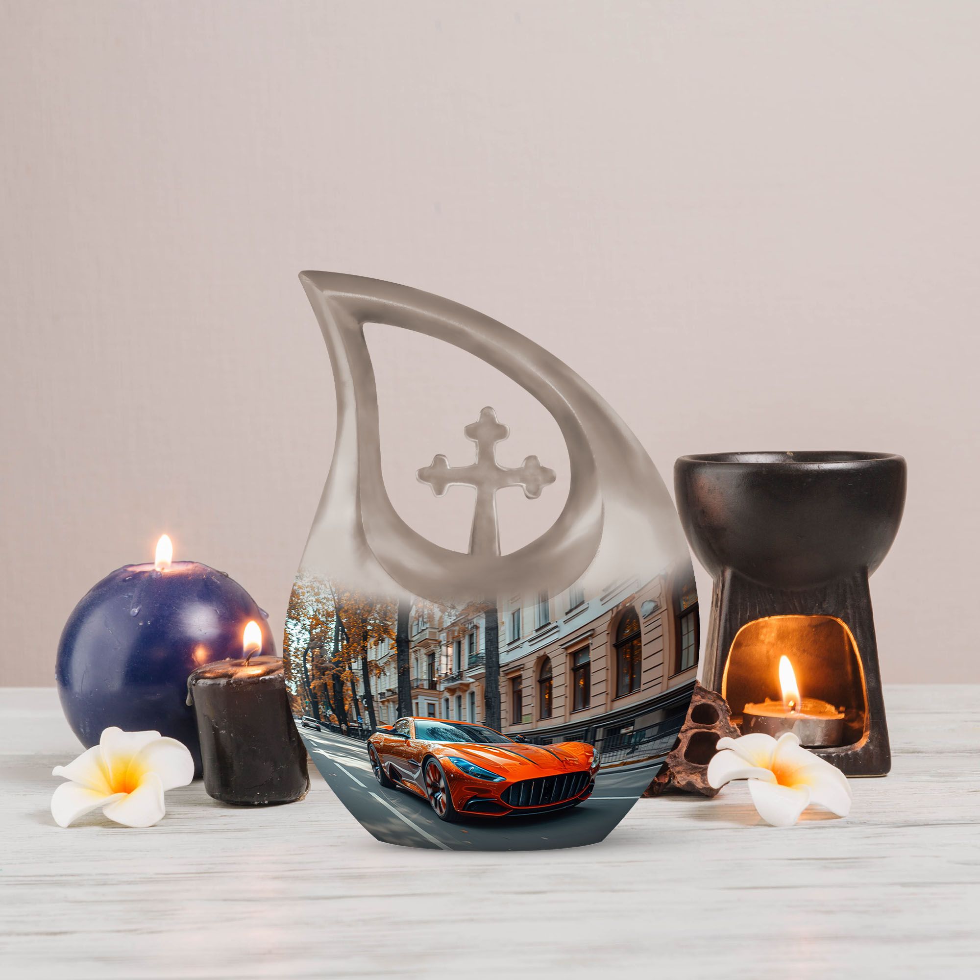 Meticulously made from high-quality aluminum, this large human ashes urn combines durability with artistic appeal. The sleek car-inspired design embodies both power and grace, symbolizing freedom and a life lived to the fullest. Each detail is crafted by skilled artisans to ensure a smooth finish and refined silhouette. This cremation urn large adult serves as both a beautiful memorial piece and a timeless work of art. Ideal for display in the home or for dignified burial, it offers both practicality and deep emotional value.