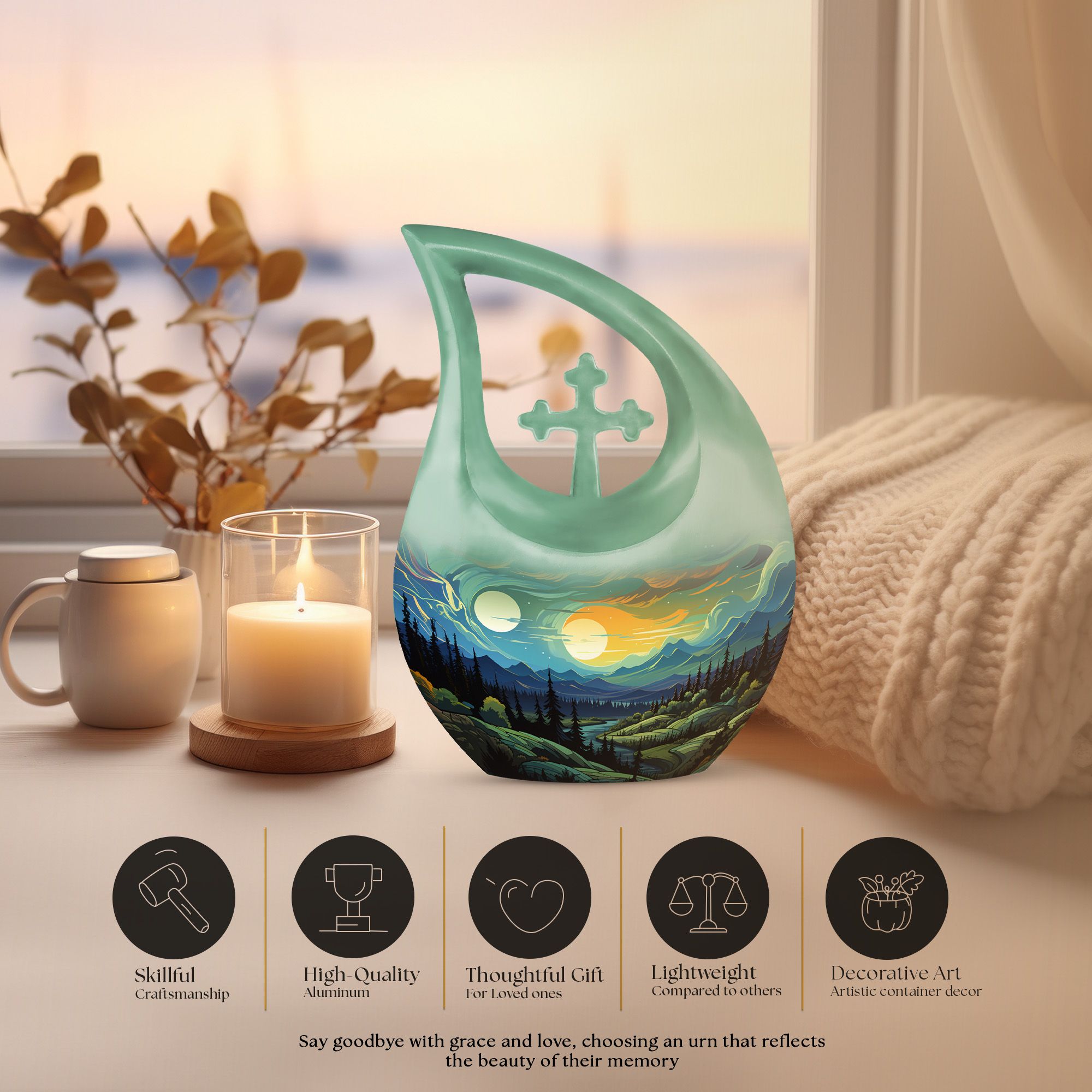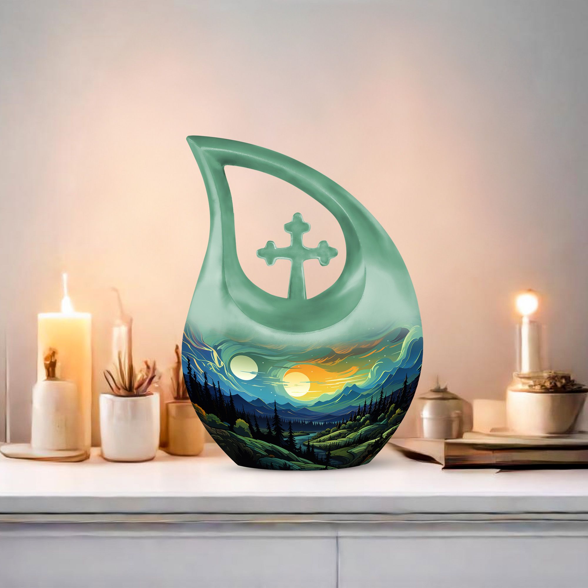 Celebrate the memory of a cherished woman with this exquisite Landscape Cremation Urn, designed to symbolize peace, love, and everlasting remembrance. Crafted to honor her journey, this elegant urn serves as a timeless tribute — perfect for those seeking funeral urns for women or adult urns for human ashes women. Its serene design evokes a sense of calm and dignity, offering comfort in moments of loss.