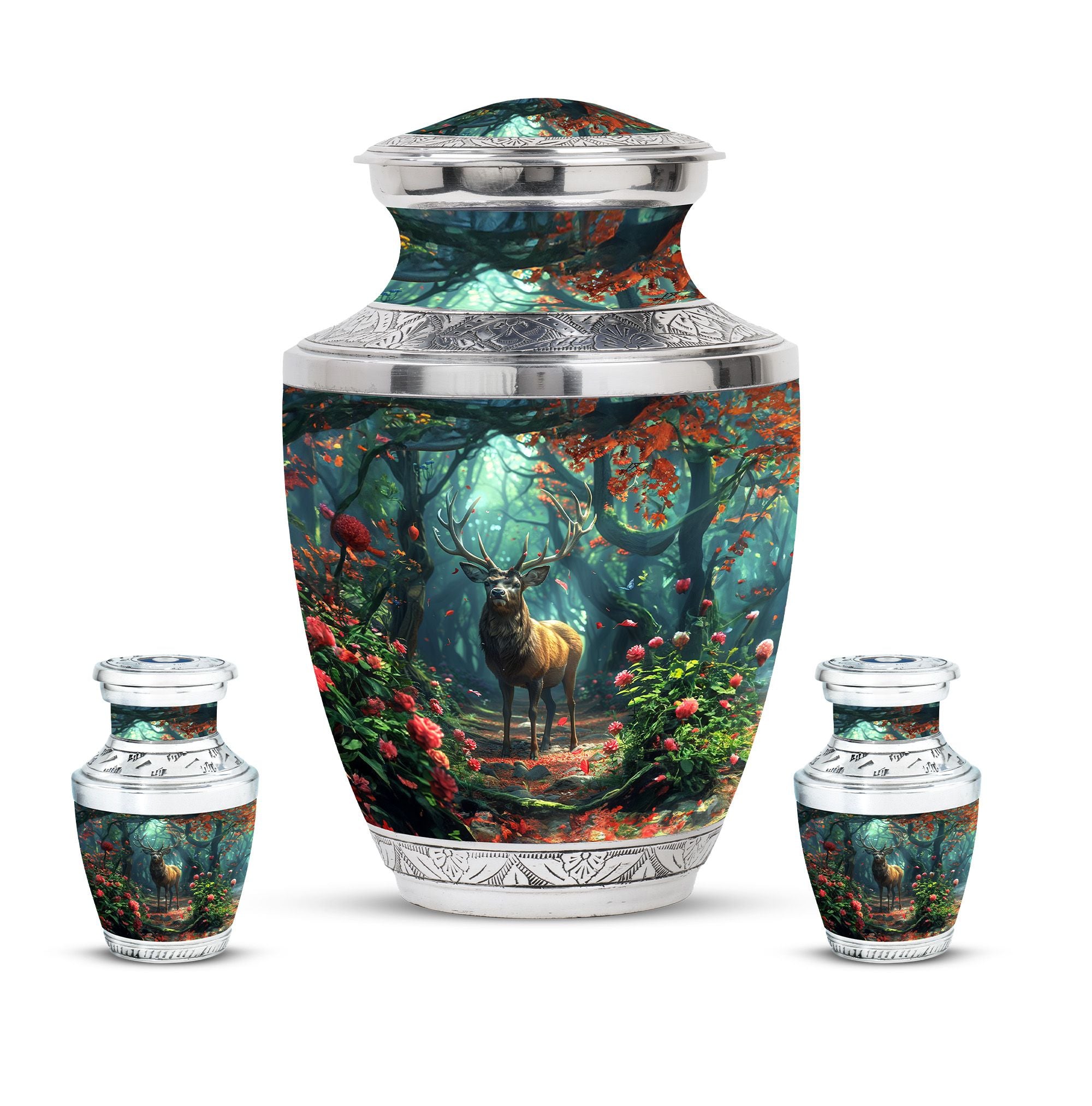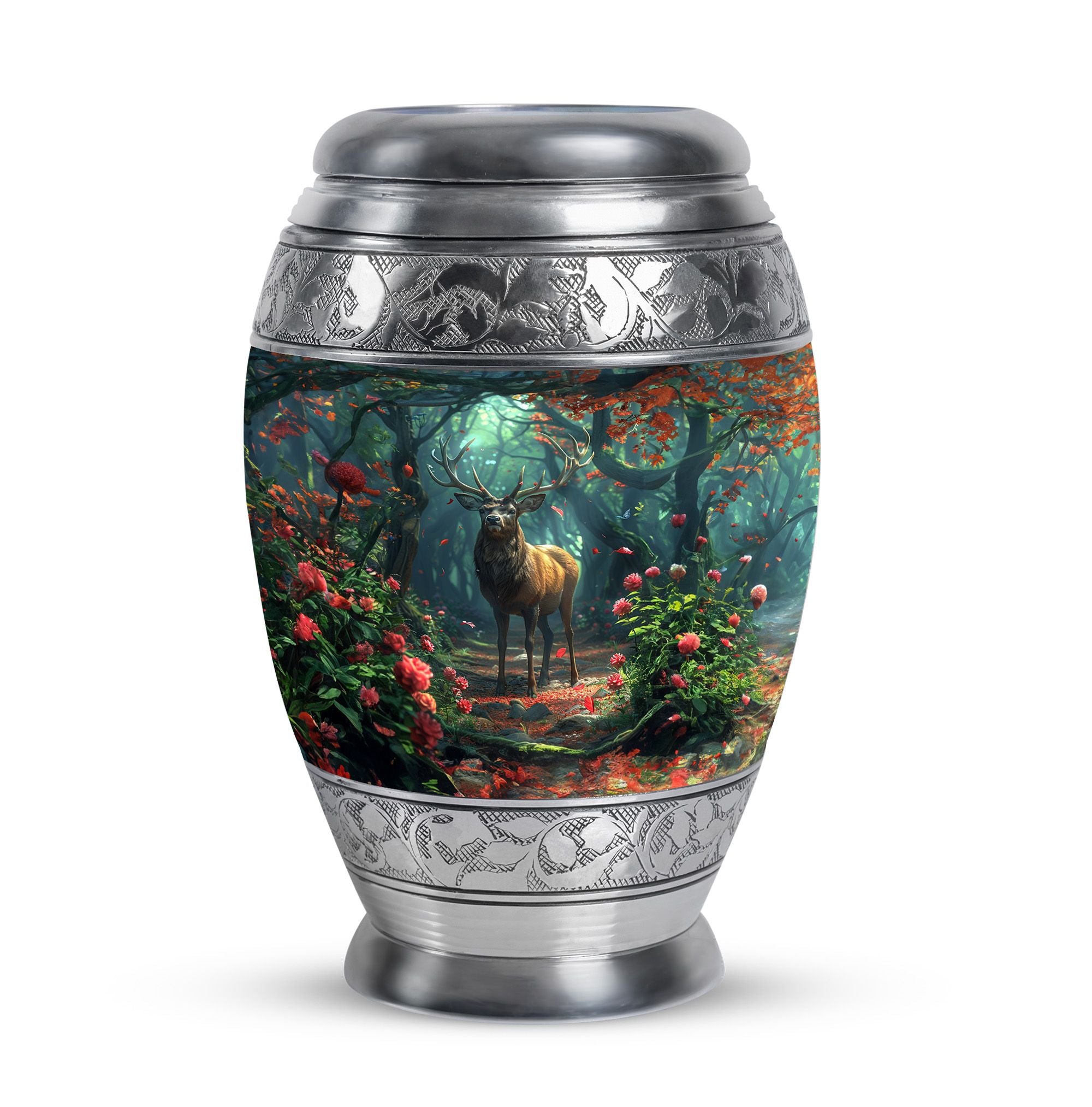 Expertly crafted from premium aluminum, this funeral adult urn features a noble elk motif symbolizing guidance, protection, and strength. Its secure screw-top lid ensures safe storage, while the elegant metallic finish adds timeless beauty to any memorial. Whether used as a large funeral urn ashes container or as small funeral urns in keepsake form, it offers durability and grace. Families looking for a funeral urn adult will appreciate its craftsmanship and symbolic value.