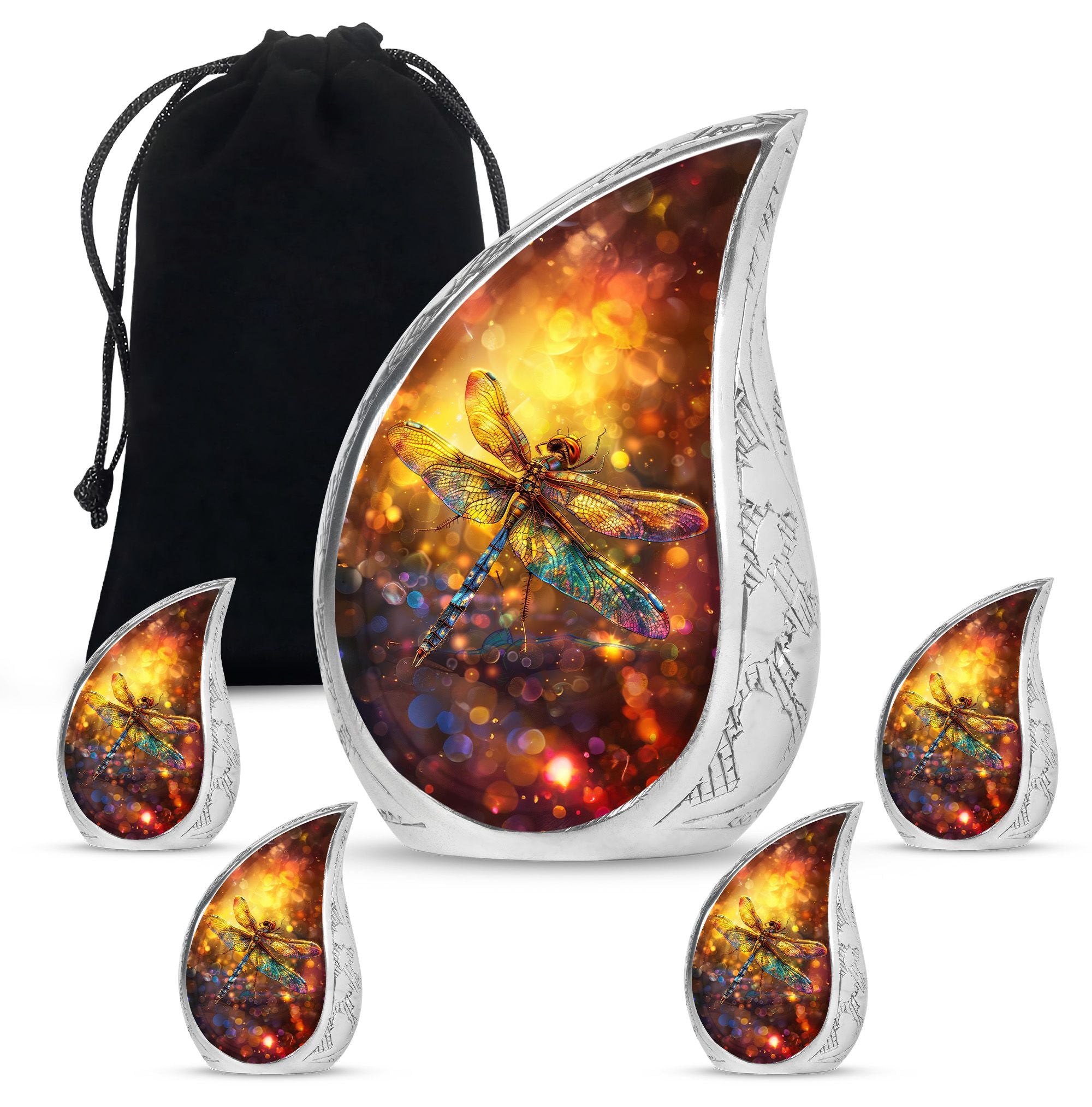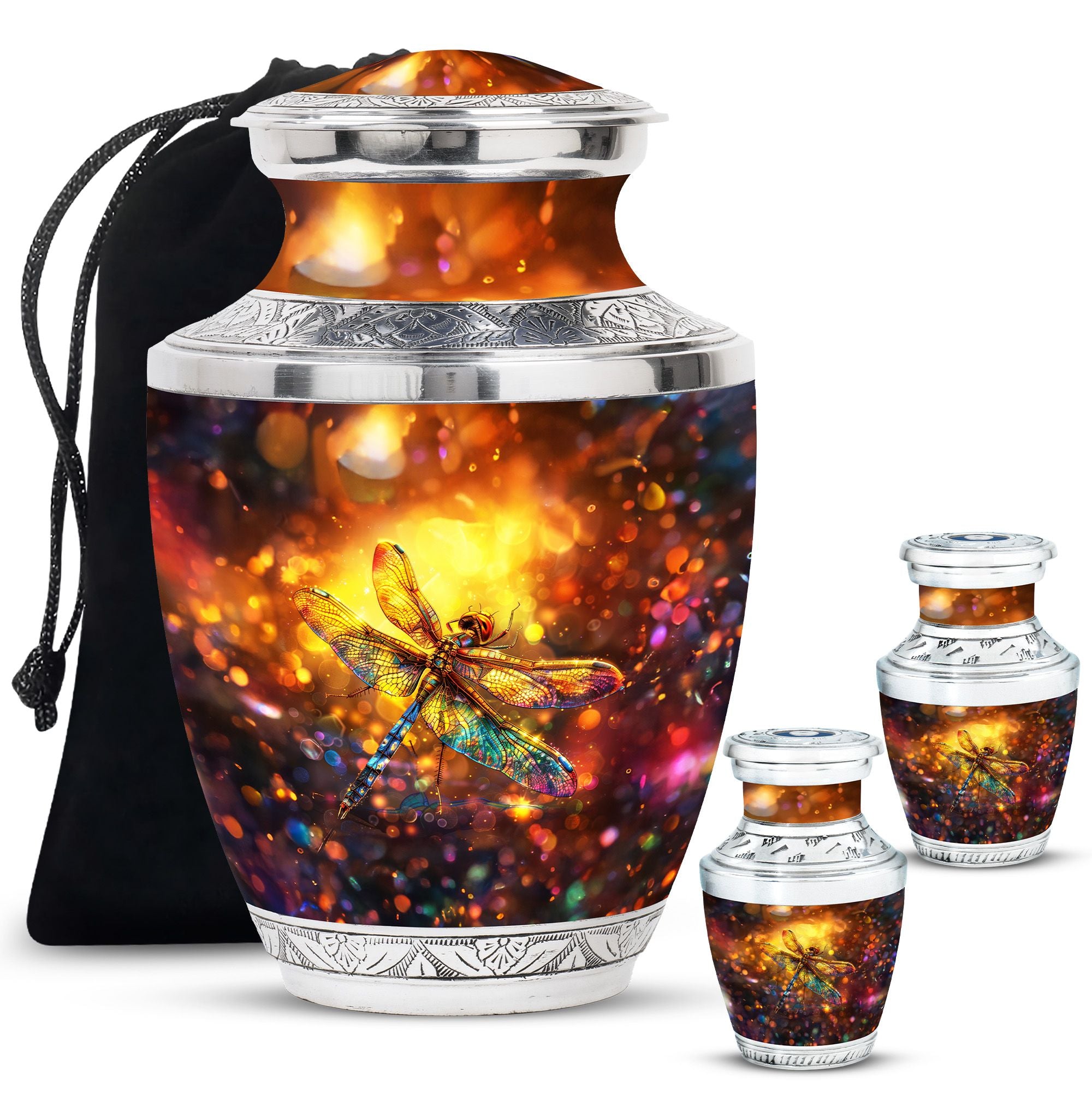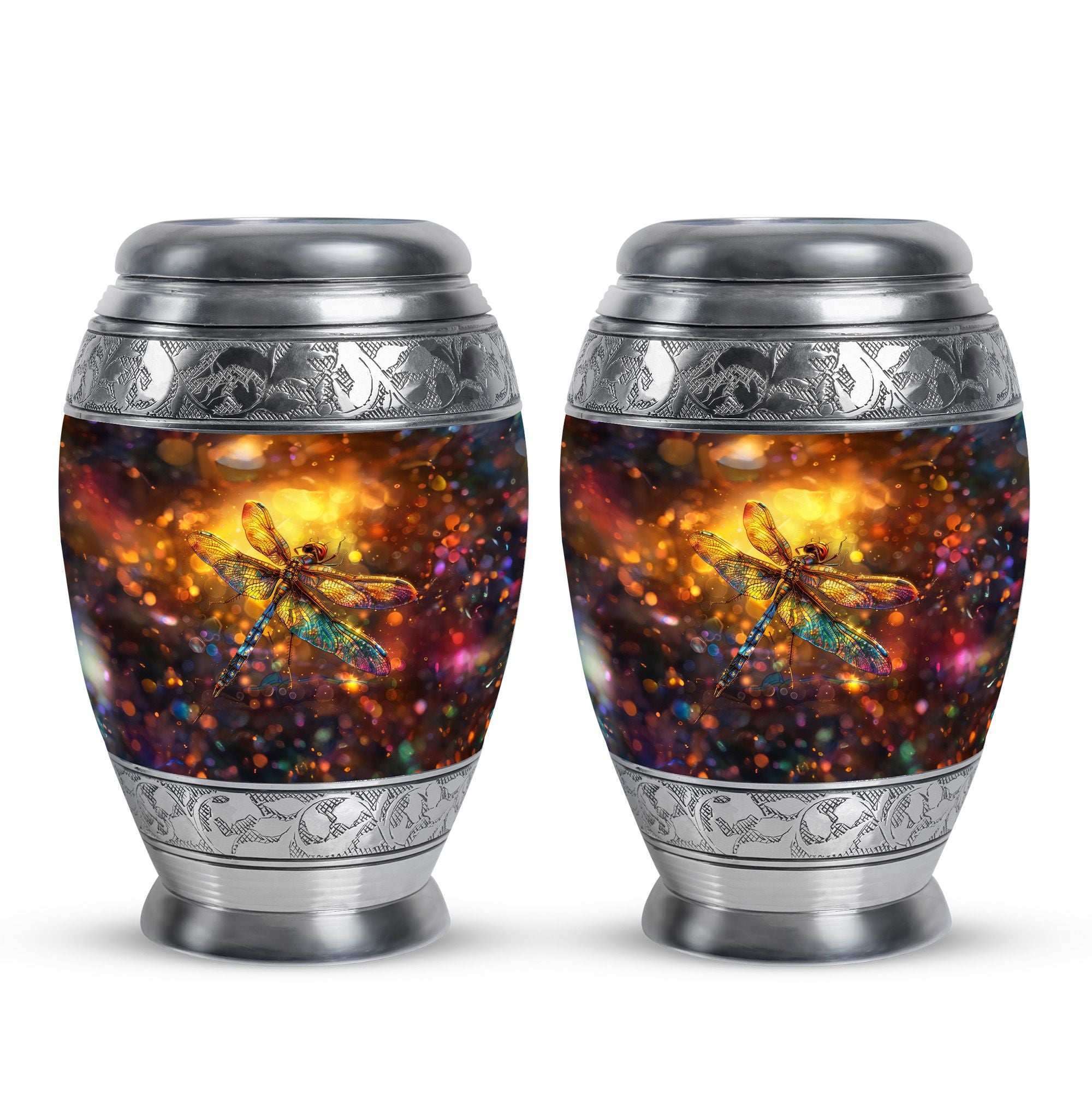 Crafted with premium detail, this cremation urn for adults features a graceful dragonfly design symbolizing transformation and eternal connection. Made from durable aluminum, it ensures lasting quality while its smooth finish enhances the beauty of your memorial display. Designed as one of our adult size cremation urns, it offers ample capacity while remaining timeless and elegant.