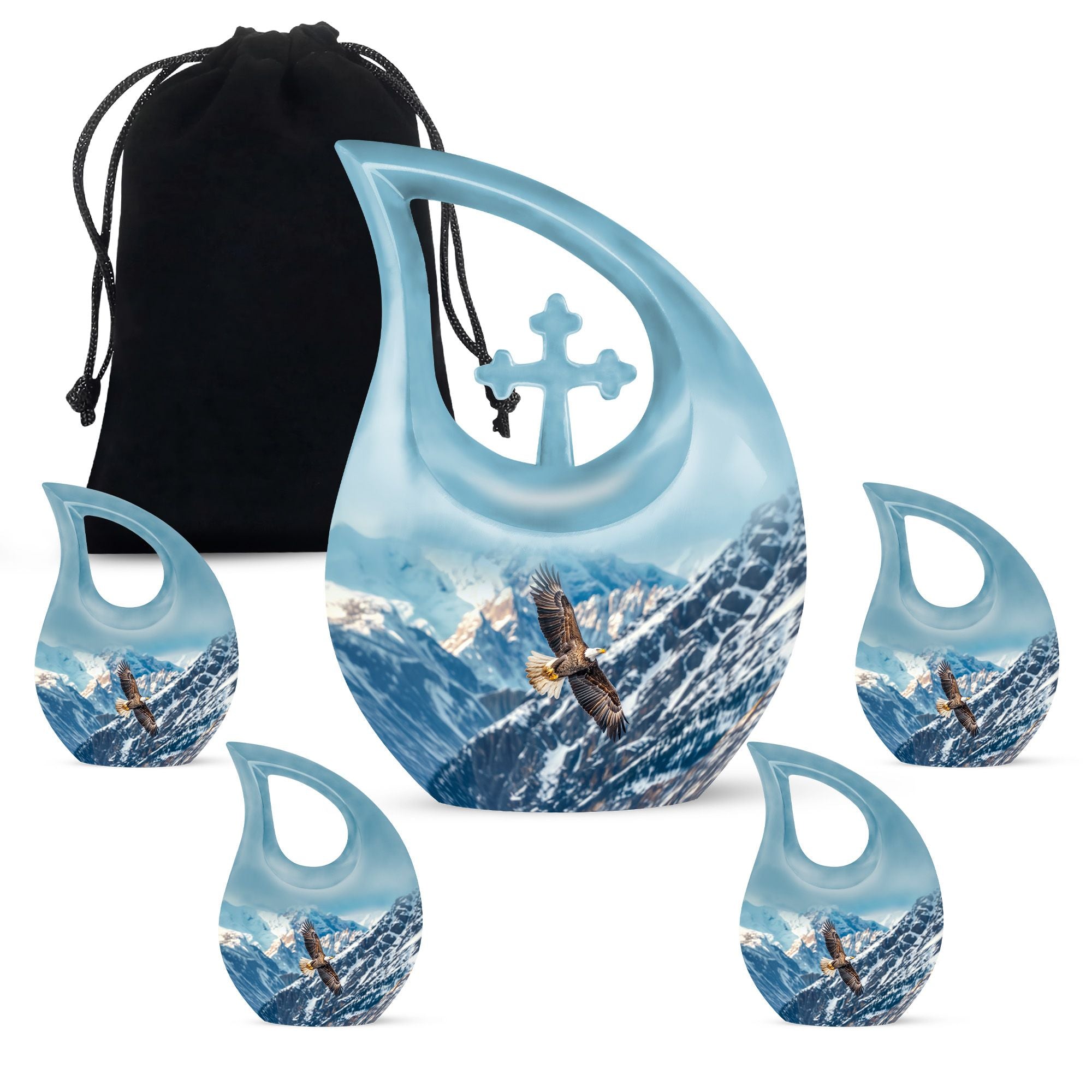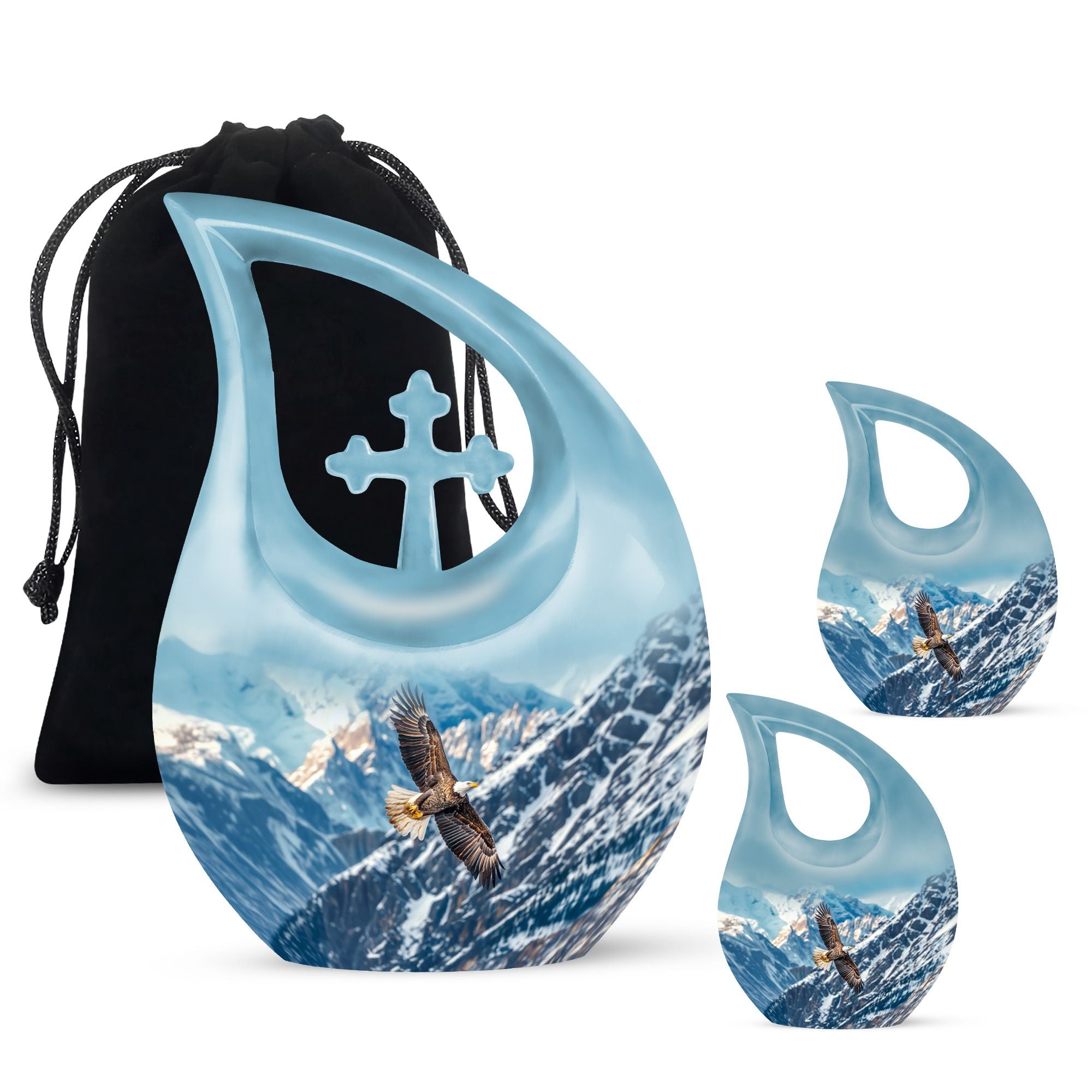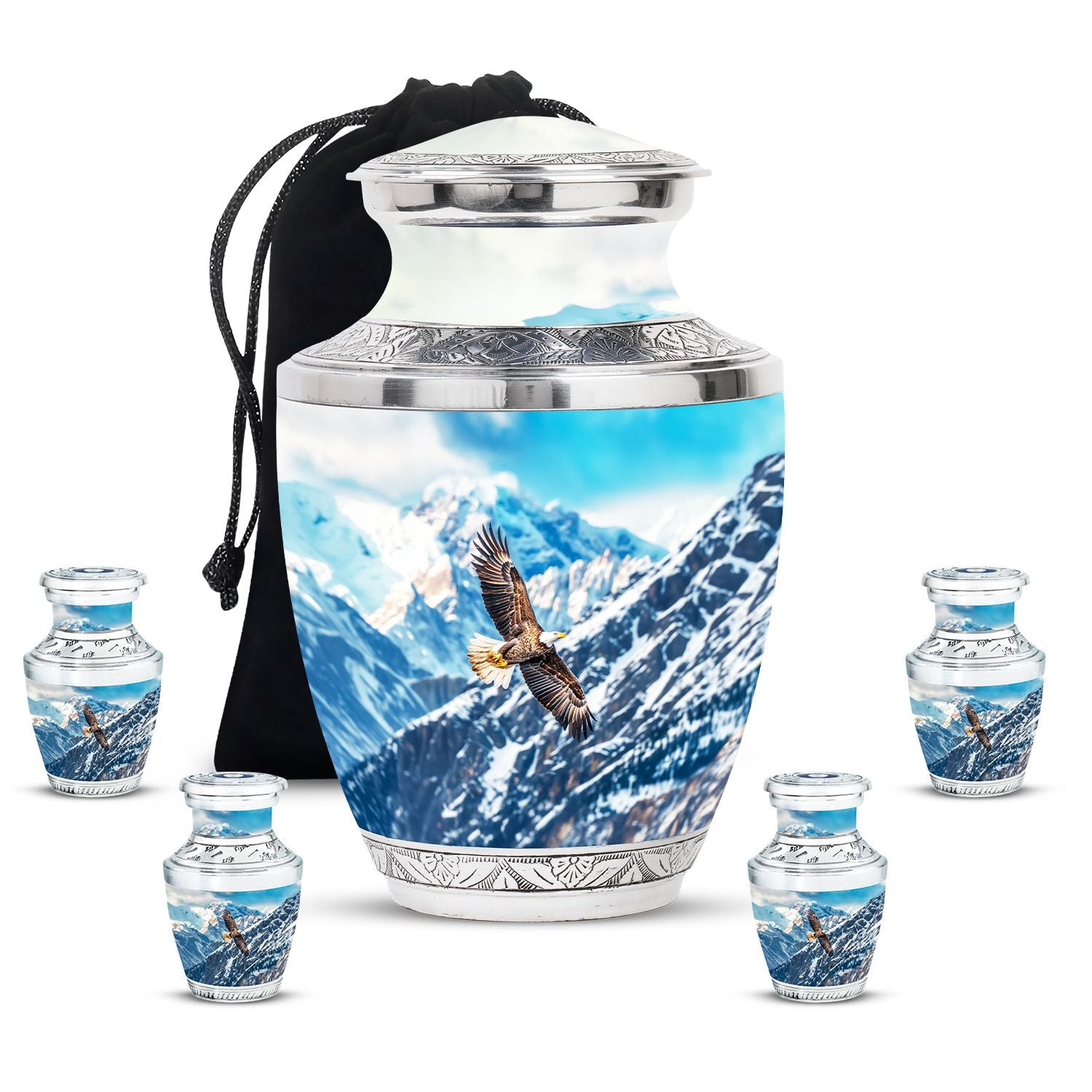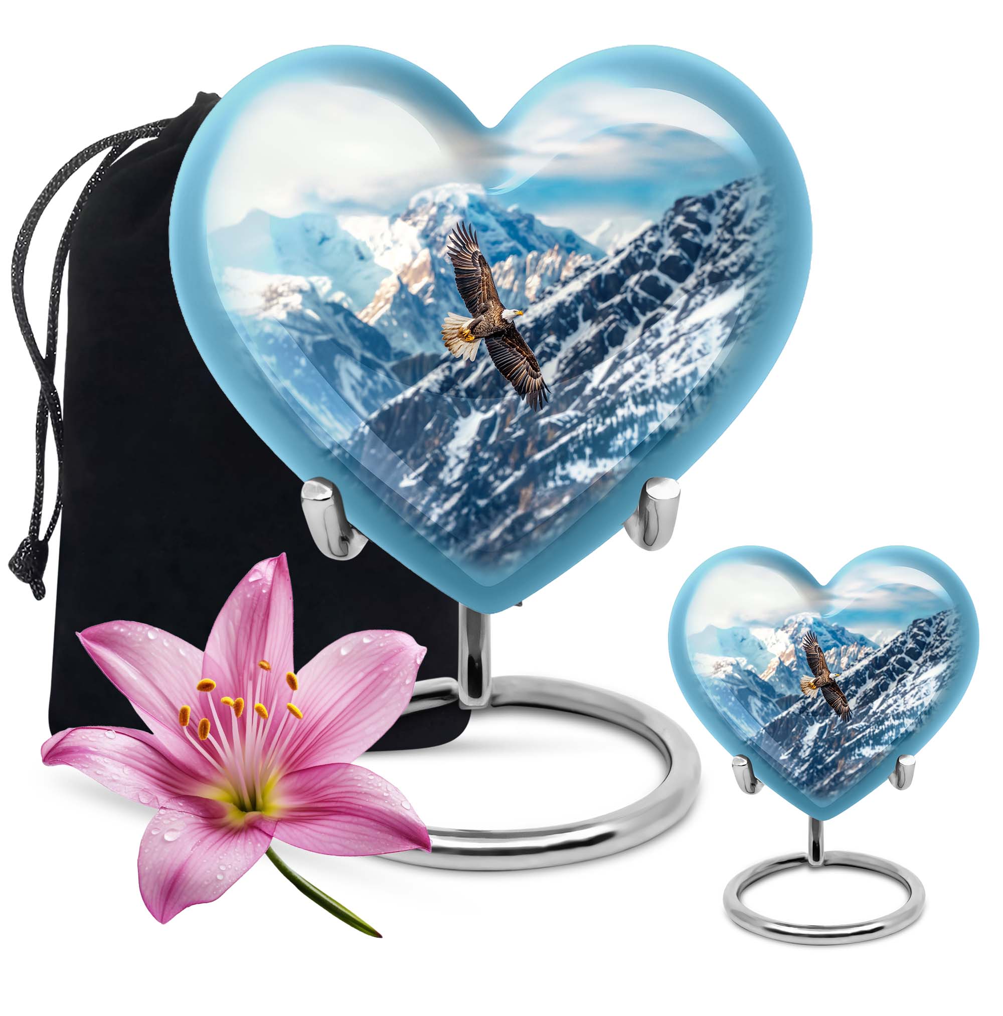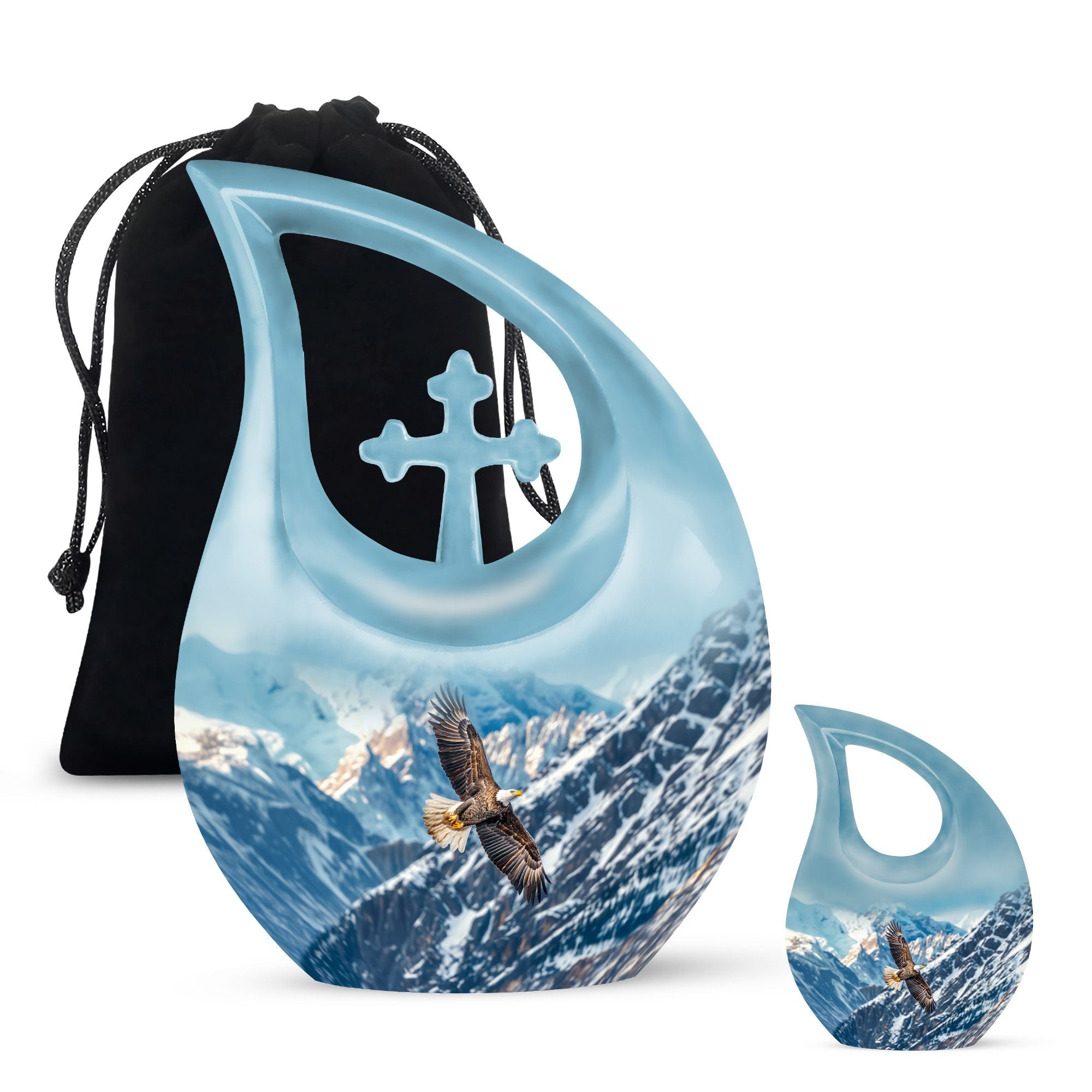 Expertly crafted from durable aluminum, this urn combines artistry with functionality. The soaring eagle design represents courage and peace, making it a versatile choice for families in search of urns for human ashes adult male burial or keepsake options. Its smooth finish and secure construction ensure both beauty and reliability, while the large capacity makes it ideal for urns for human ashes adult male or urns for adult female as well.