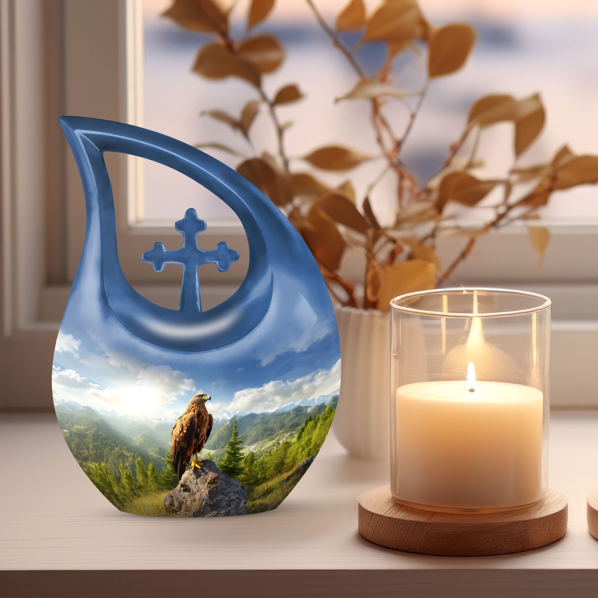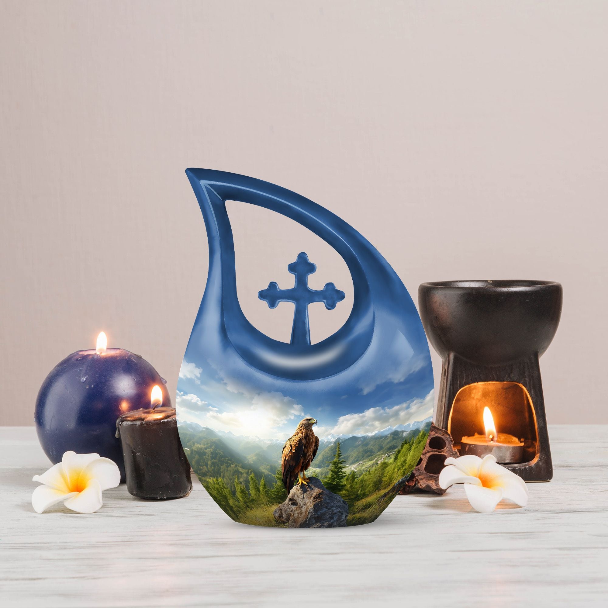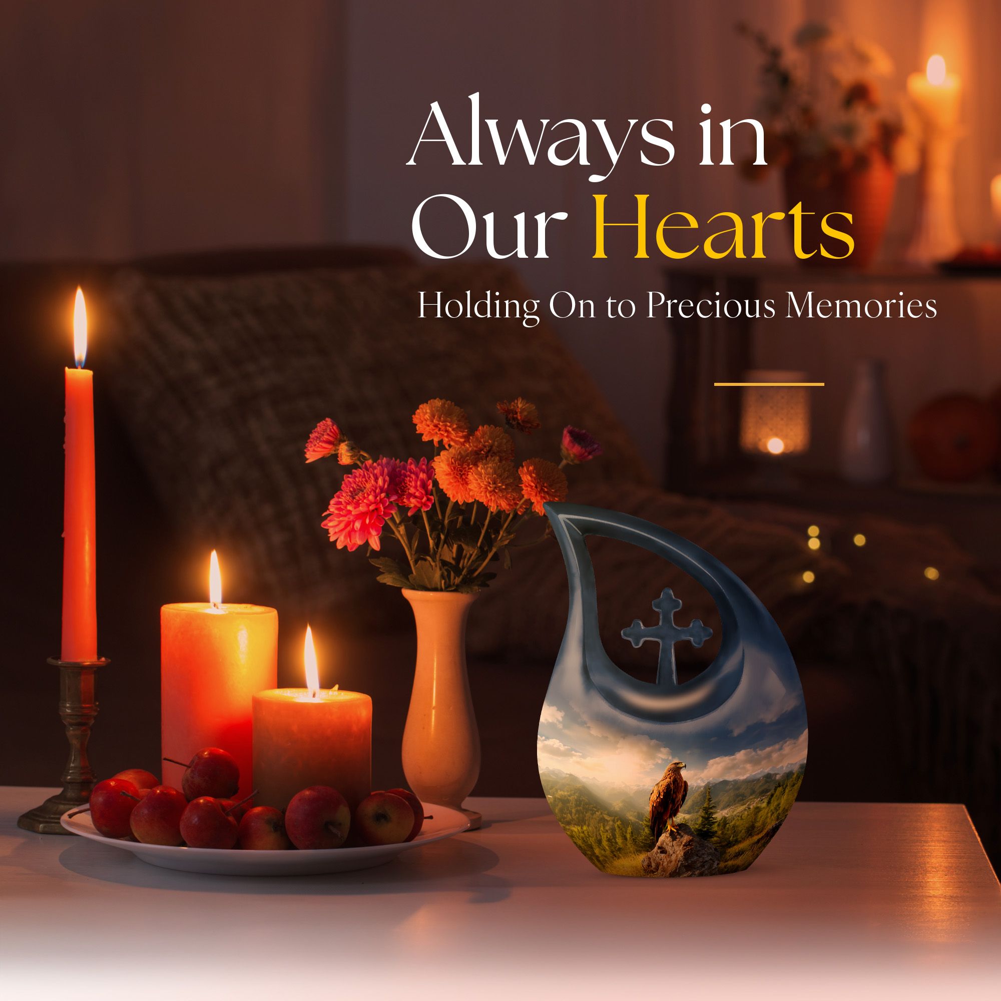 The Eagle Sunrise Themed Urn represents power, peace, and eternal freedom — a heartfelt way to honor a loved one’s memory. Designed as a majestic large funeral urn, it captures the essence of soaring beyond life with beauty and dignity. This elegant piece serves as a comforting reminder of a spirit forever at peace, making it one of the most cherished large urns for human ashes.