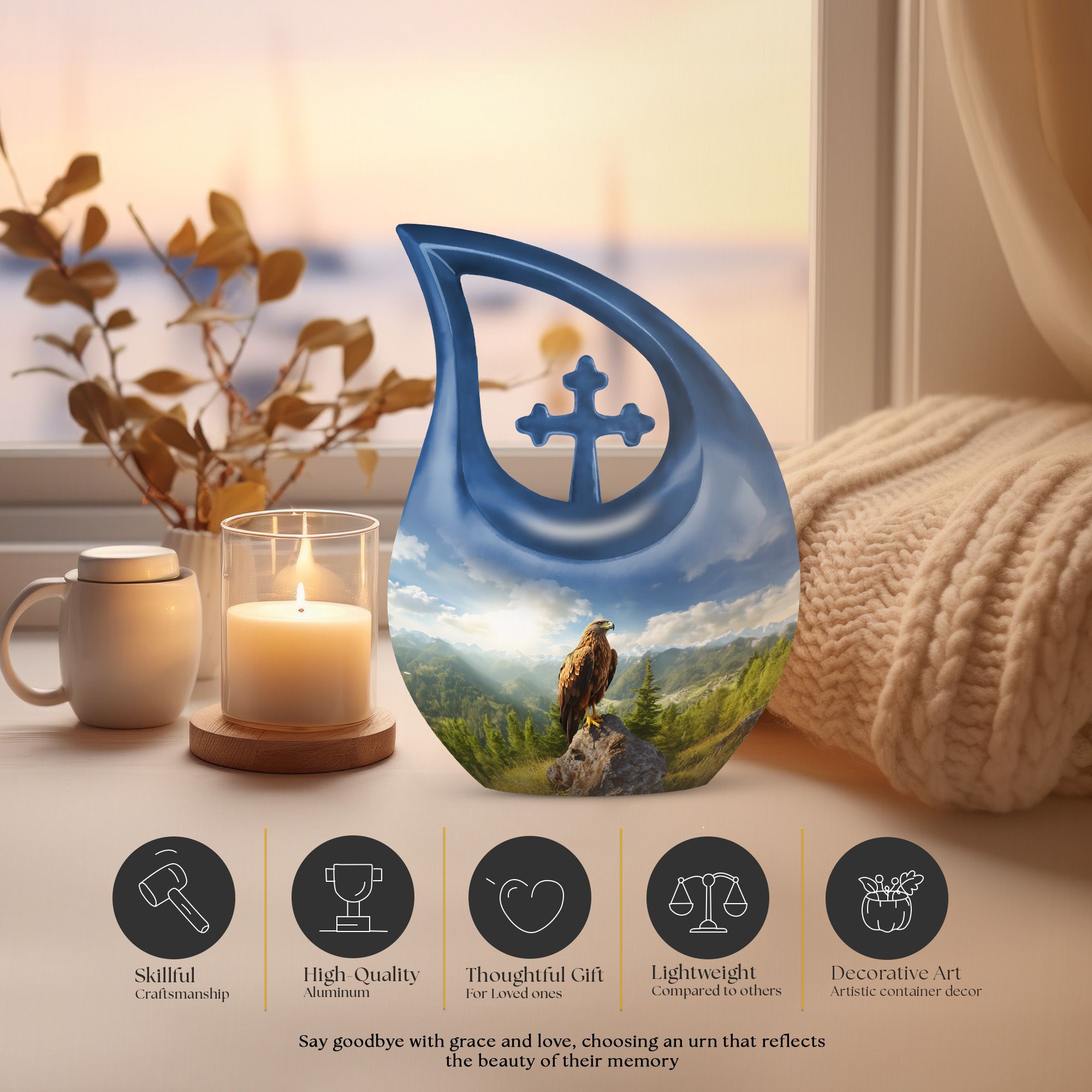 Let the Eagle Sunrise Themed Urn serve as a powerful reminder that love and memories continue to soar, beautifully contained in one of the finest urns for human ashes large available today.