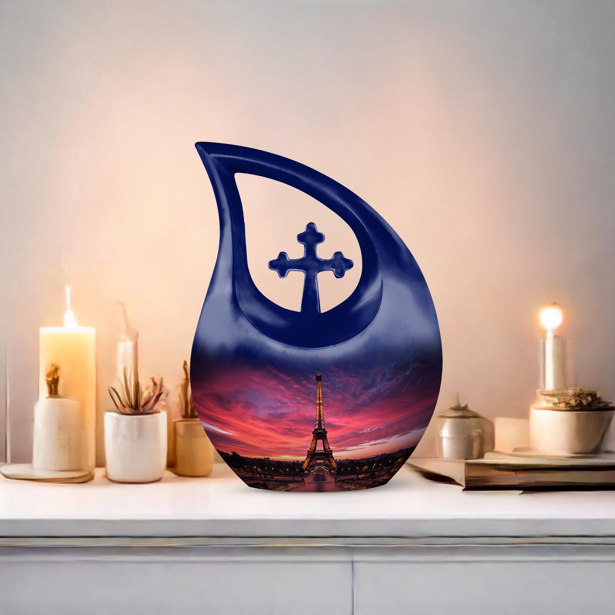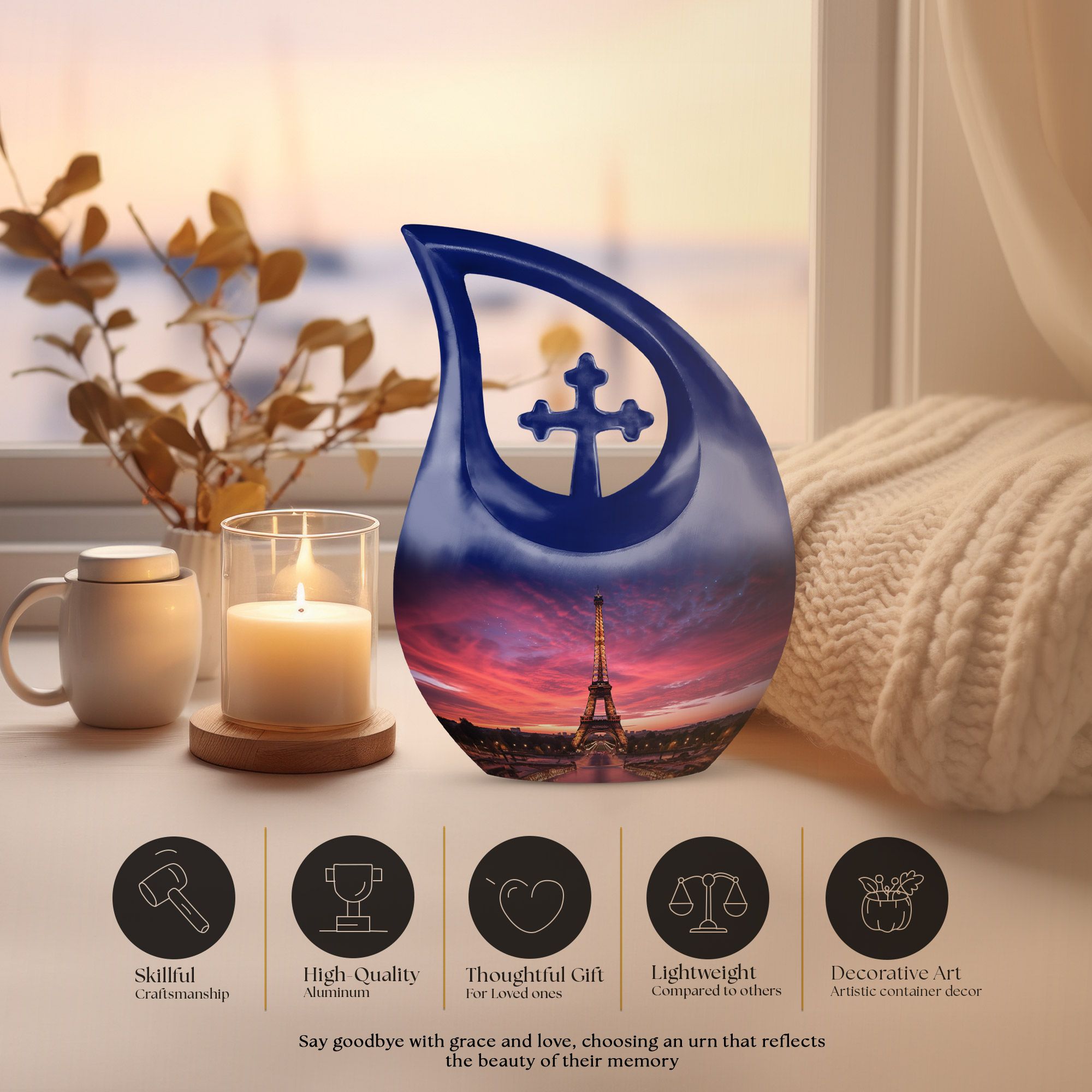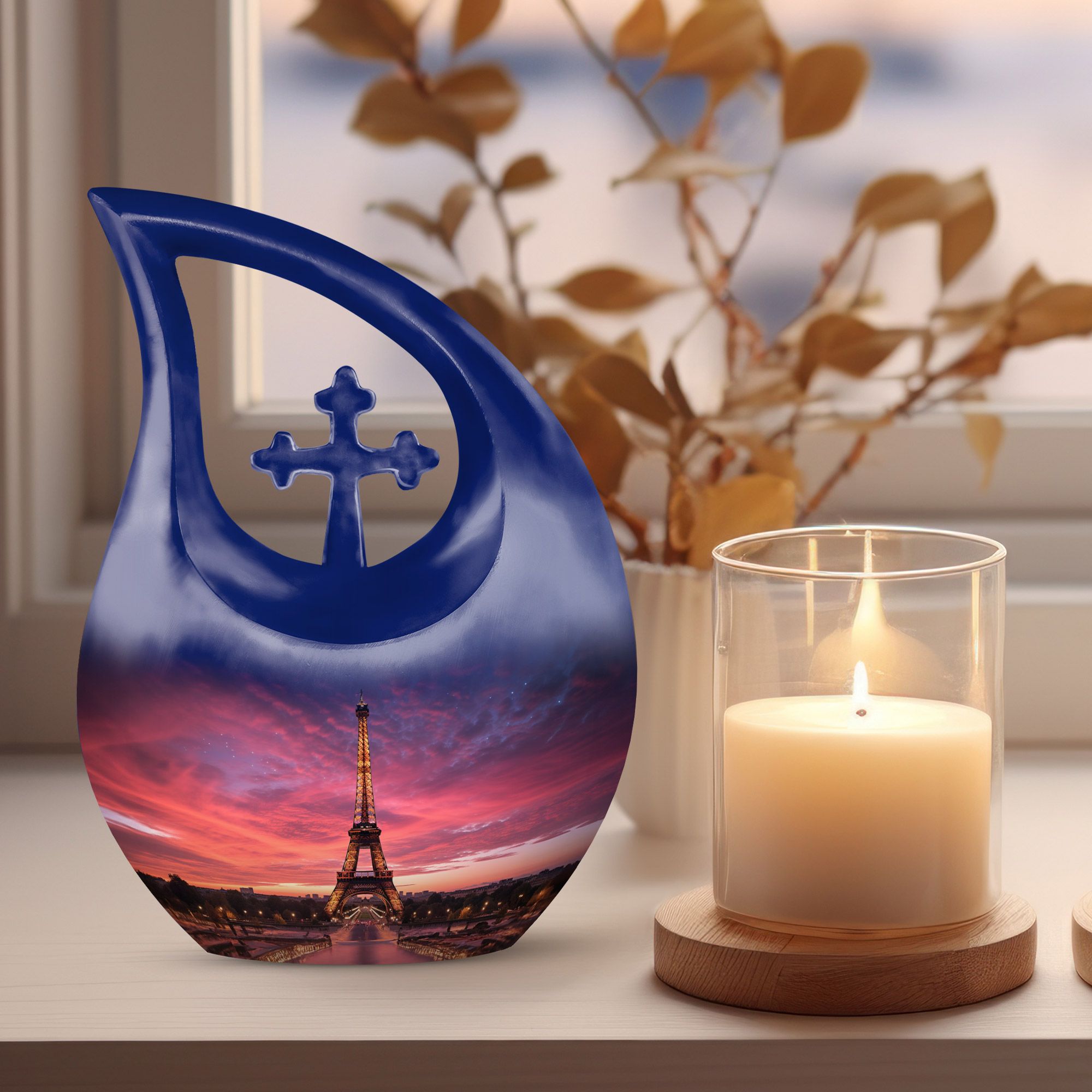 Celebrate a cherished life with the Blue Eiffel Tower Themed Urn, an elegant piece that beautifully captures the spirit of love, grace, and everlasting memories. Designed to honor your loved one with dignity, this stunning urn is ideal for human urns for ashes adult female or human urns for ashes adult male, serving as a timeless tribute to a life well-lived and deeply loved.