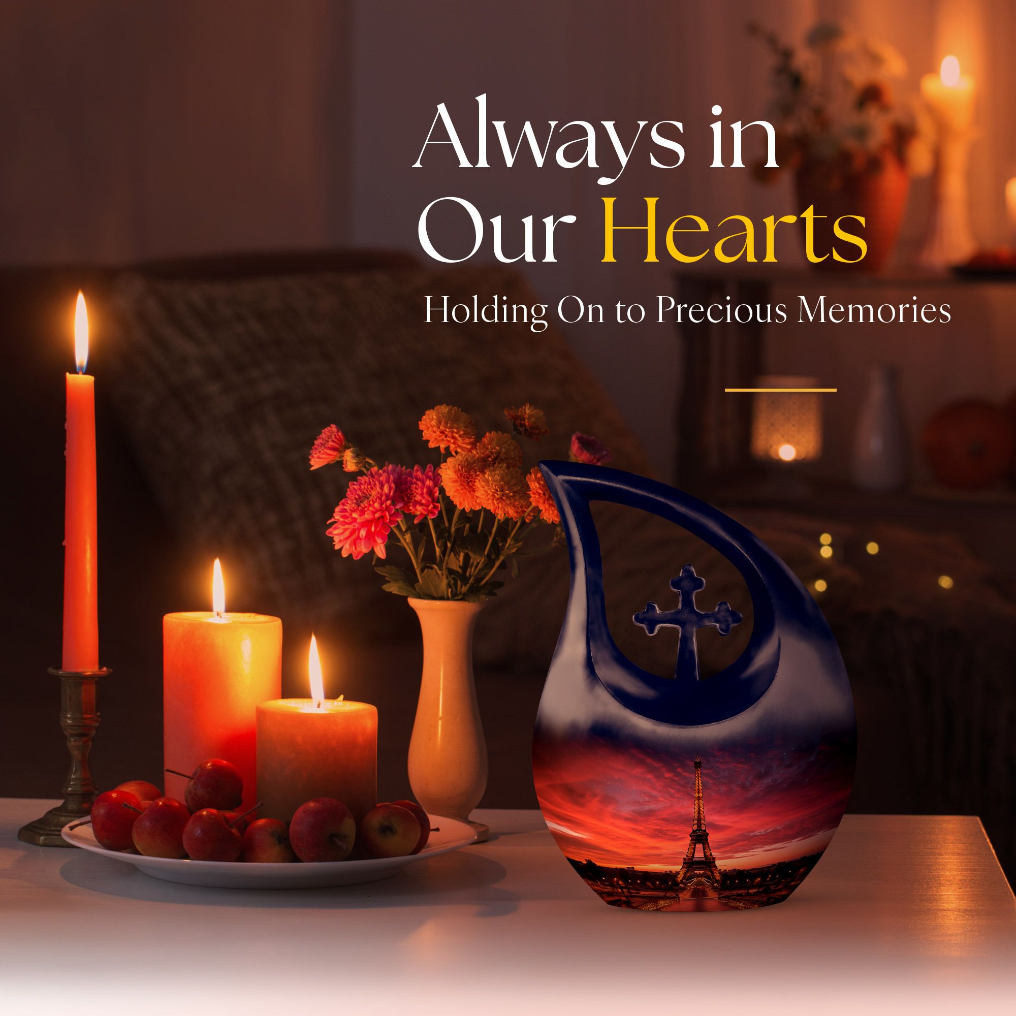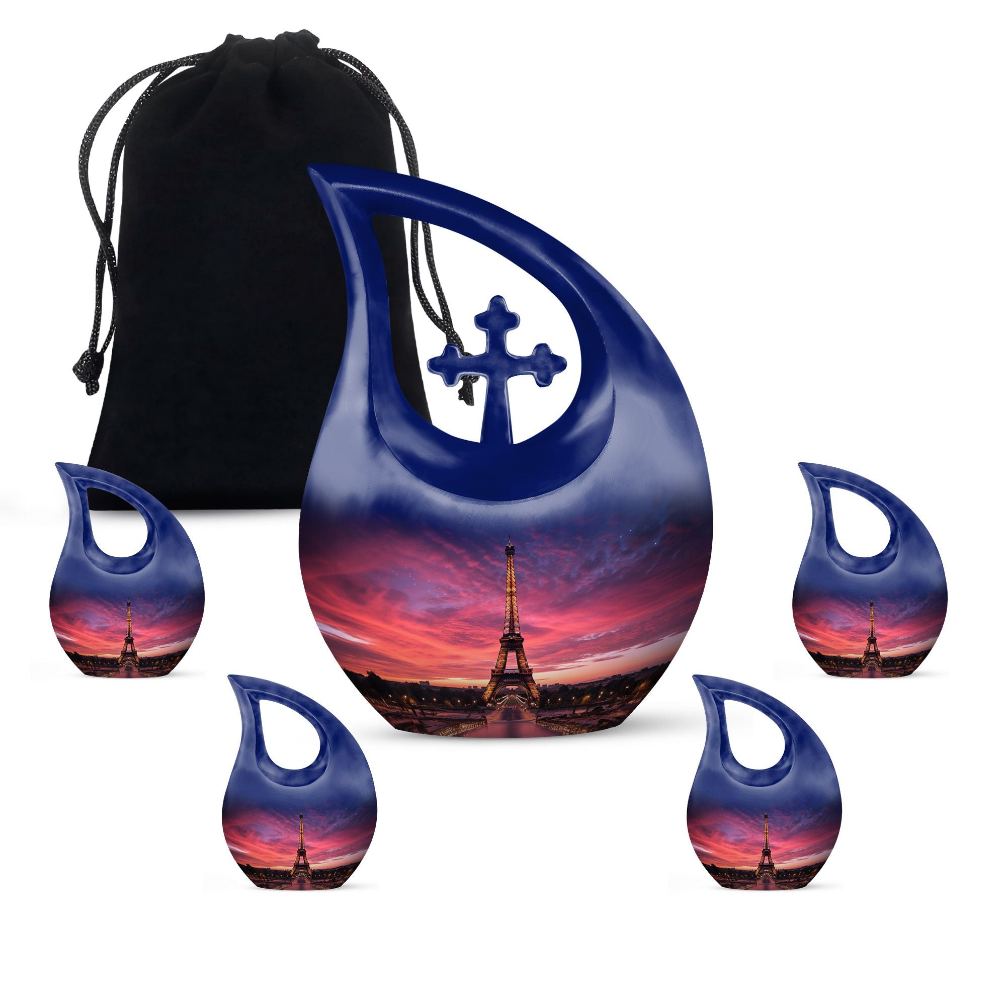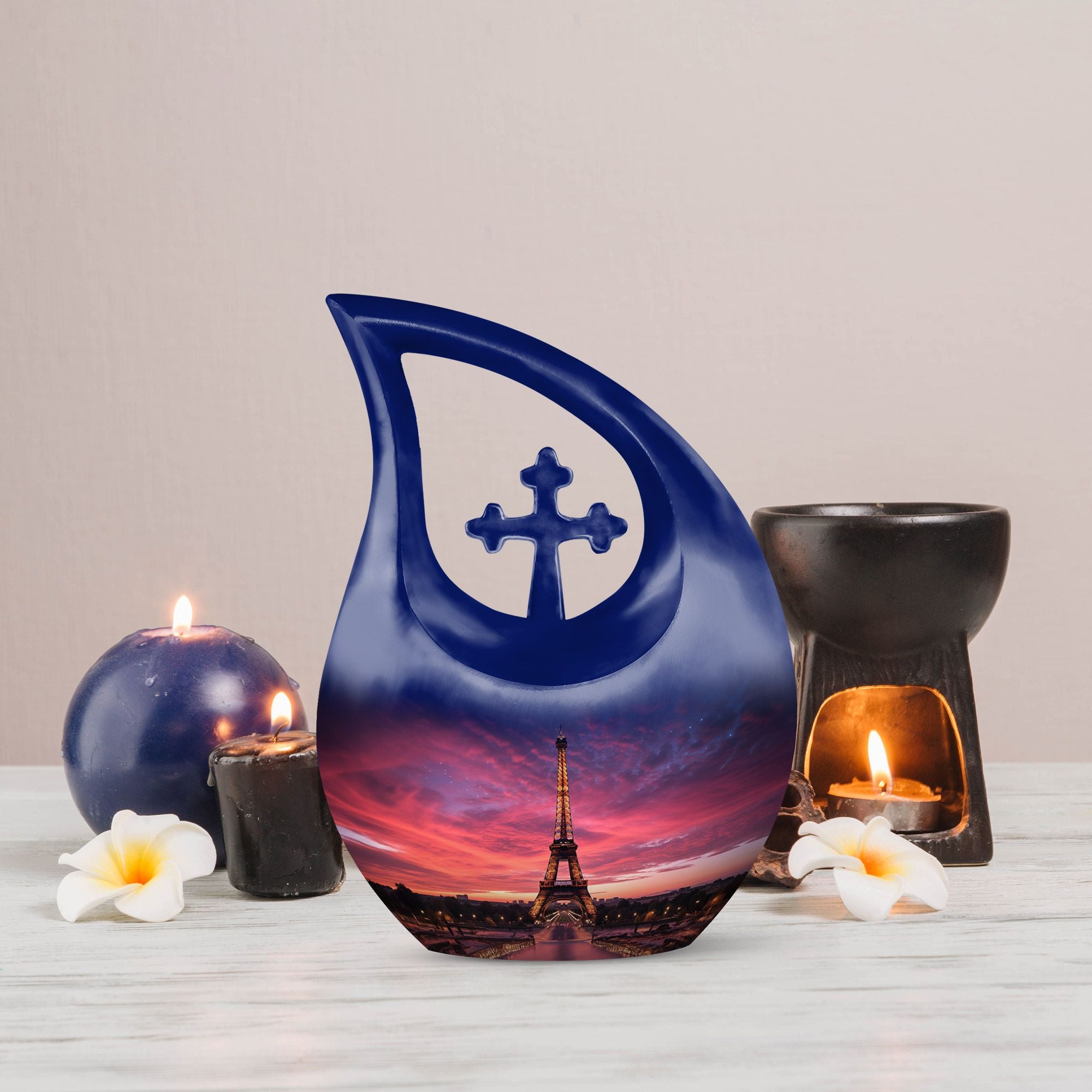 Celebrate a cherished life with the Blue Eiffel Tower Themed Urn, an elegant piece that beautifully captures the spirit of love, grace, and everlasting memories. Designed to honor your loved one with dignity, this stunning urn is ideal for human urns for ashes adult female or human urns for ashes adult male, serving as a timeless tribute to a life well-lived and deeply loved.