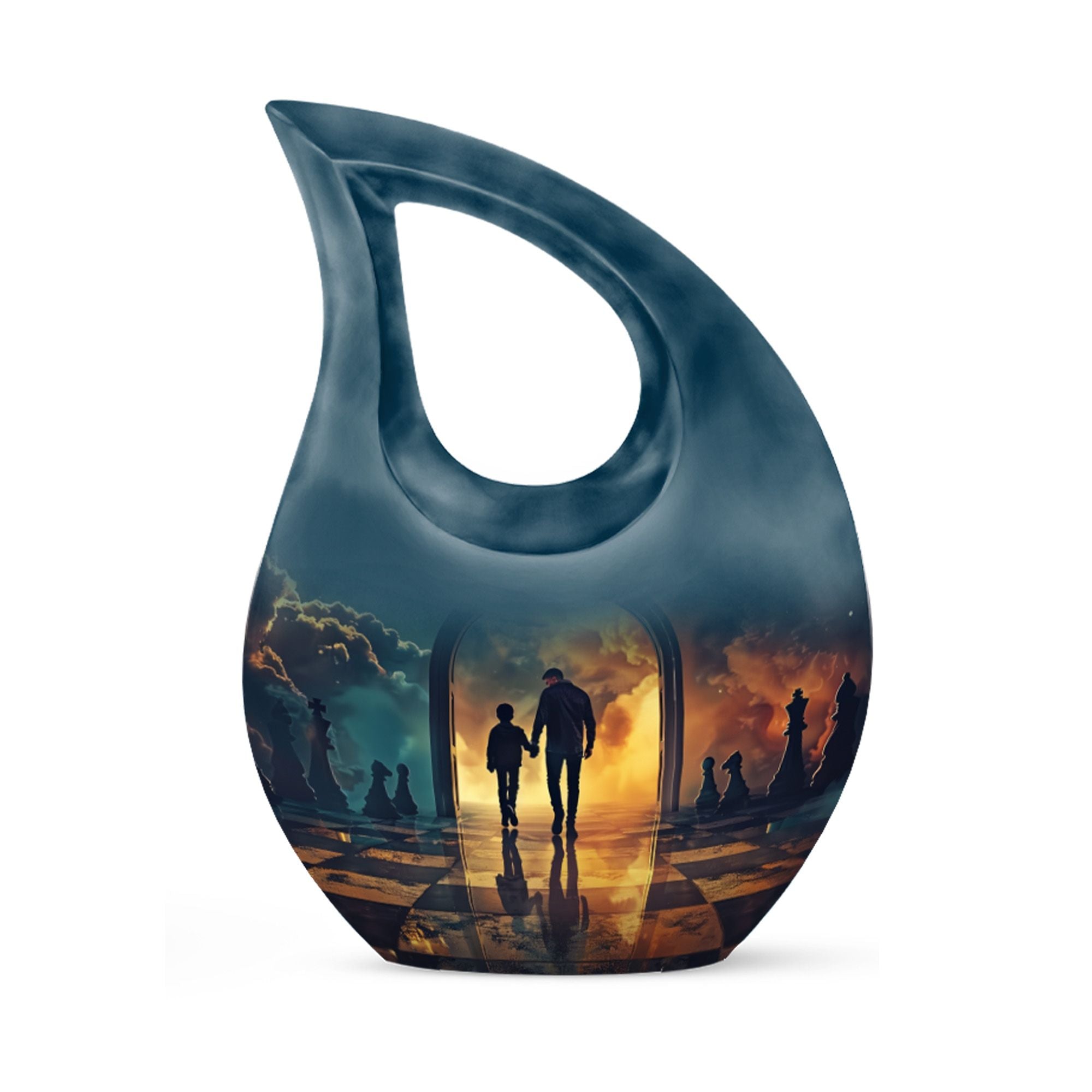 This **cremation urn for human ashes** **features an elegant design, crafted to preserve a father’s memory with dignity and care**.