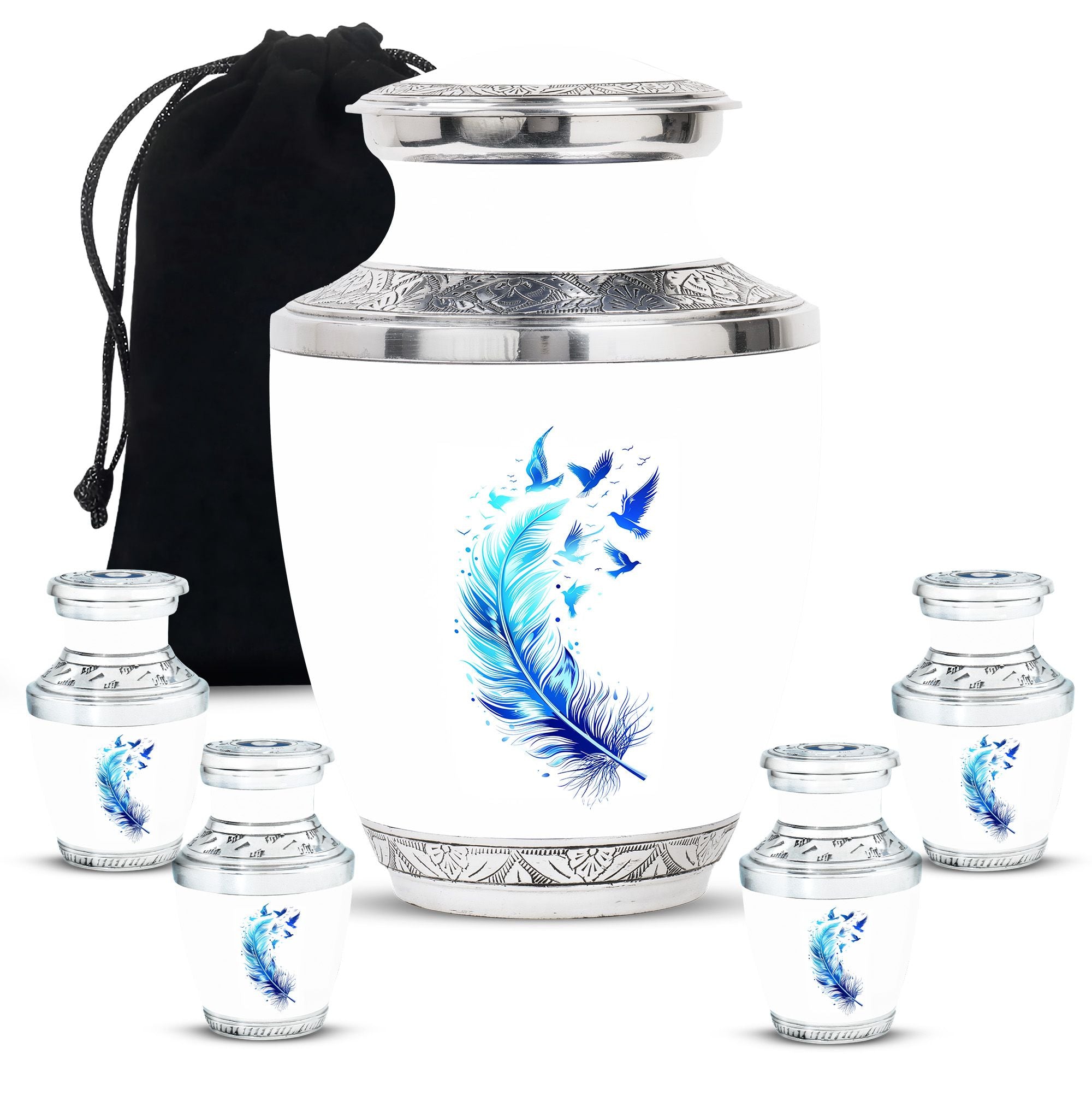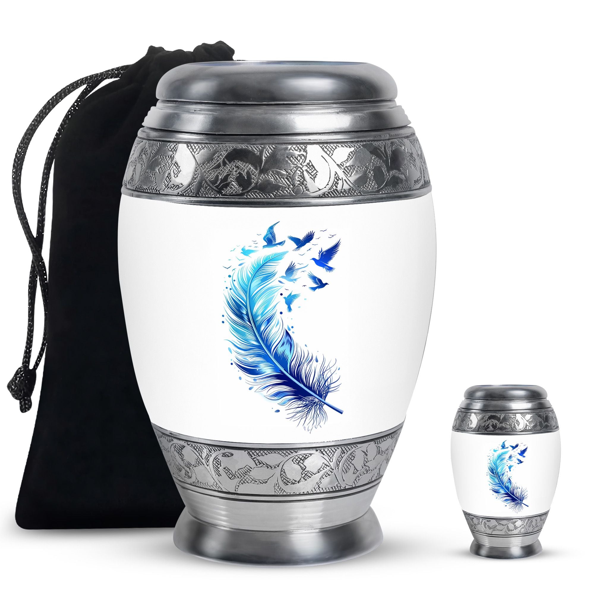 Celebrate the life and memories of a cherished loved one with this Feather Blue Flying Bird cremation urn. Designed to hold ashes with dignity, it is ideal for small urns for ashes adult female, mini urns for human ashes, and ashes keepsake collections.