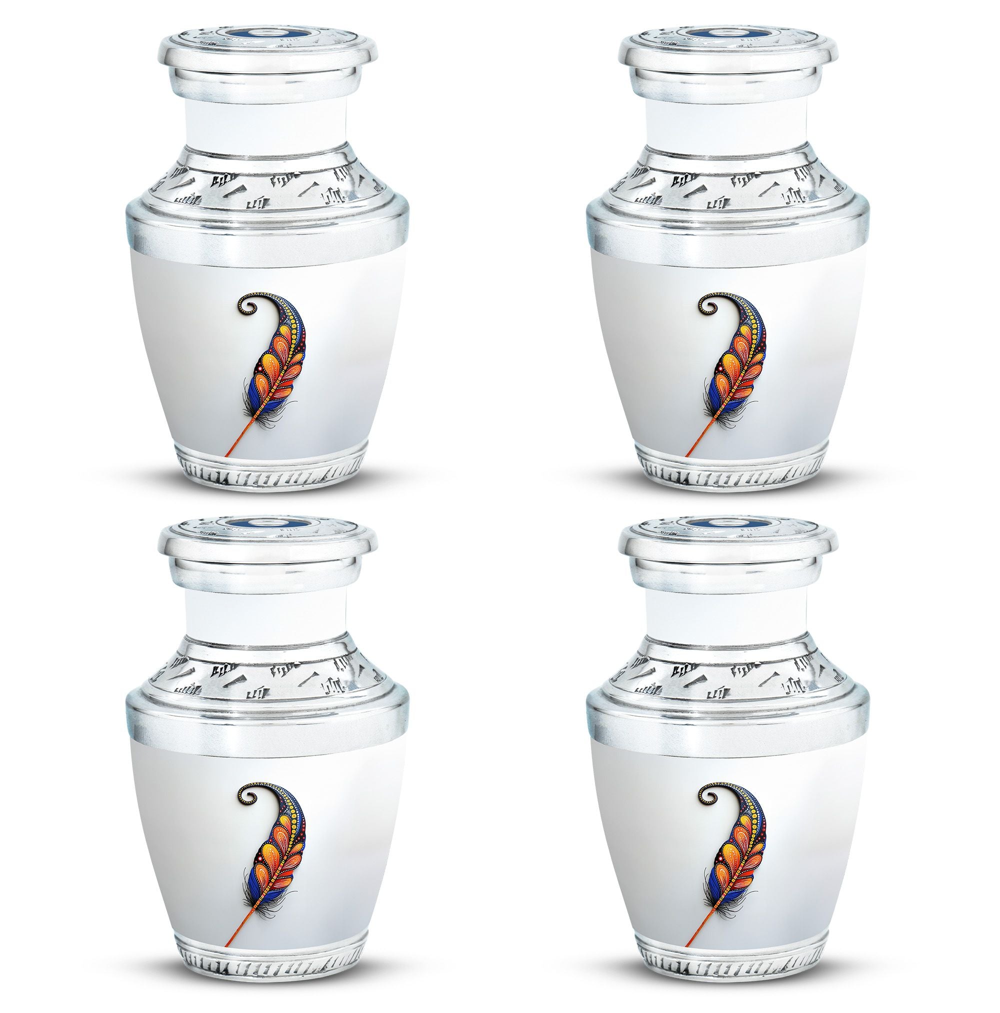 Crafted with precision and care, this adult size cremation urn features durable aluminium construction with a soft white feather design symbolizing peace and remembrance. Its smooth finish and secure screw-top lid ensure safety and ease of use, while its classic style complements any setting. Ideal as a human cremation urn or for cremation keepsake purposes, it seamlessly blends aesthetic beauty with practical functionality.