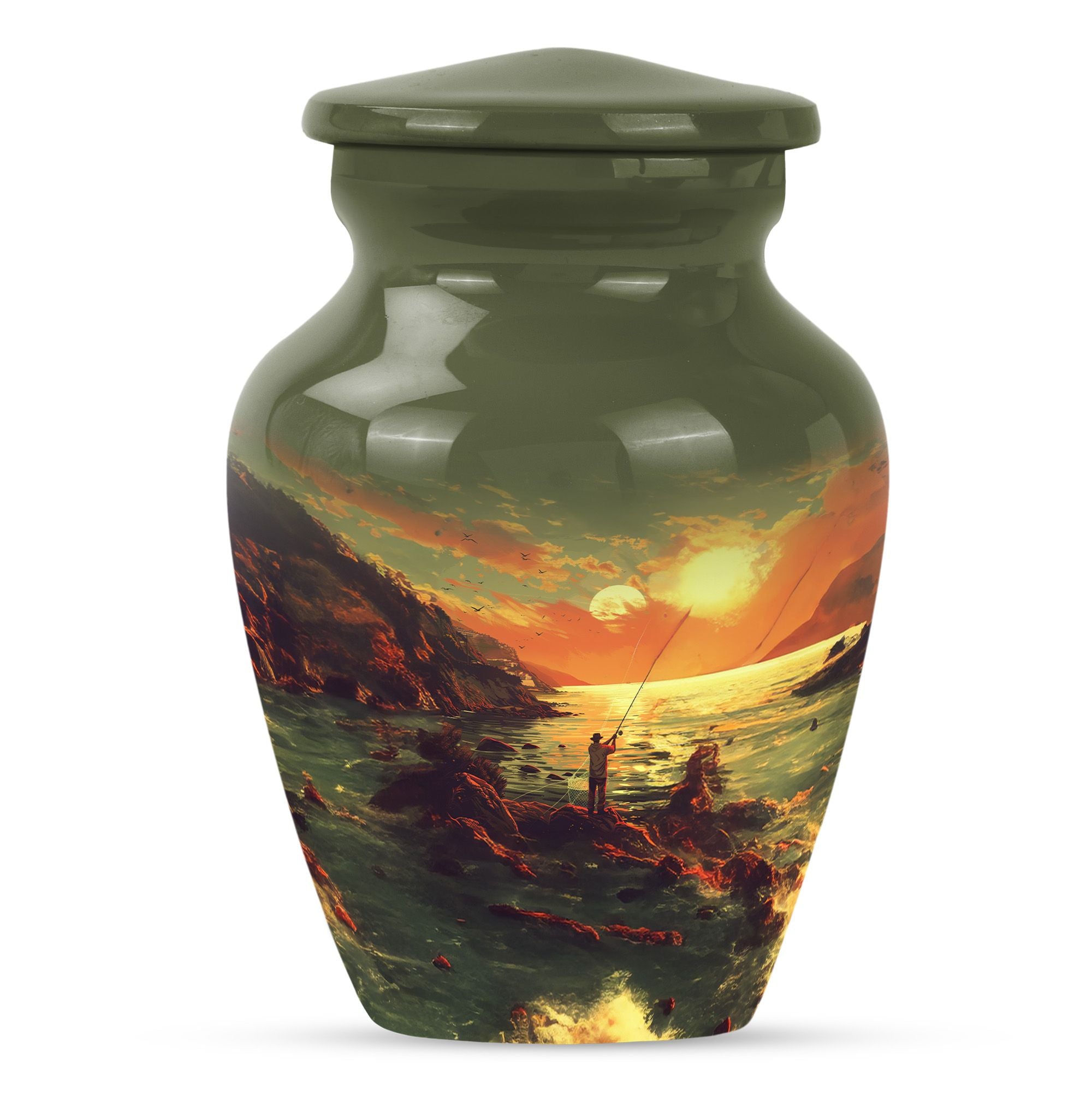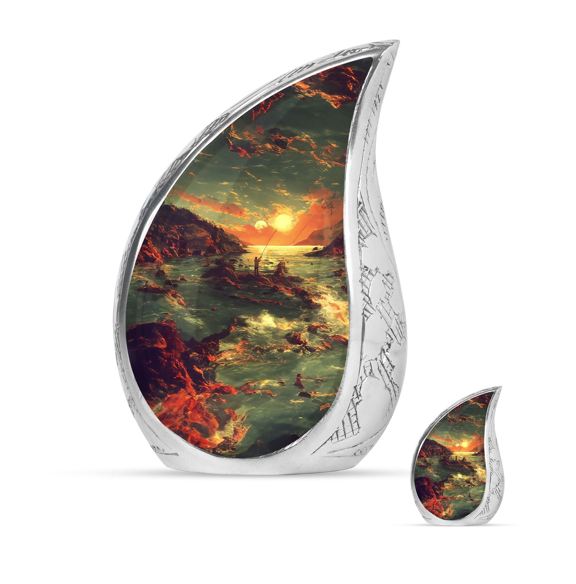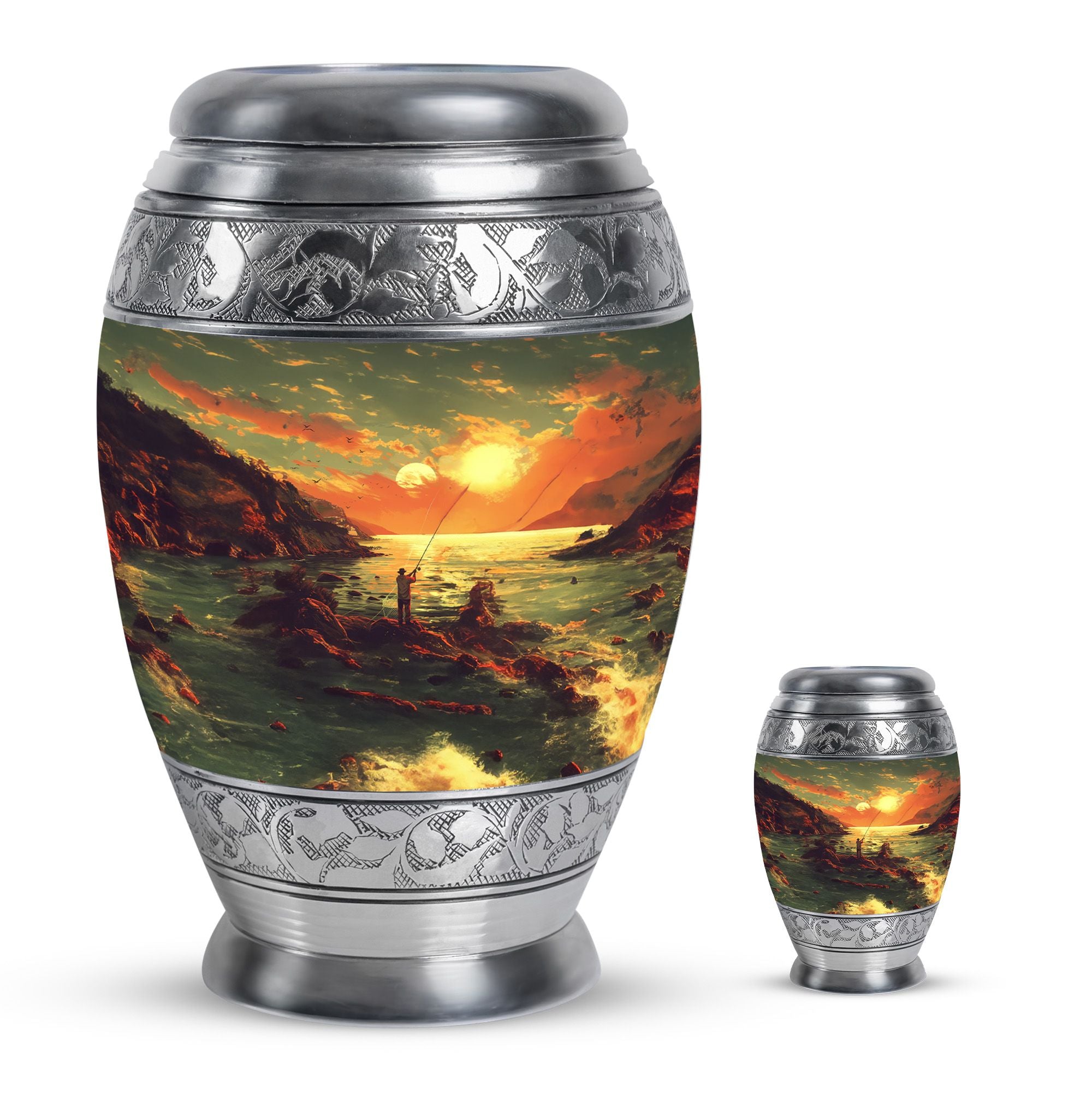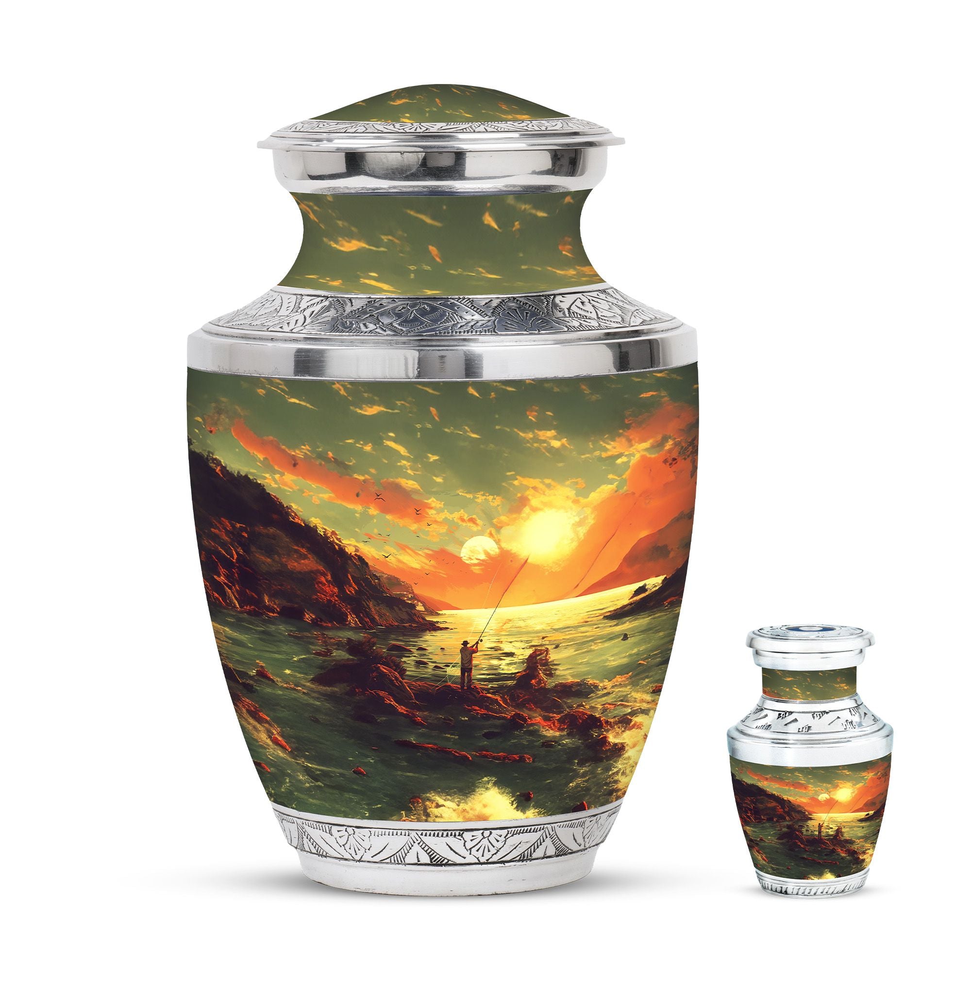 Celebrate a cherished life with the Coastal Sunset Urn, featuring a serene solitary angler design that evokes calm and reflection. This urn with keepsake combo provides a meaningful way to honor your loved one, offering an elegant ashes memorial keepsake. Ideal for family members or friends, it serves as a touching tribute and a lasting reminder of shared moments.