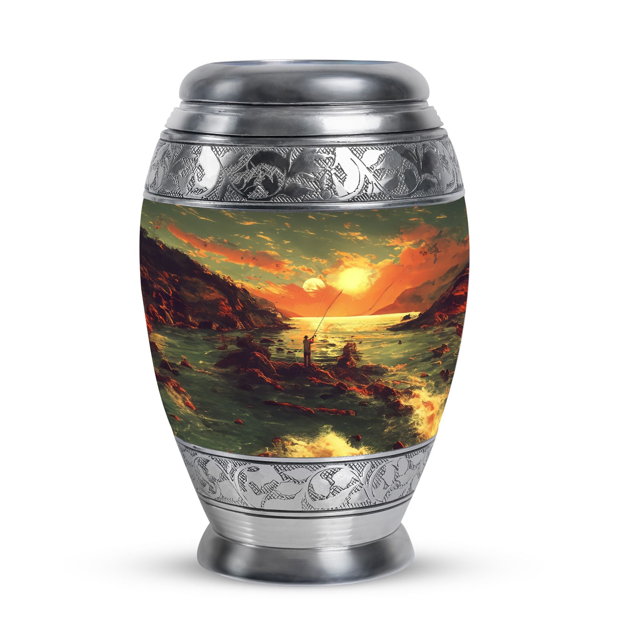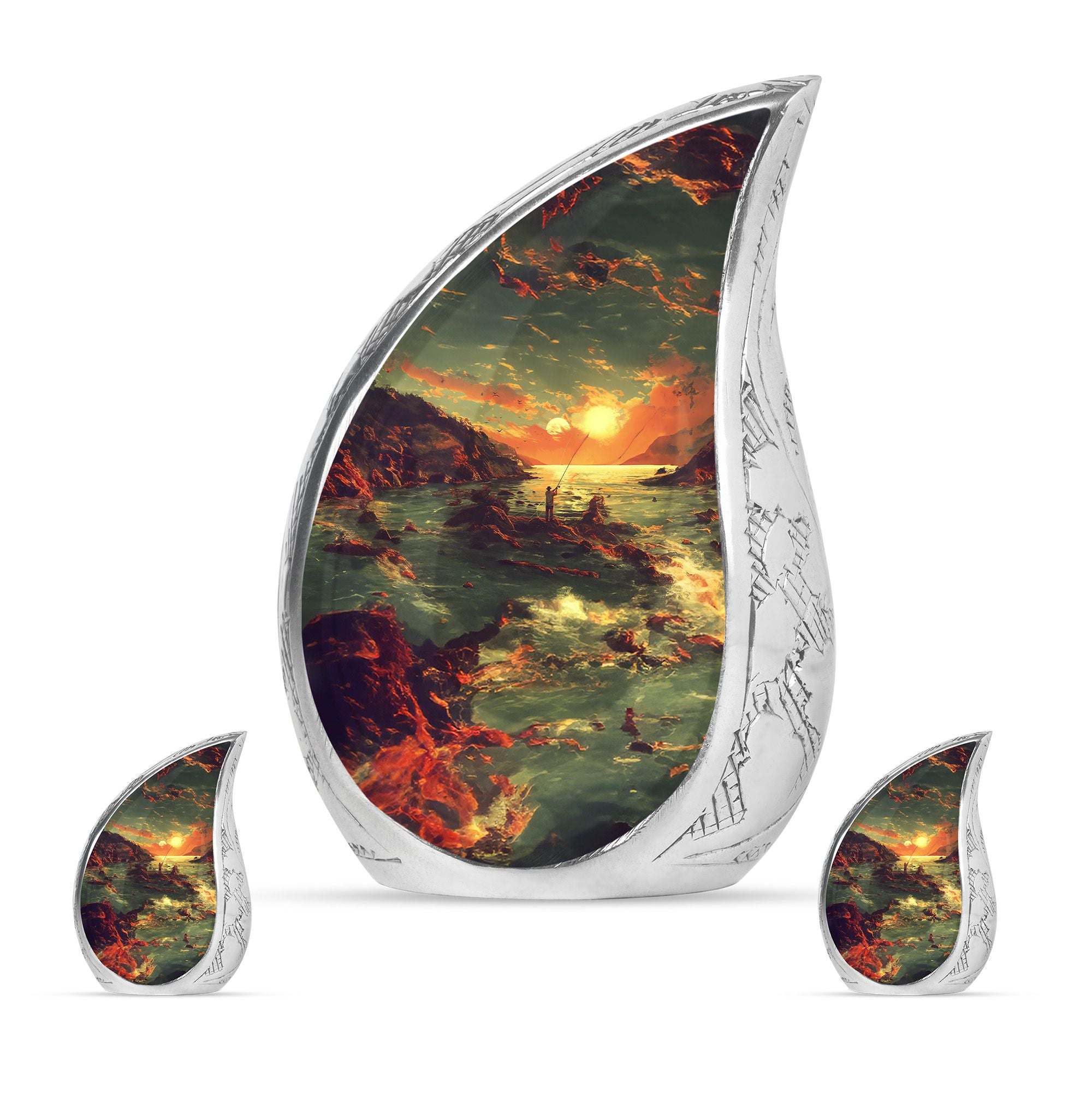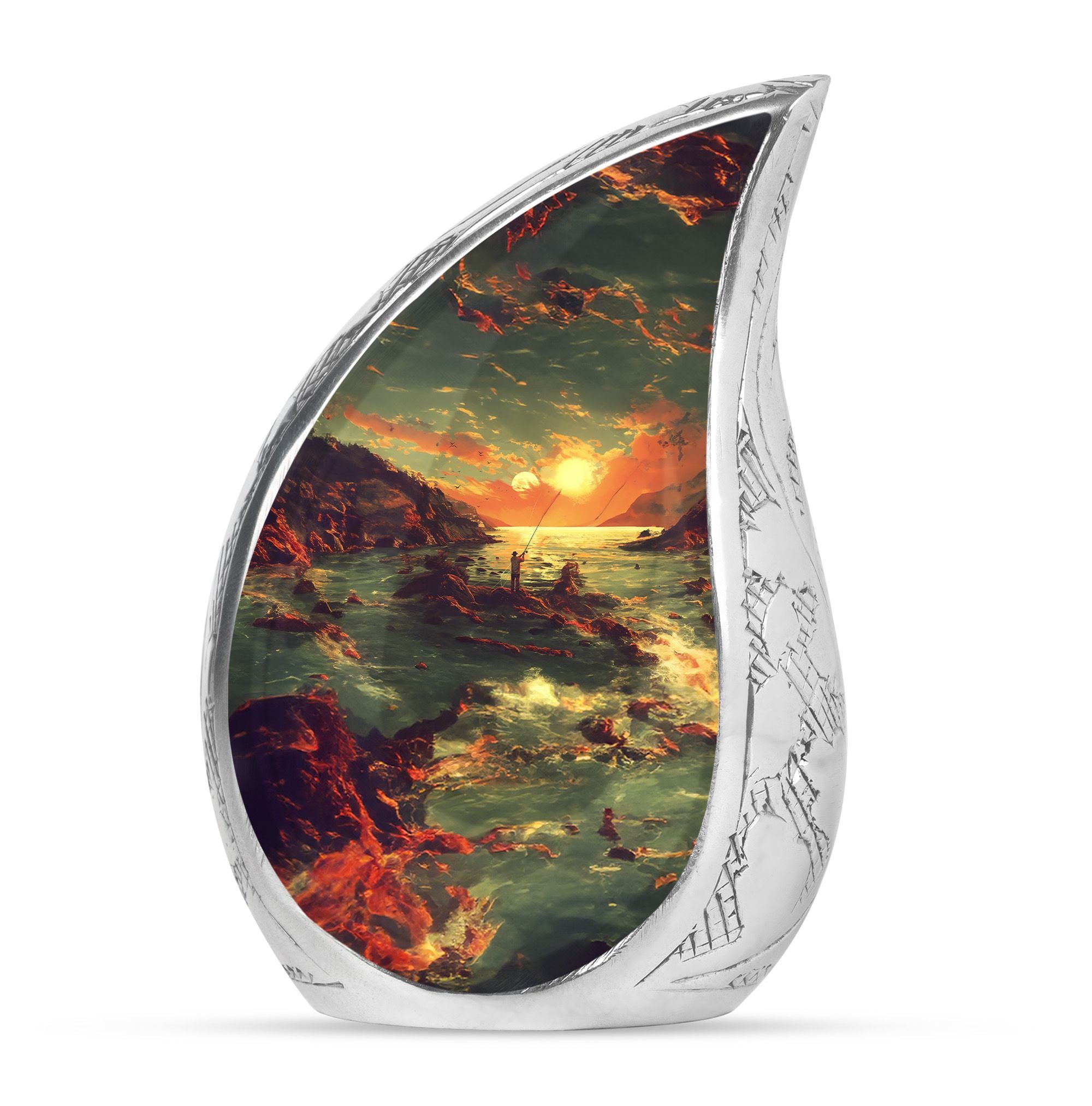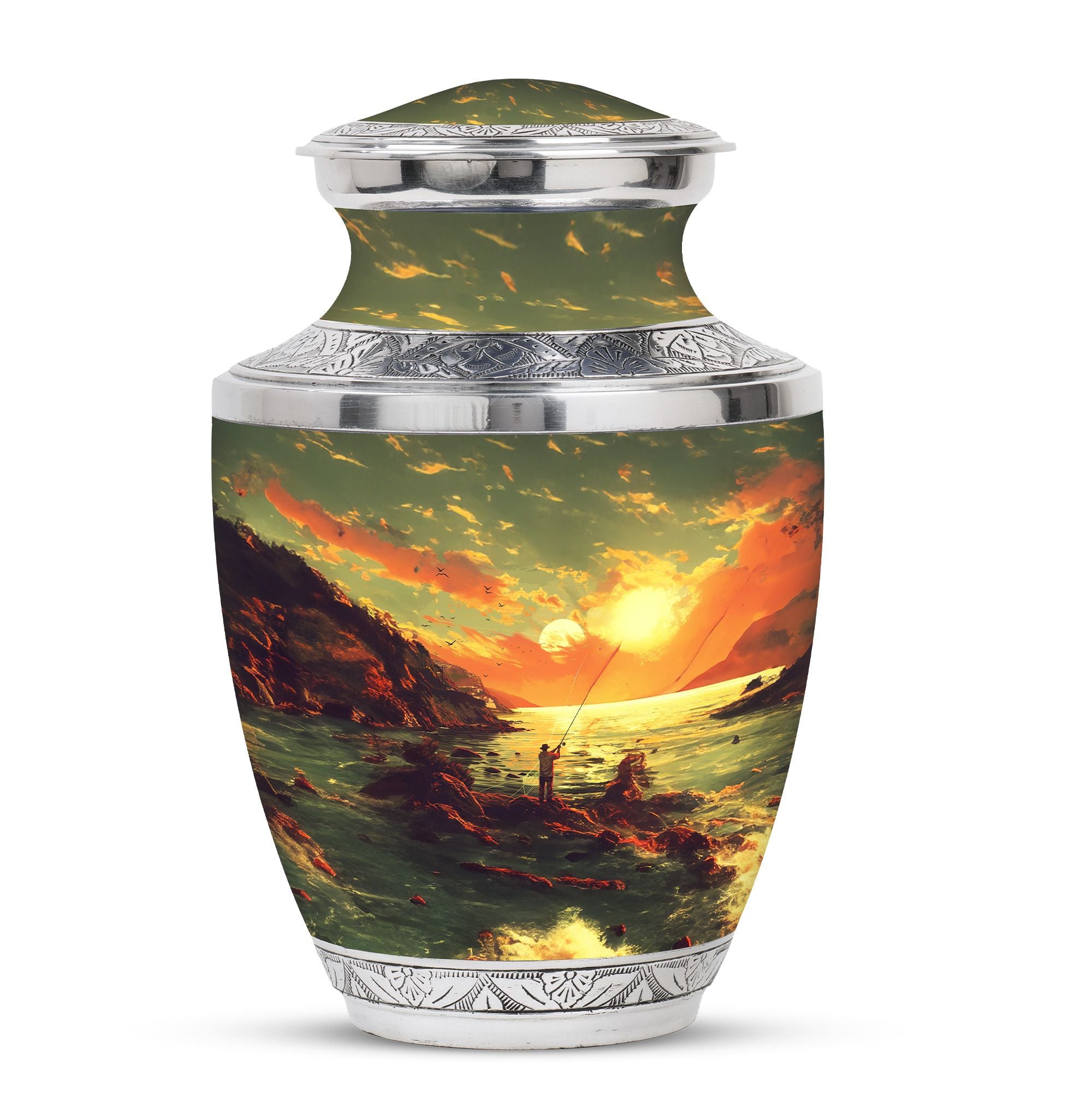 Celebrate a cherished life with the Coastal Sunset Urn, featuring a serene solitary angler design that evokes calm and reflection. This urn with keepsake combo provides a meaningful way to honor your loved one, offering an elegant ashes memorial keepsake. Ideal for family members or friends, it serves as a touching tribute and a lasting reminder of shared moments.