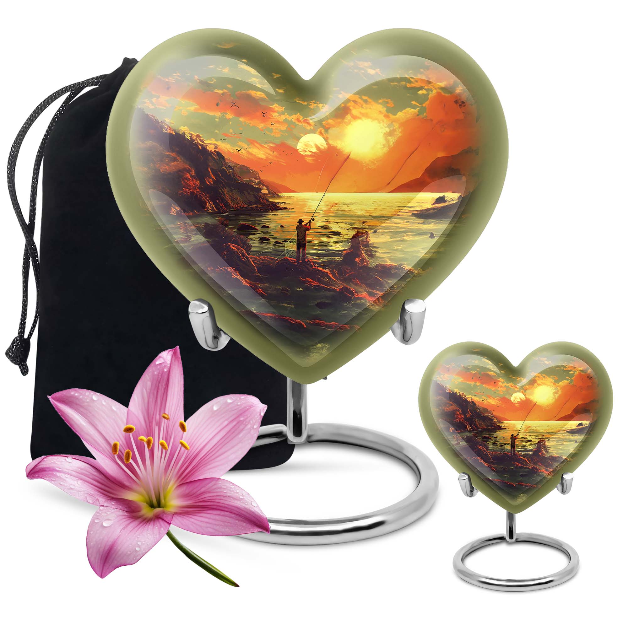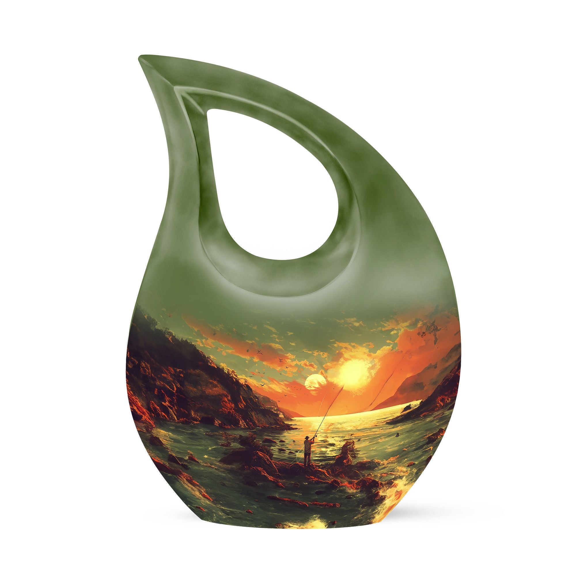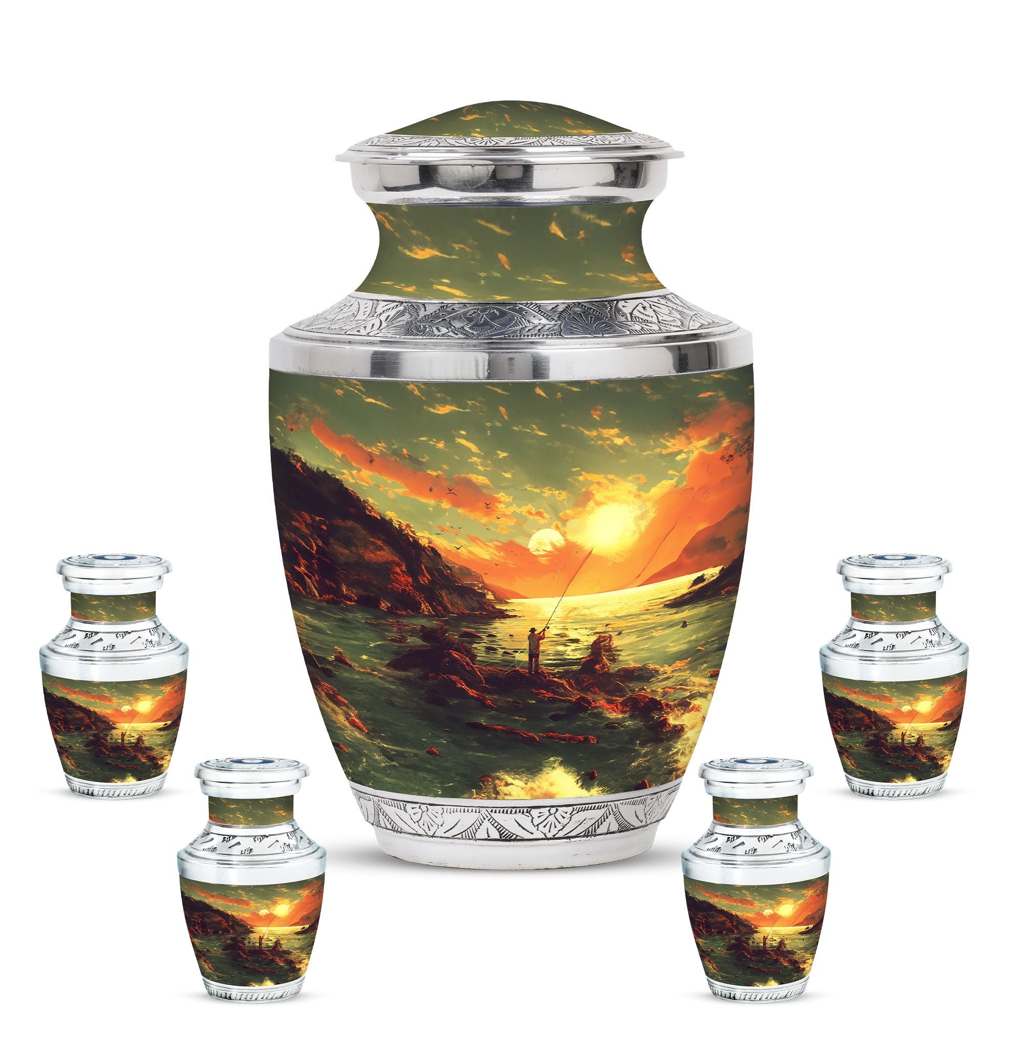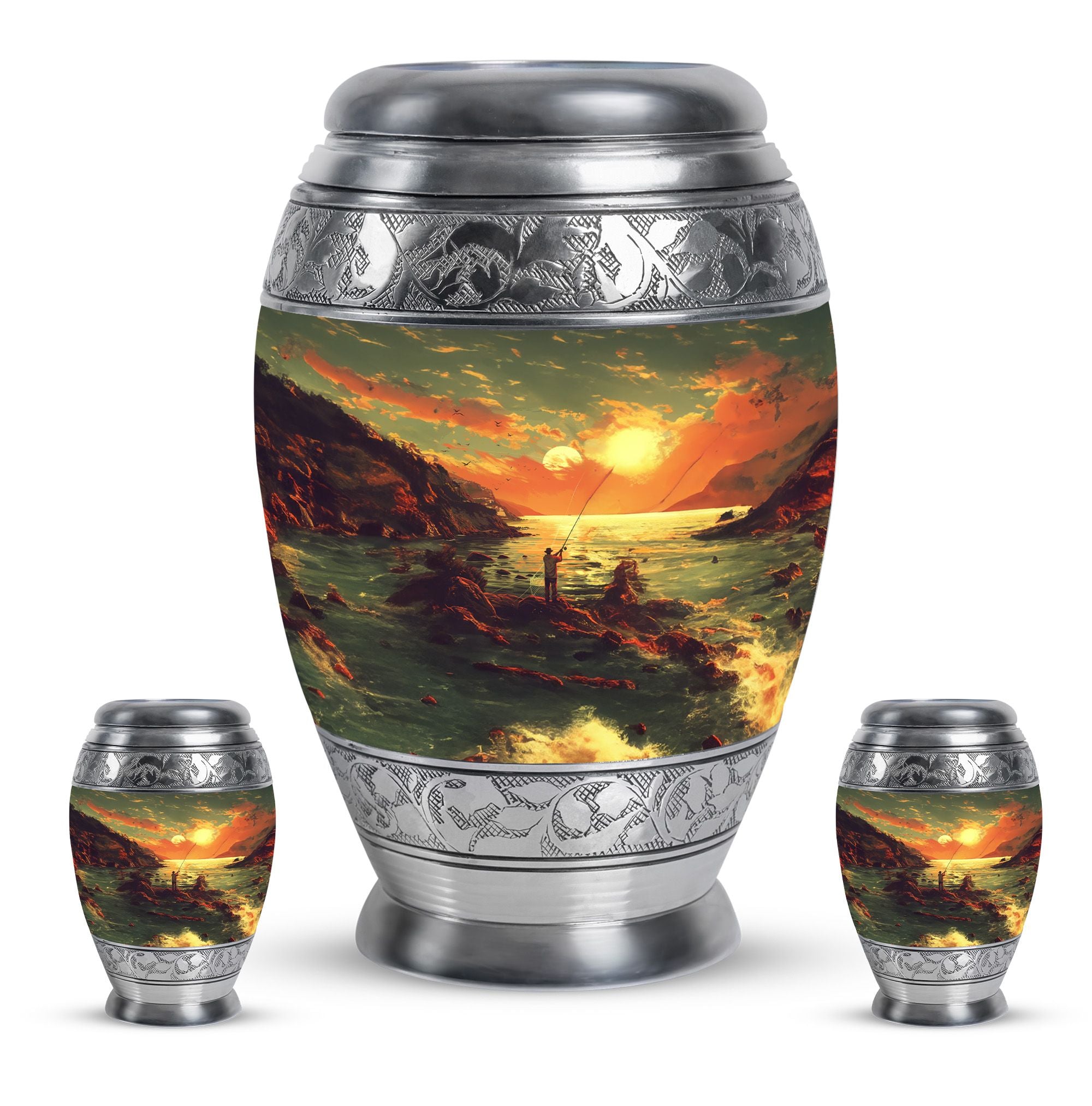 Celebrate a cherished life with the Coastal Sunset Urn, featuring a serene solitary angler design that evokes calm and reflection. This urn with keepsake combo provides a meaningful way to honor your loved one, offering an elegant ashes memorial keepsake. Ideal for family members or friends, it serves as a touching tribute and a lasting reminder of shared moments.