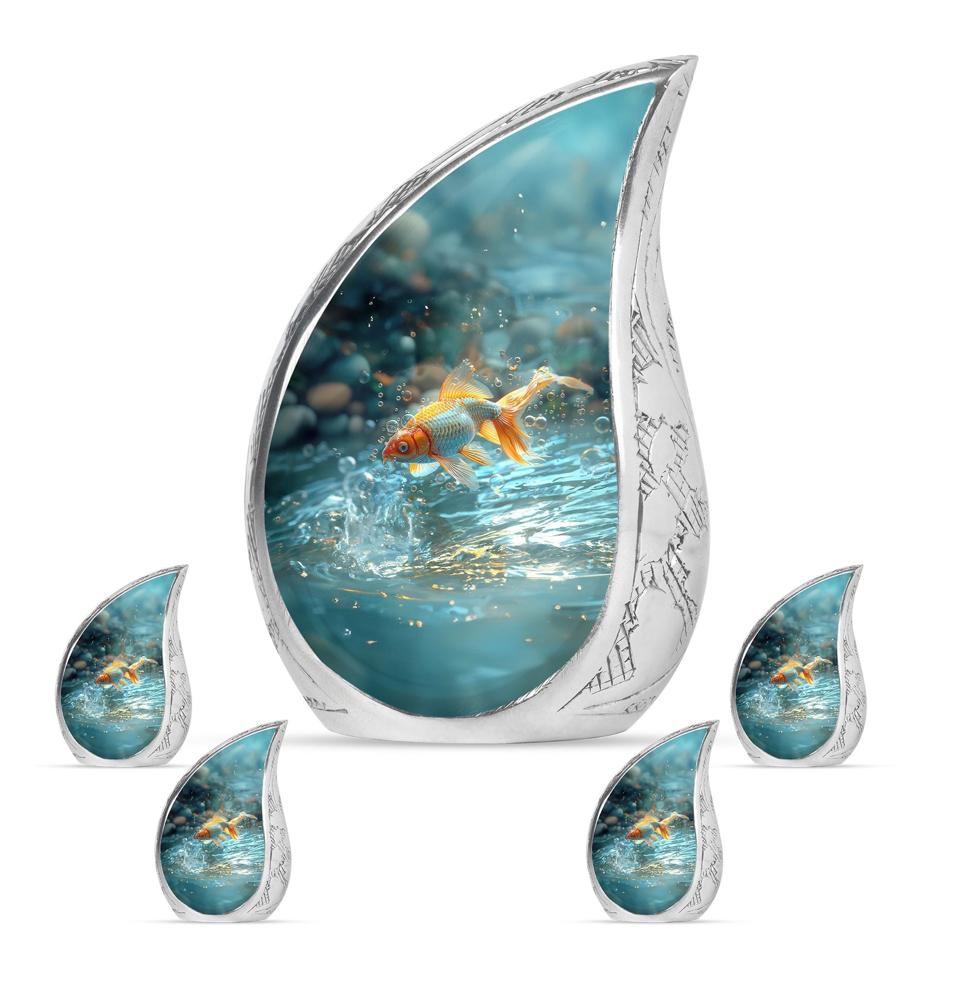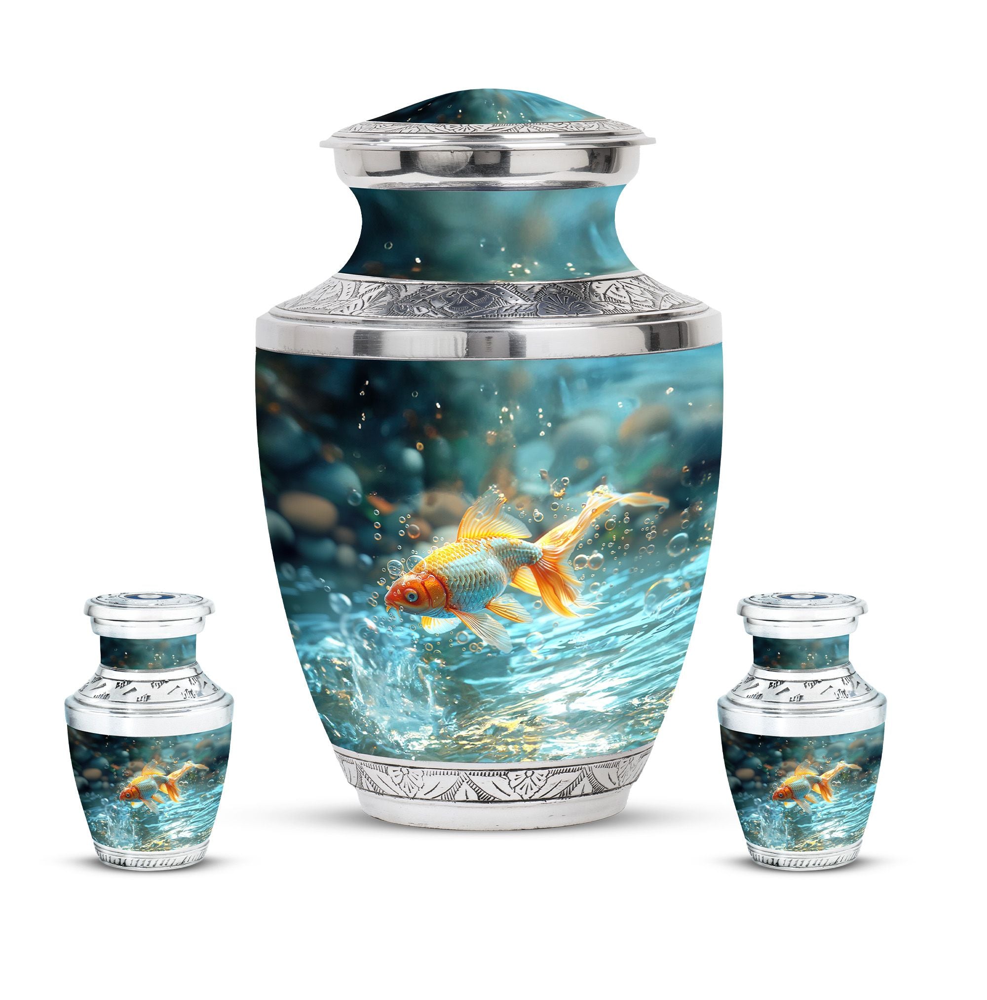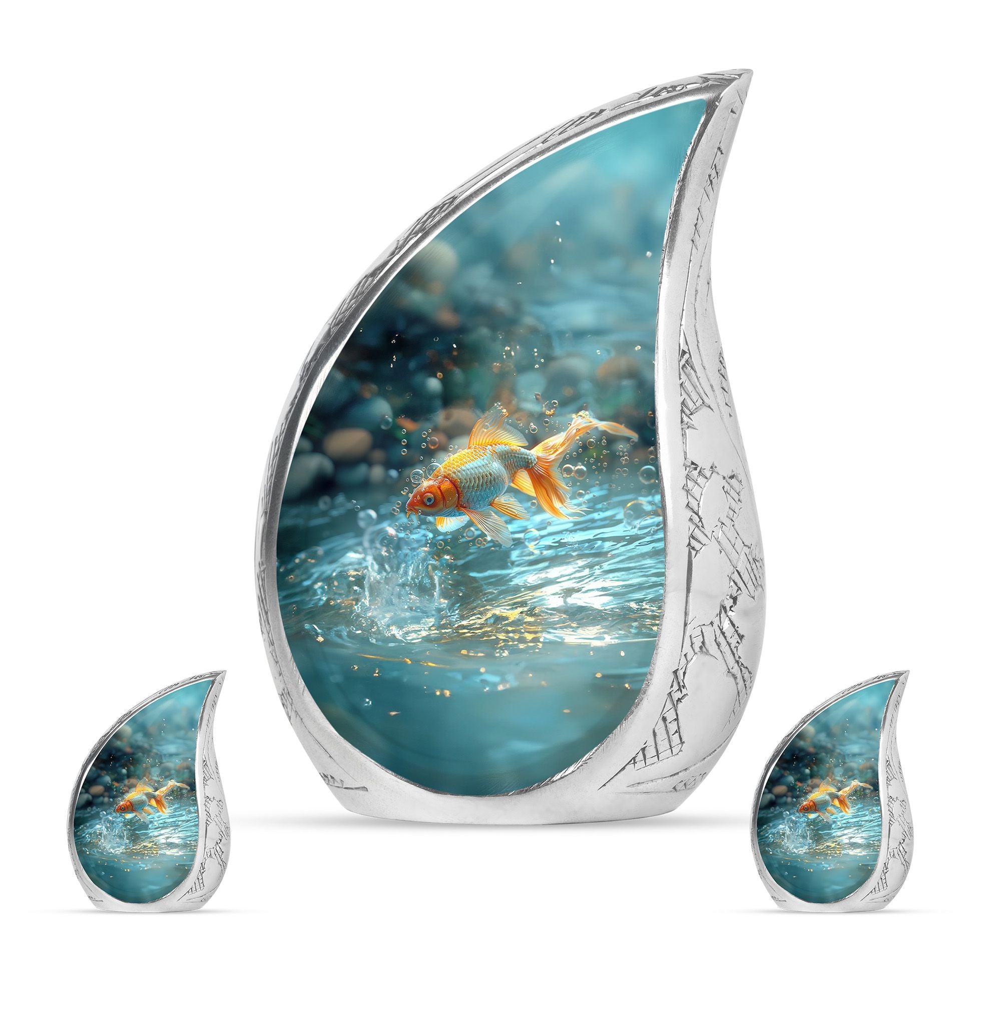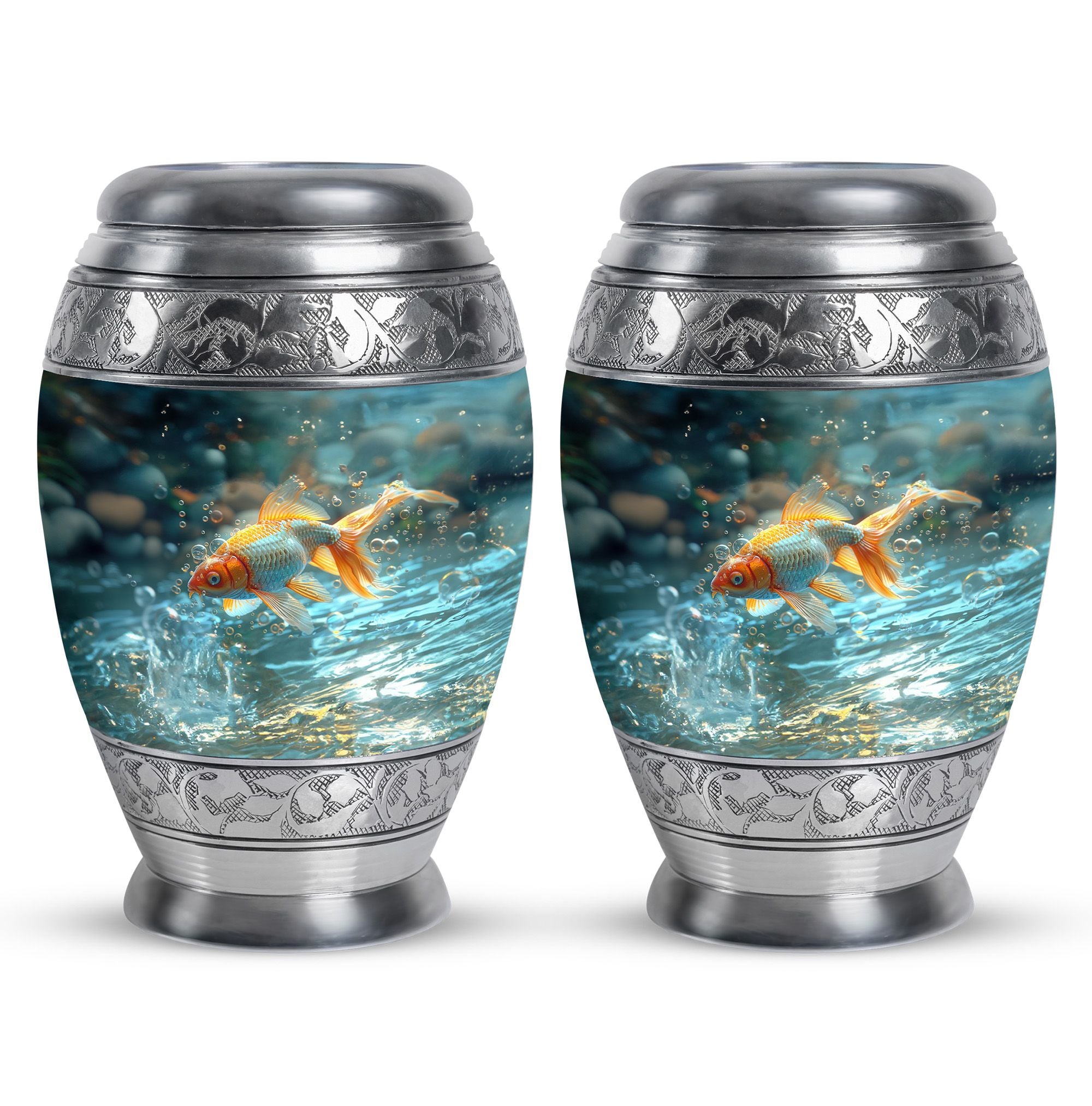 The Gold Fish Cremation Urn Adult Memorial is a graceful aquatic-inspired urn, symbolizing peace, harmony, and the eternal flow of life. With its elegant design, it provides families with comfort in remembrance, making it a meaningful choice for beautiful urns women, adult urns women, or urns women human ashes.