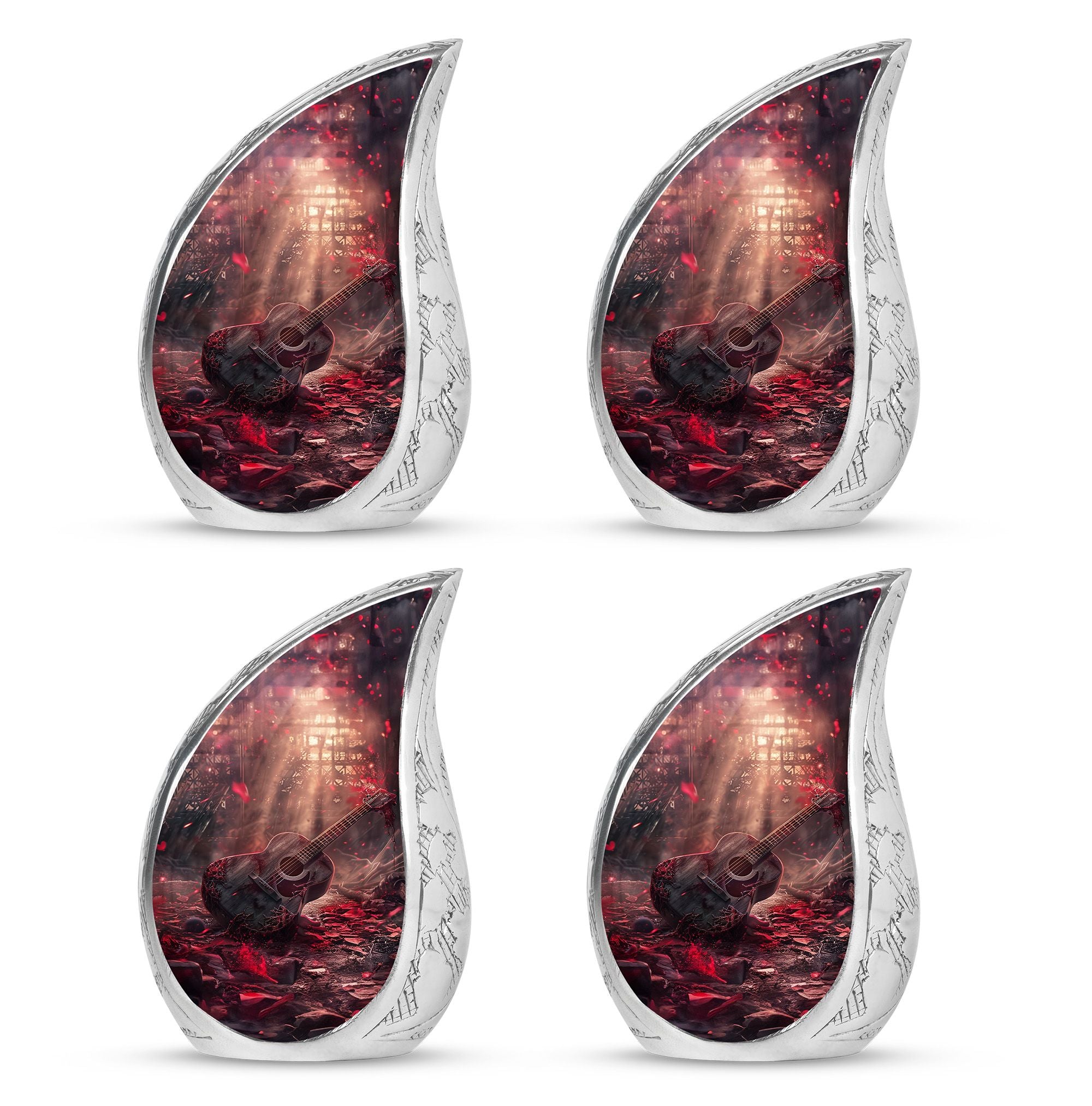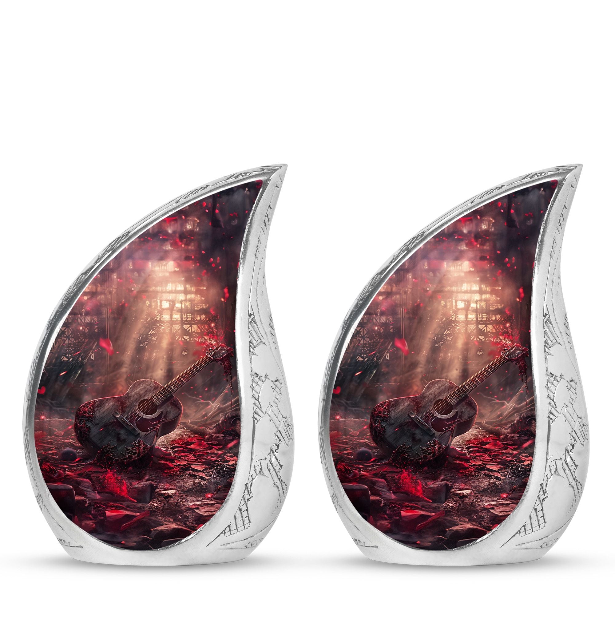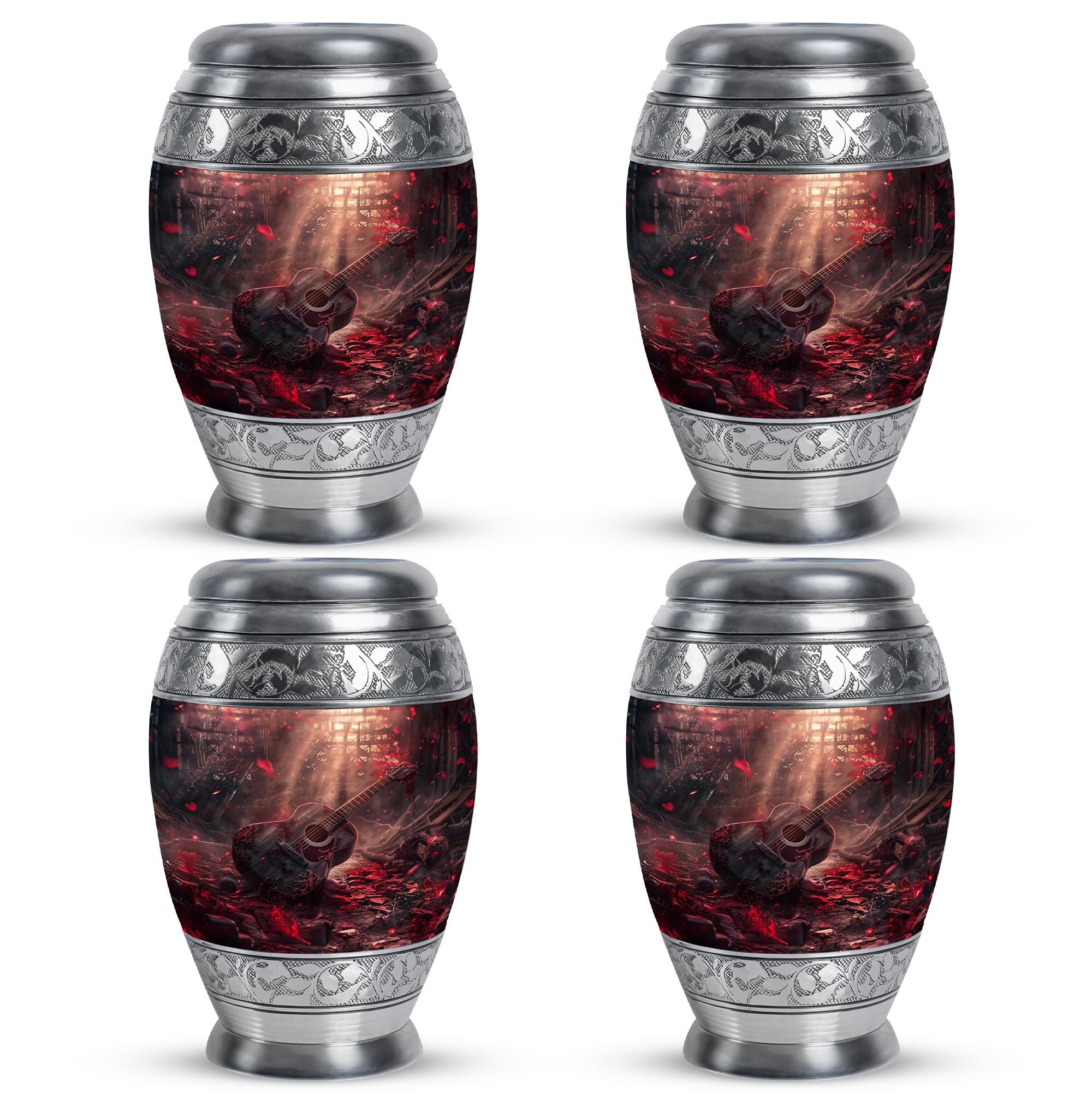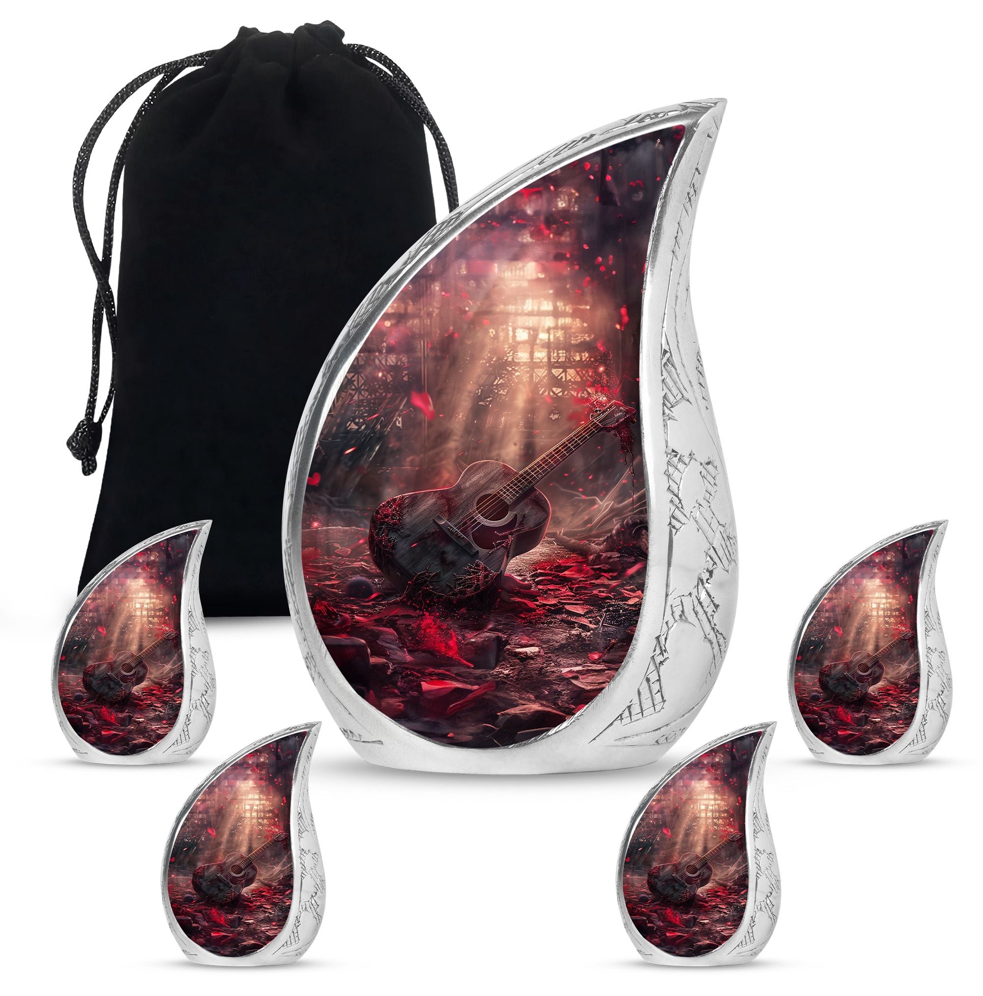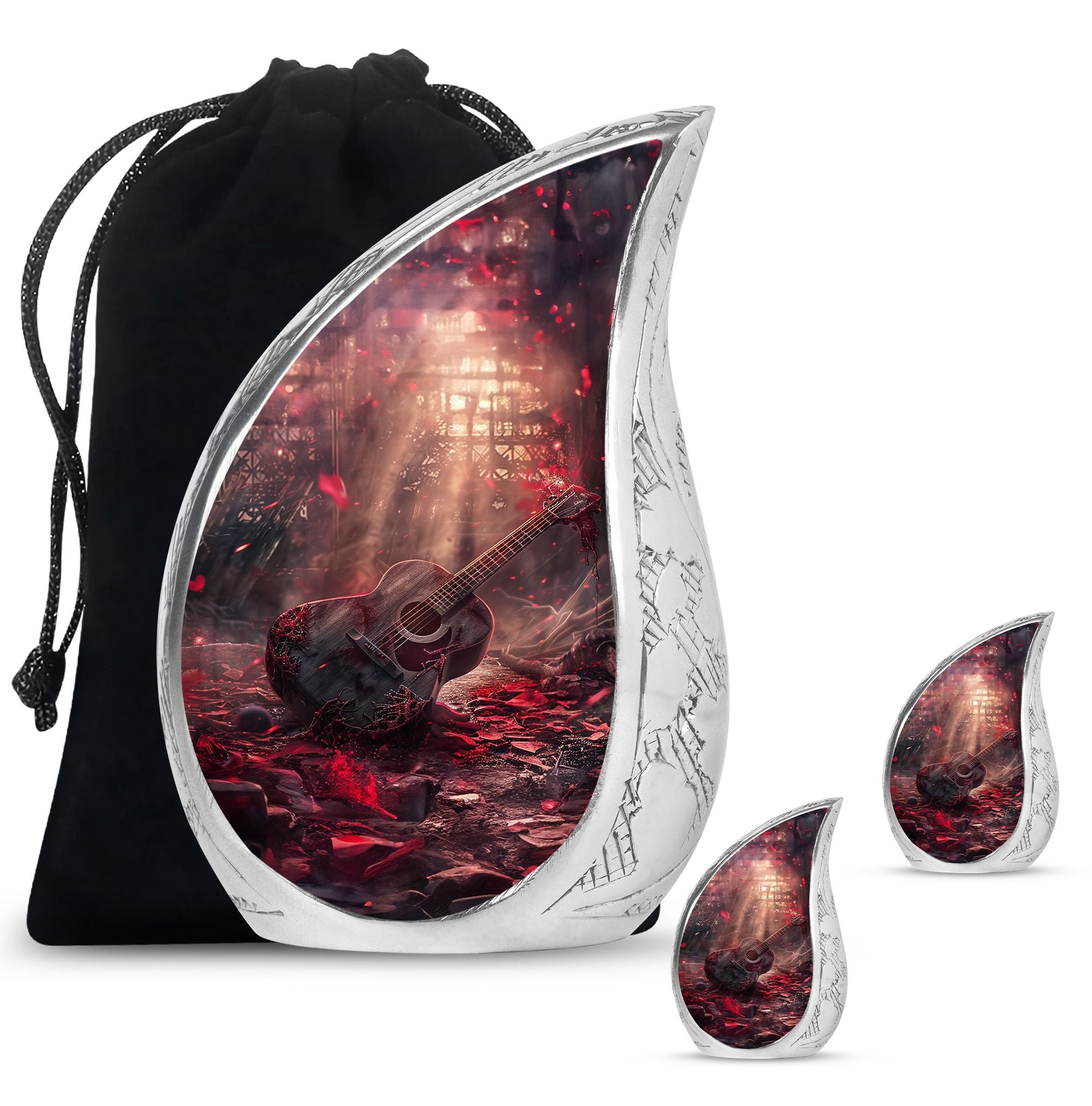 Crafted from durable aluminum, this burial urn showcases detailed artistry and a musical theme that speaks to the soul. Its polished finish and guitar design make it one of the most unique funeral urns for men, yet equally meaningful as an urn for ashes for women. With a secure screw-top lid and generous capacity, it is ideal as a large urn for human ashes adult men or women.