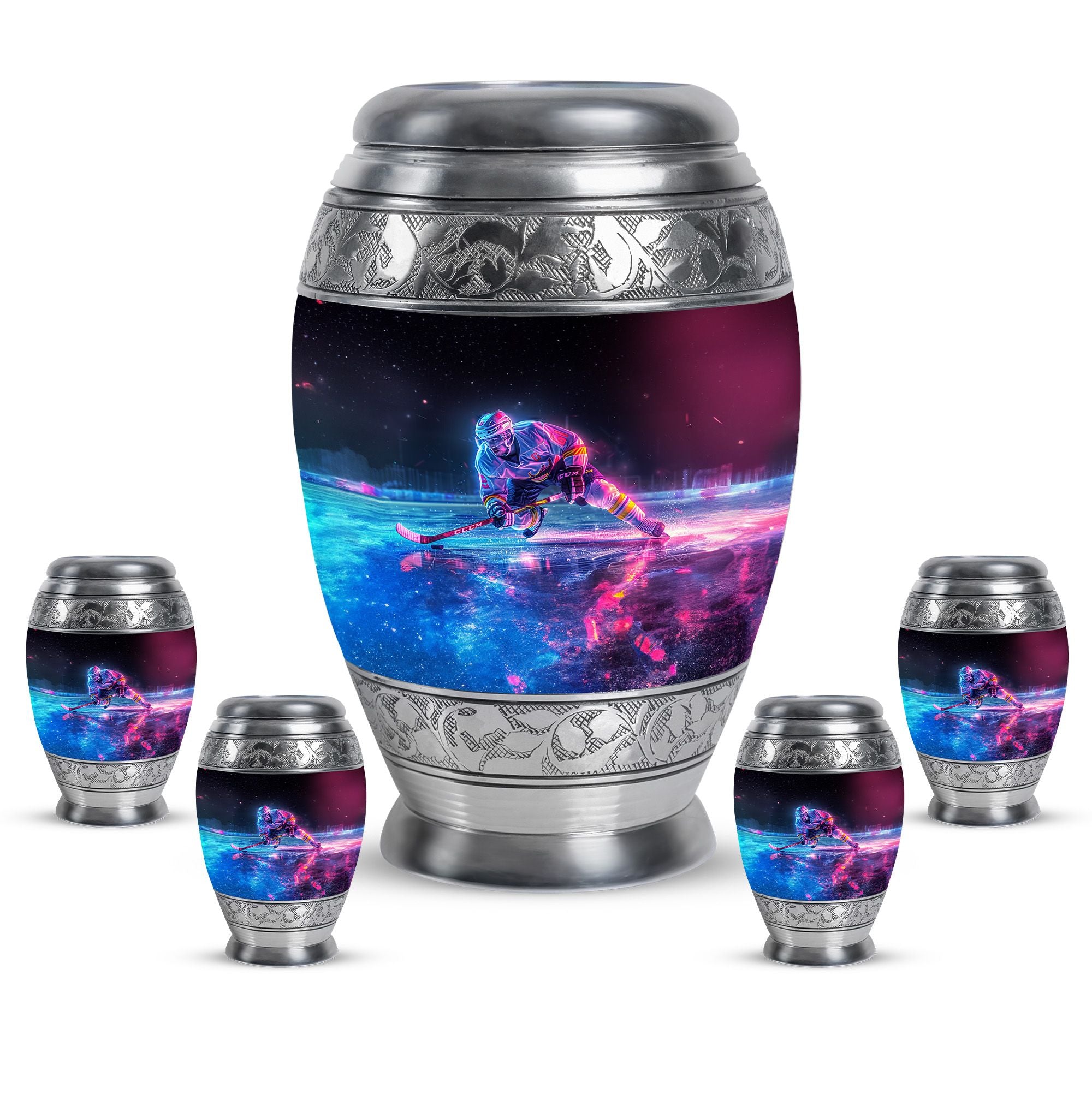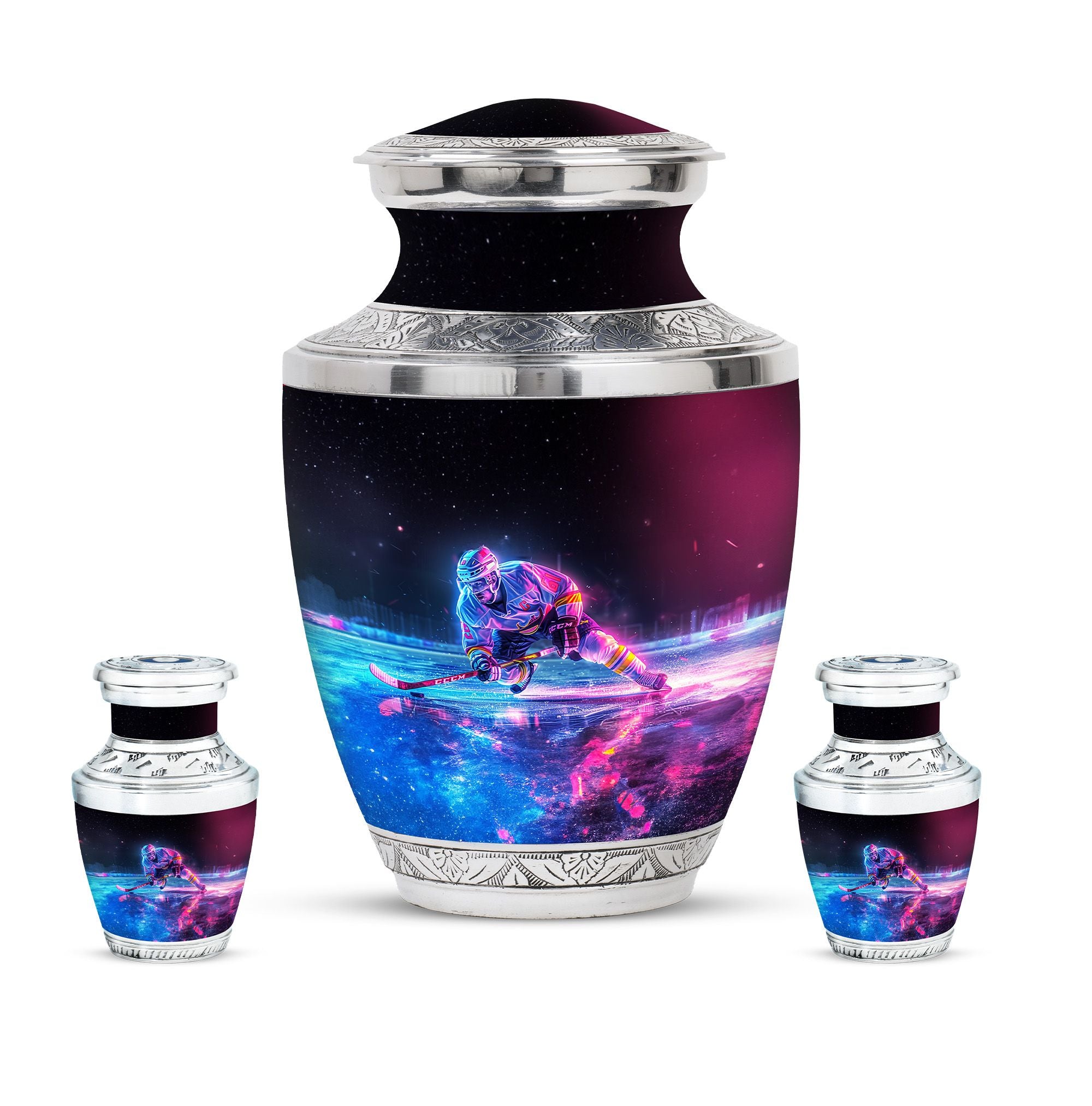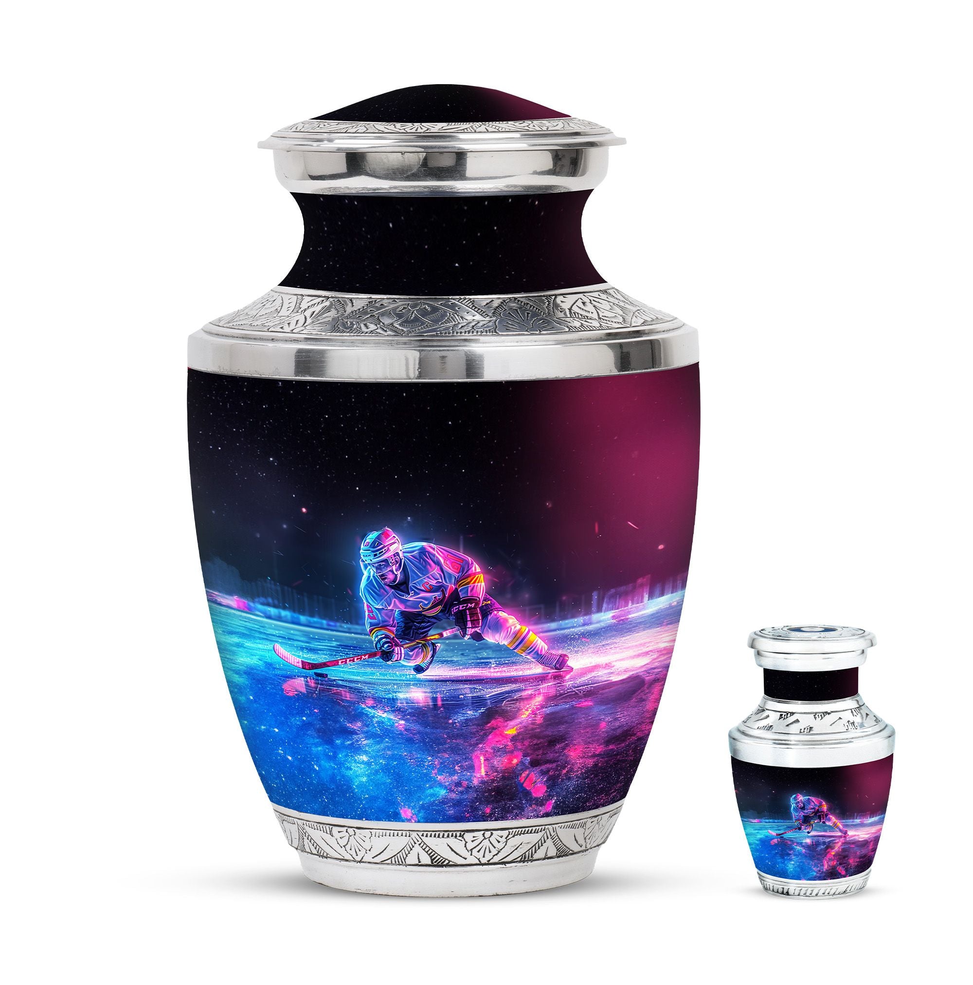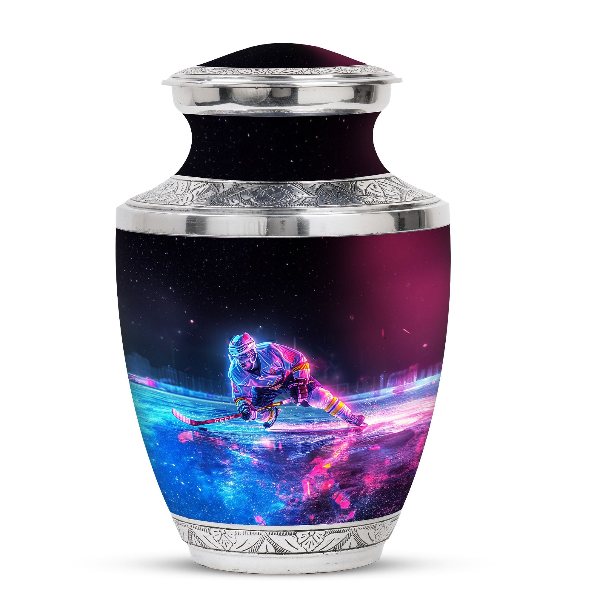 Ice Hockey Cremation Adult Size Urn For Human Ashes - Neon Memorial Keepsake