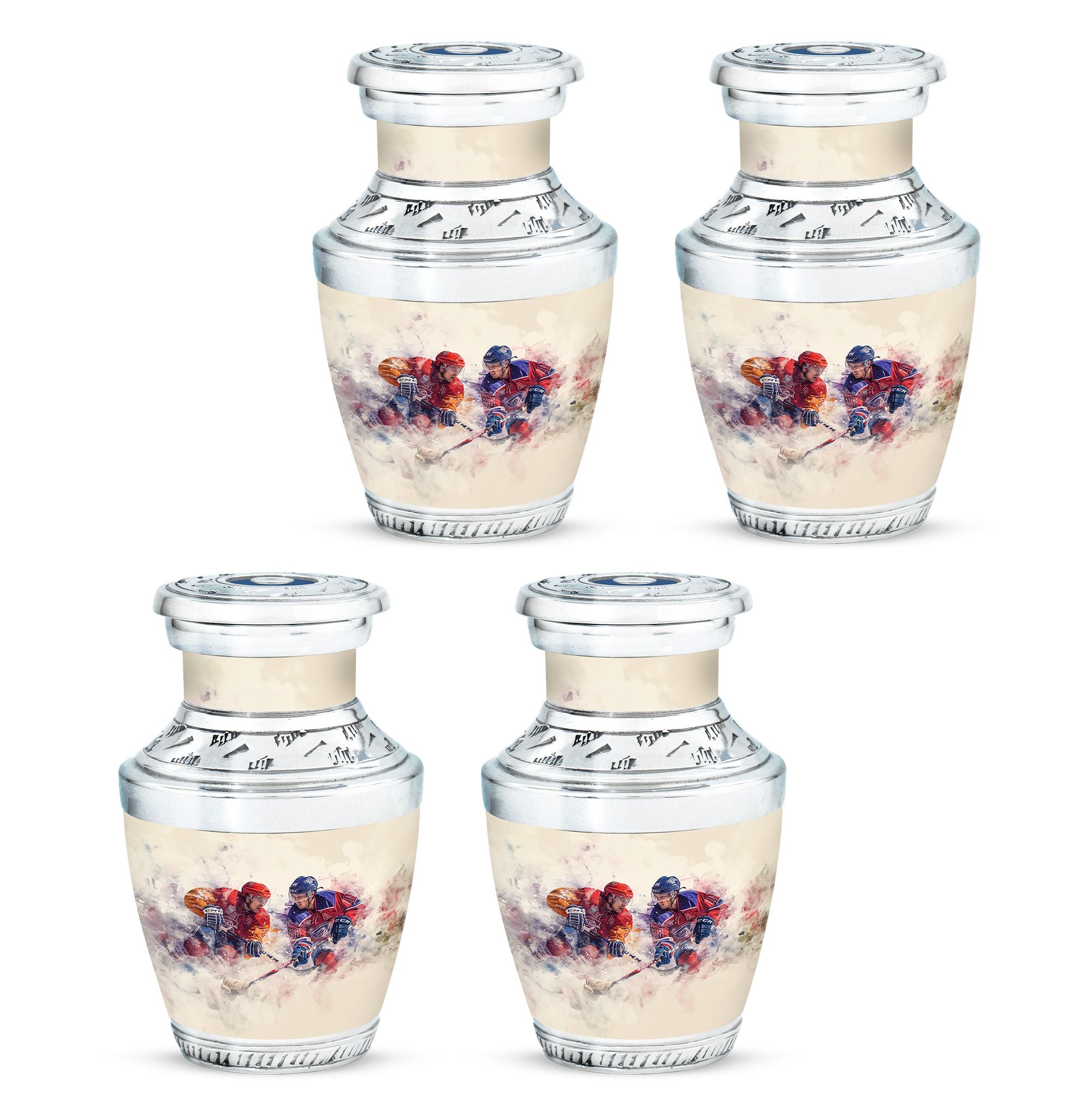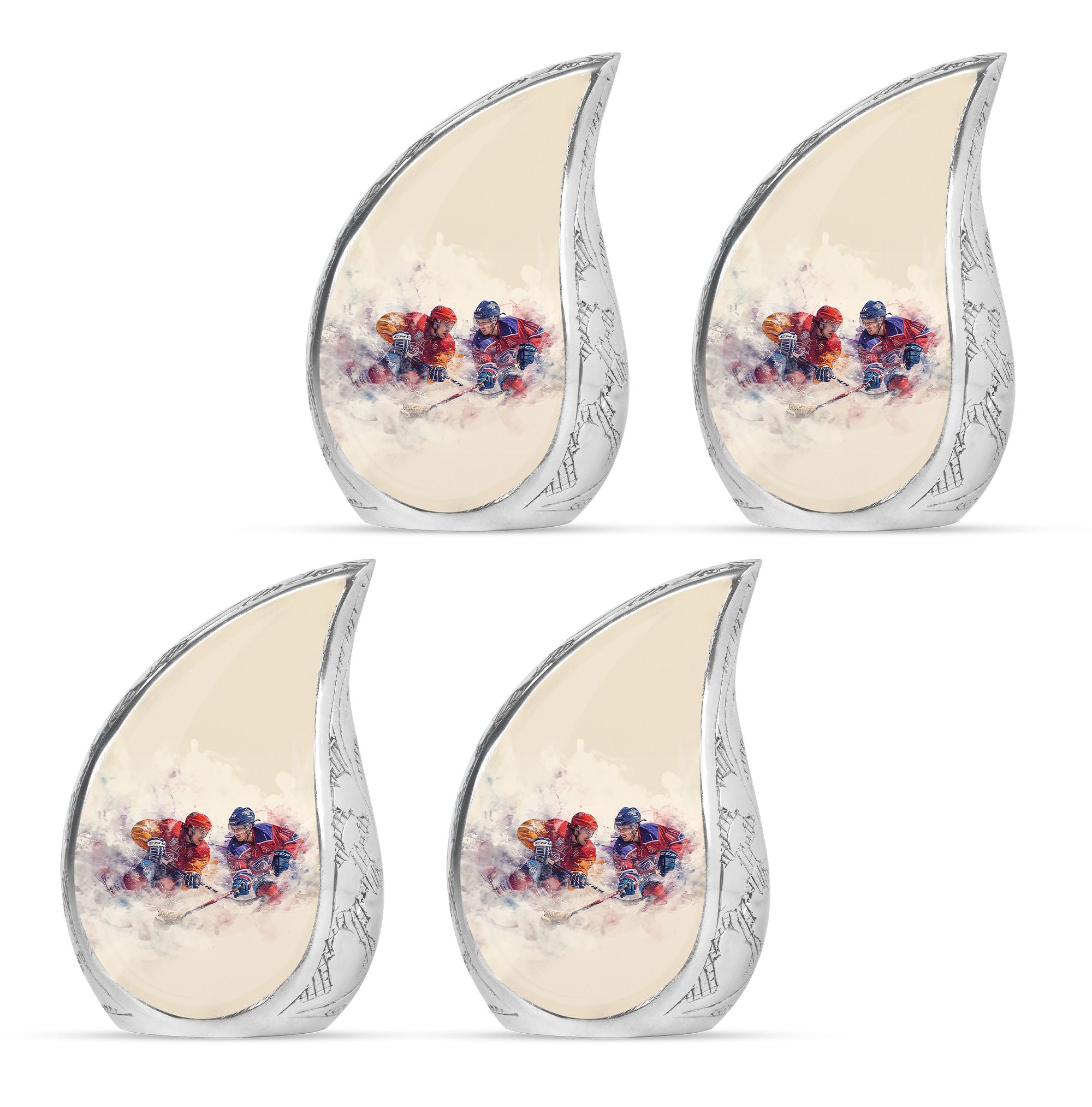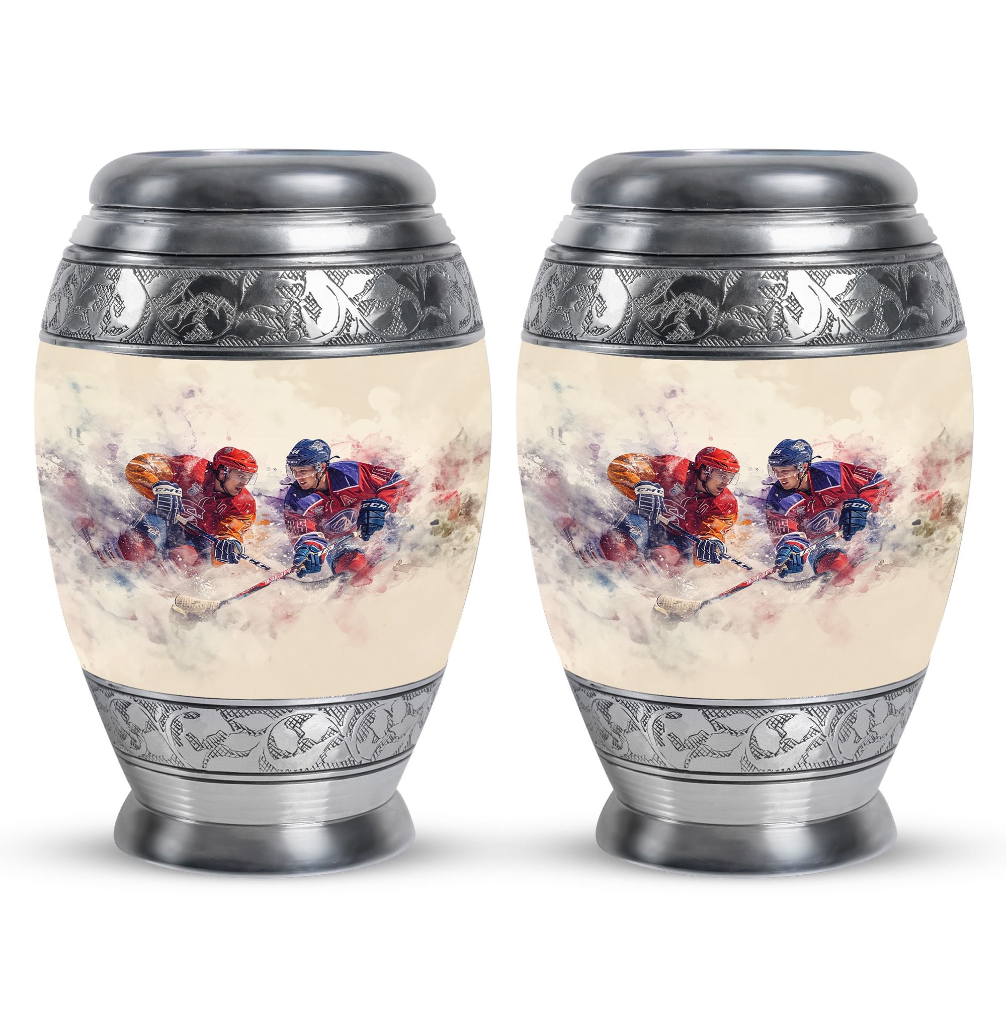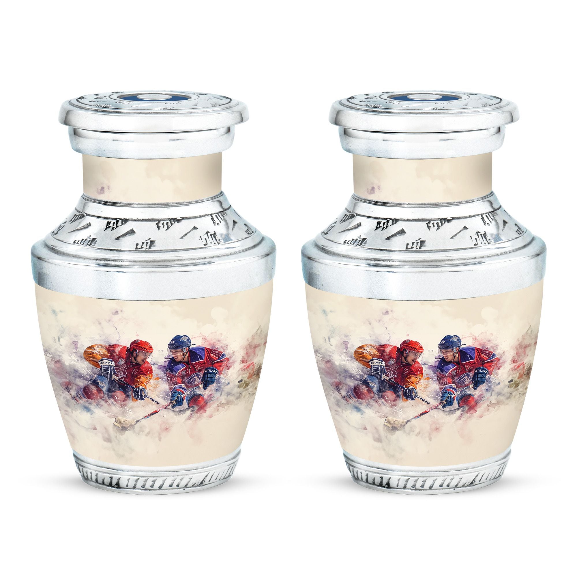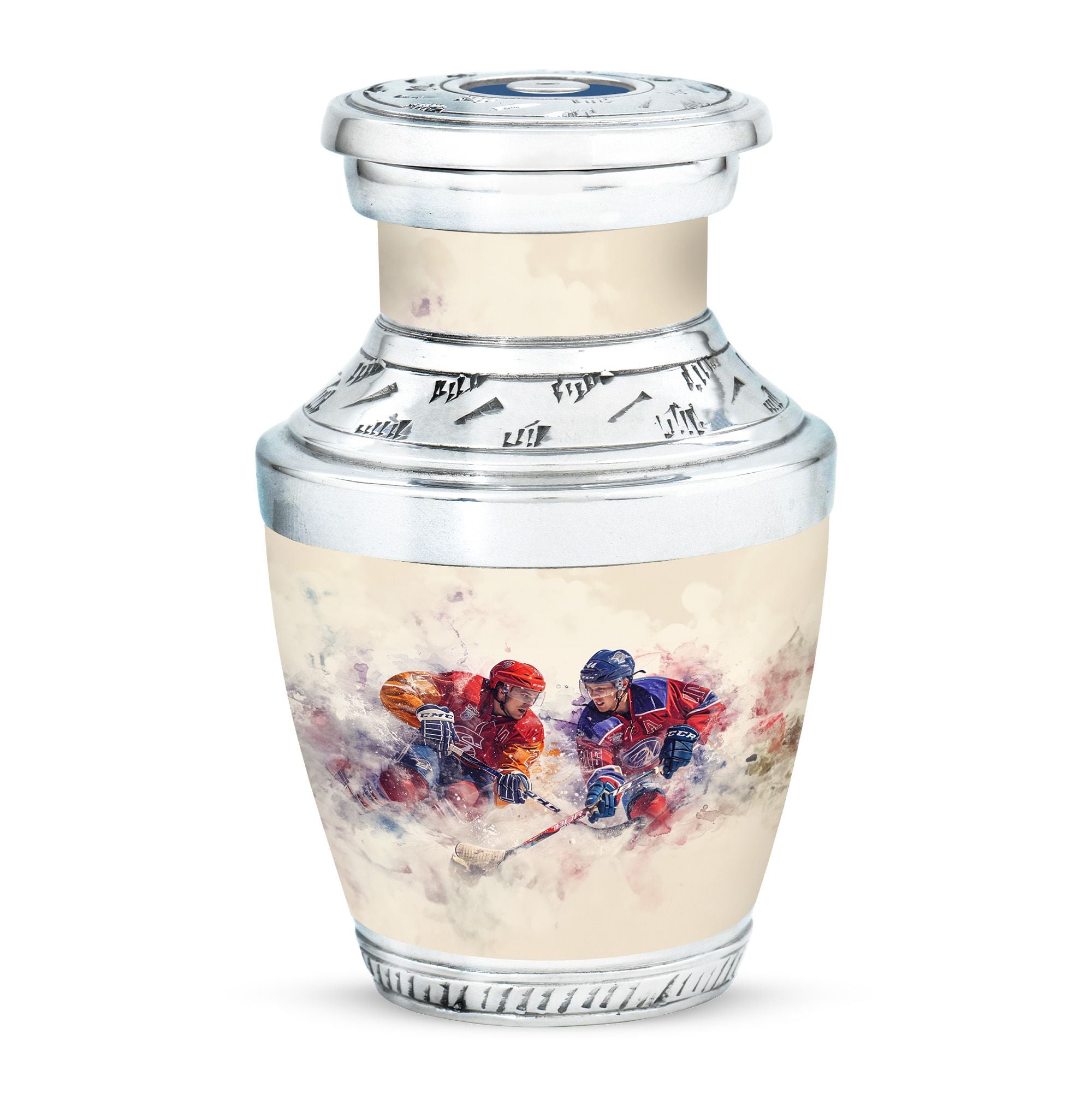 Crafted from durable aluminum, this urn showcases a timeless ice hockey design that speaks to a passion for the sport. Compact in size, it is perfect as a mini small urn for men or as one of several tiny urns for women & men when families wish to share ashes among loved ones. With a secure screw-top lid, it ensures the ashes remain safe. This versatile urn can be selected as a cremation urn for adult ashes women, a funeral urn for men, or even as a symbolic burial urn for men.