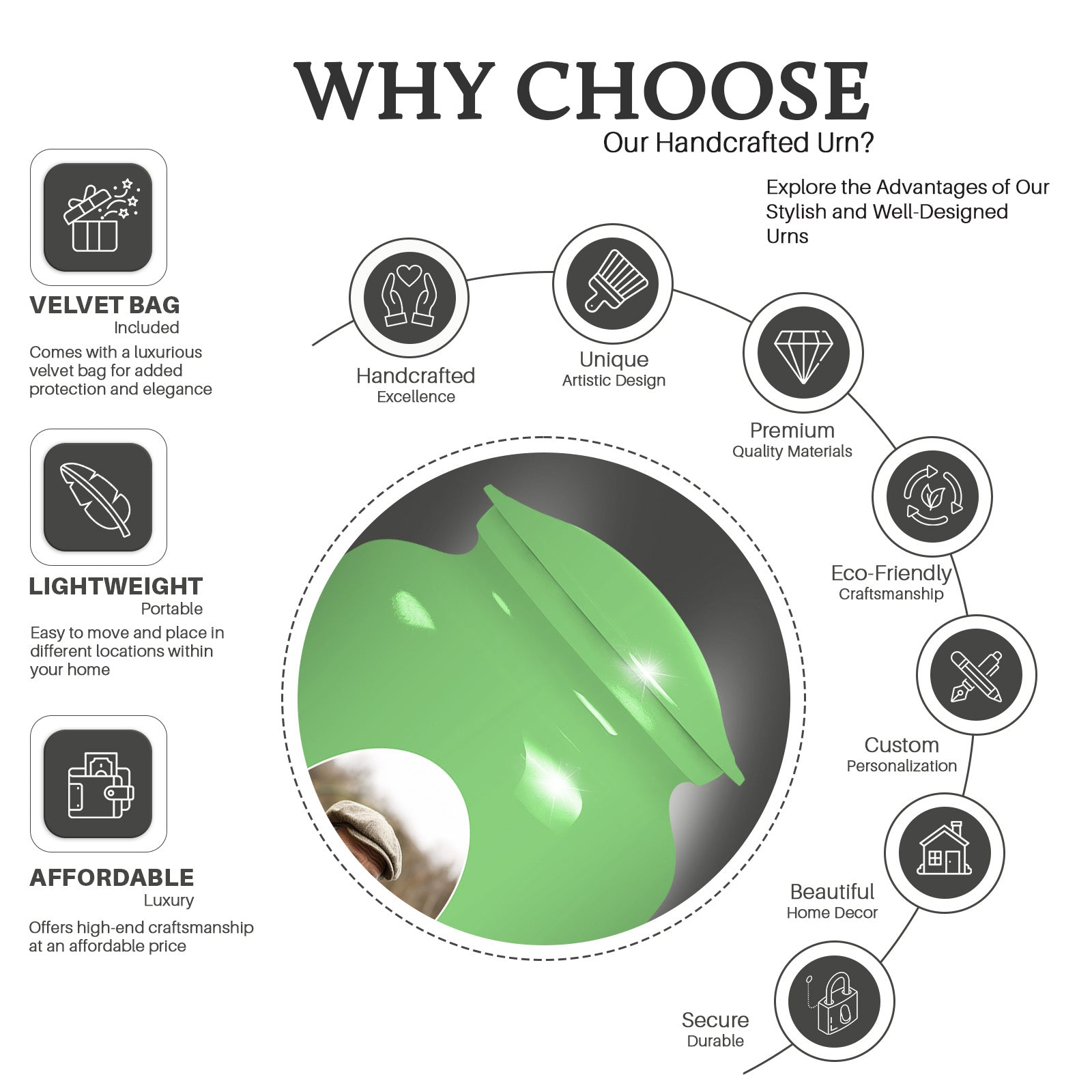 The Plain Light Green Portrait Customizable Urn for Human Ashes offers a serene and uplifting way to honor the memory of your loved one. The fresh light green hue reflects peace, growth, and healing—making it a fitting choice for memorial display.