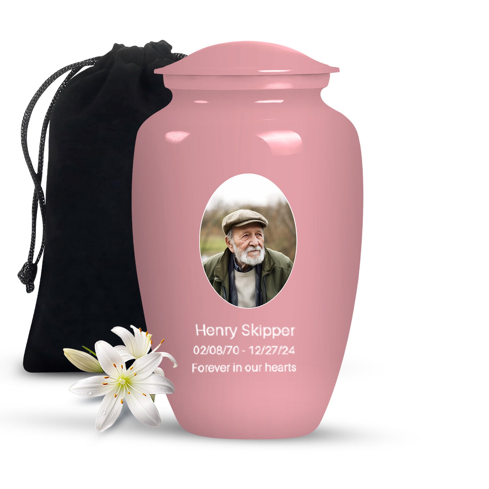 The Plain Light Pink Portrait Customizable Urn for Human Ashes offers a soft and heartfelt way to preserve the memory of your loved one. The gentle light pink color symbolizes love, remembrance, and tenderness—making it ideal for a beautiful home tribute.